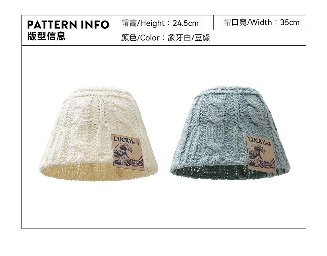 白色針織鏤空編織毛線漁夫帽大頭圍圓頂水桶立體盆帽子女士春