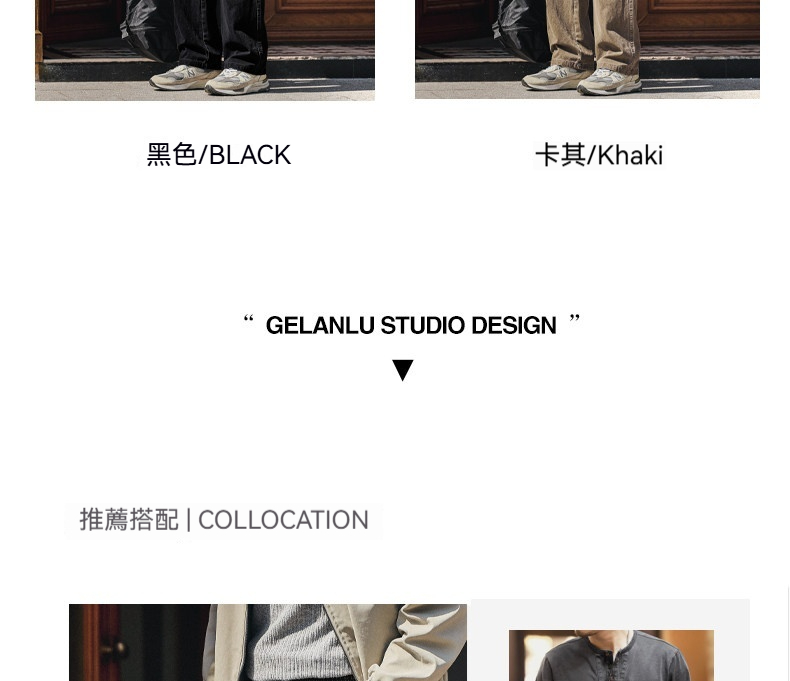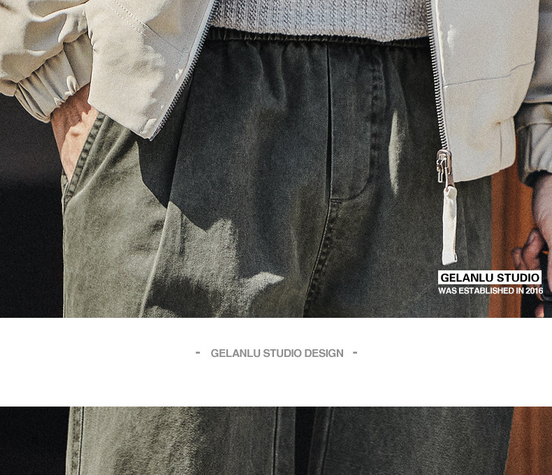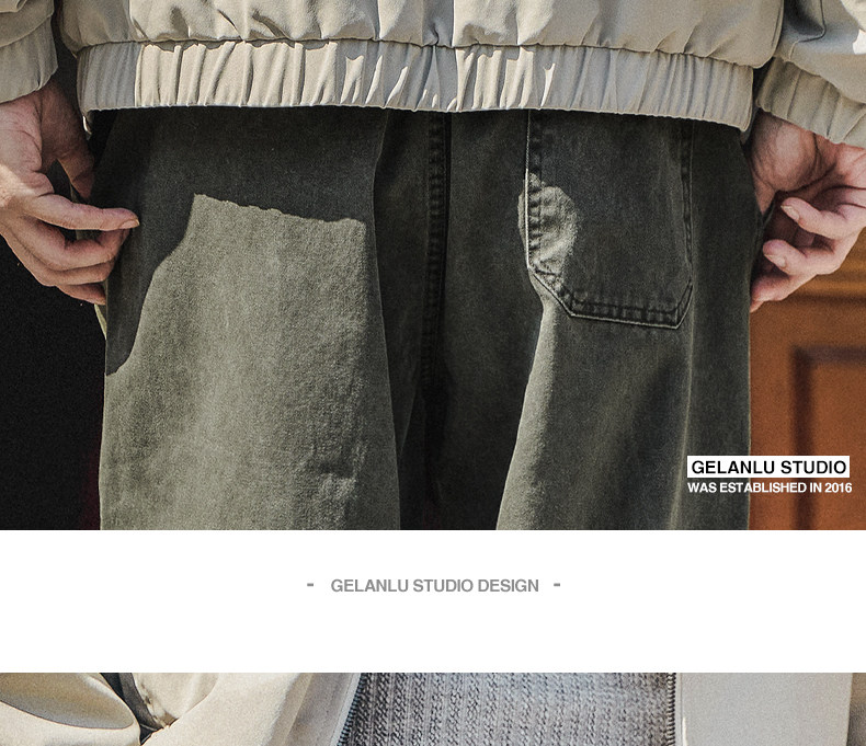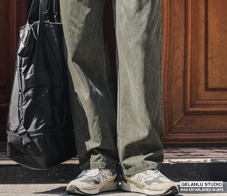 秋冬款美式重磅水洗工裝褲子男士寬鬆直筒闊腿休閒長褲