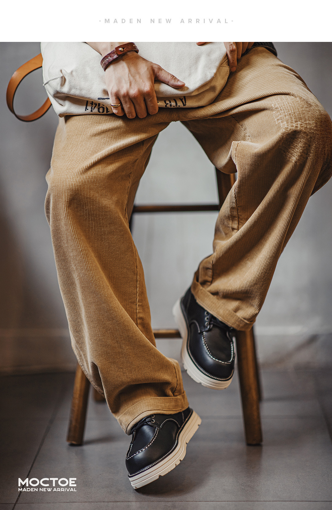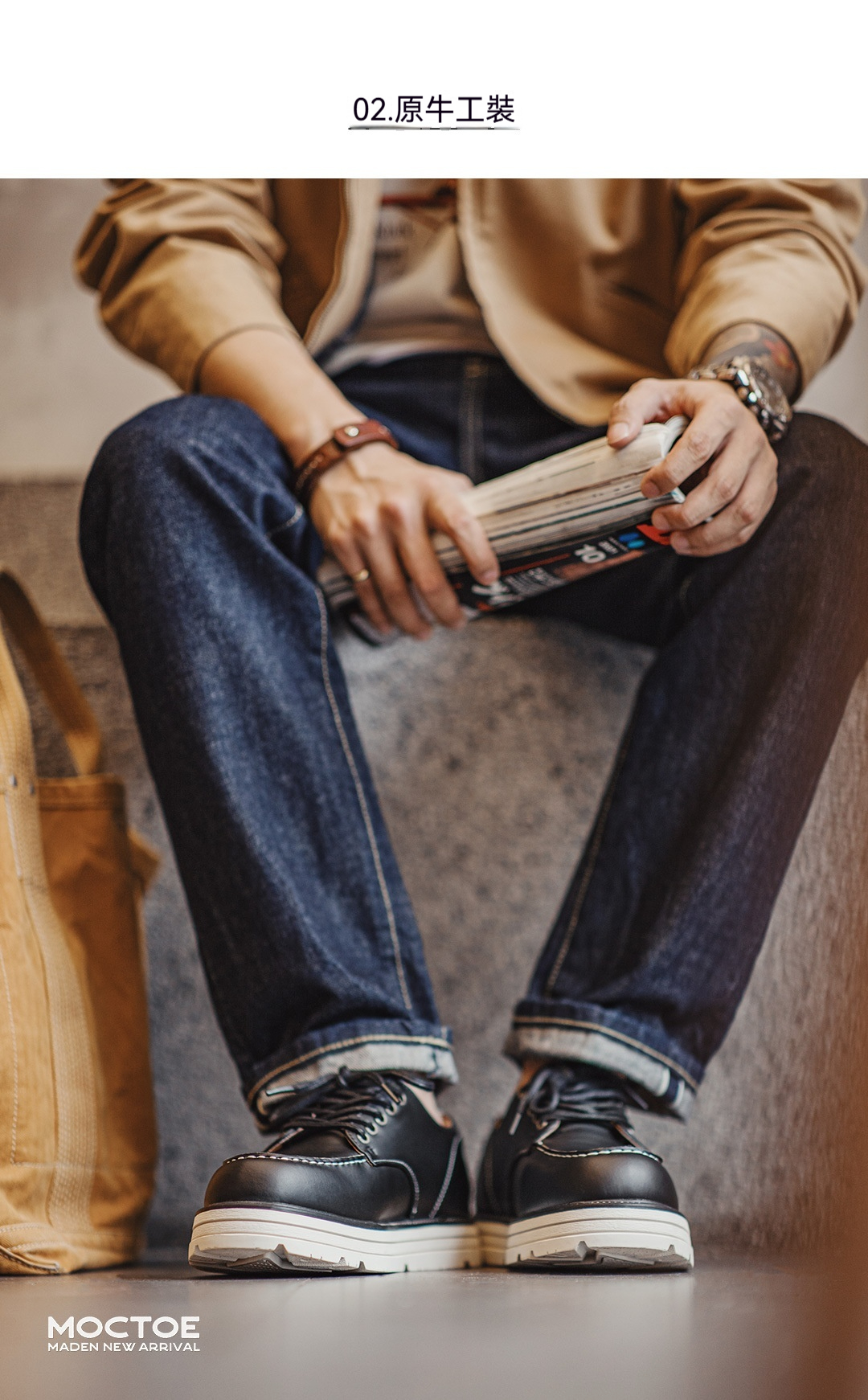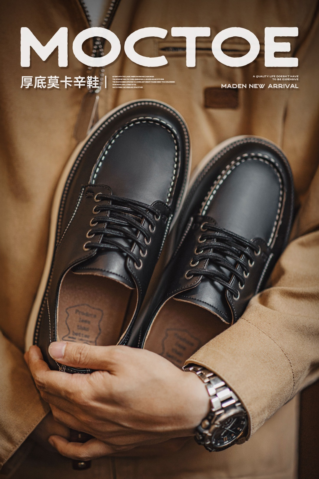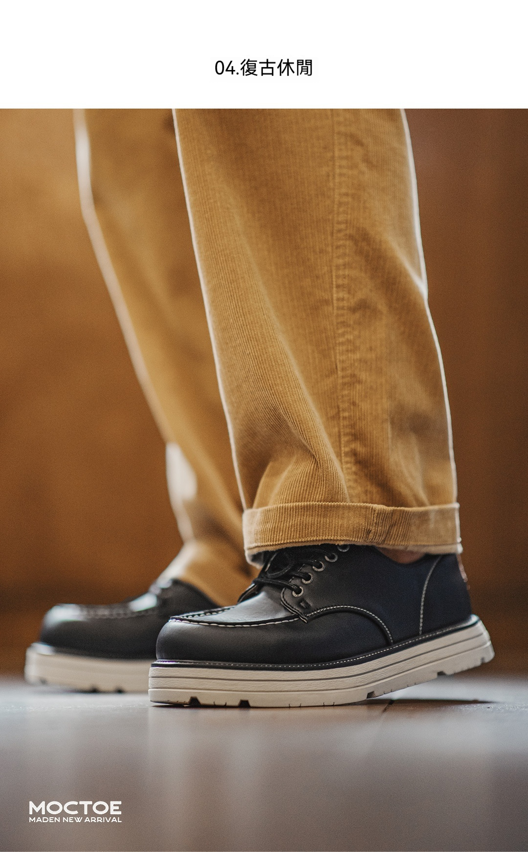 秋季新款莫卡辛美式復古工裝鞋男士厚軟底薄款黑色休閒皮鞋子