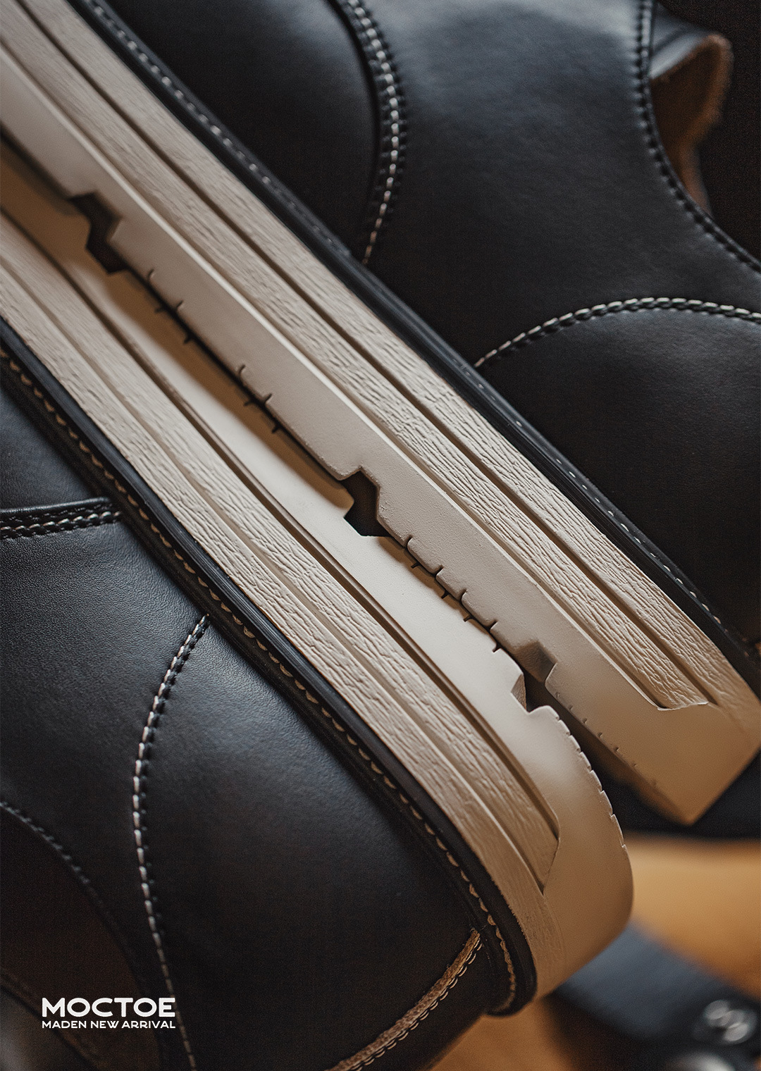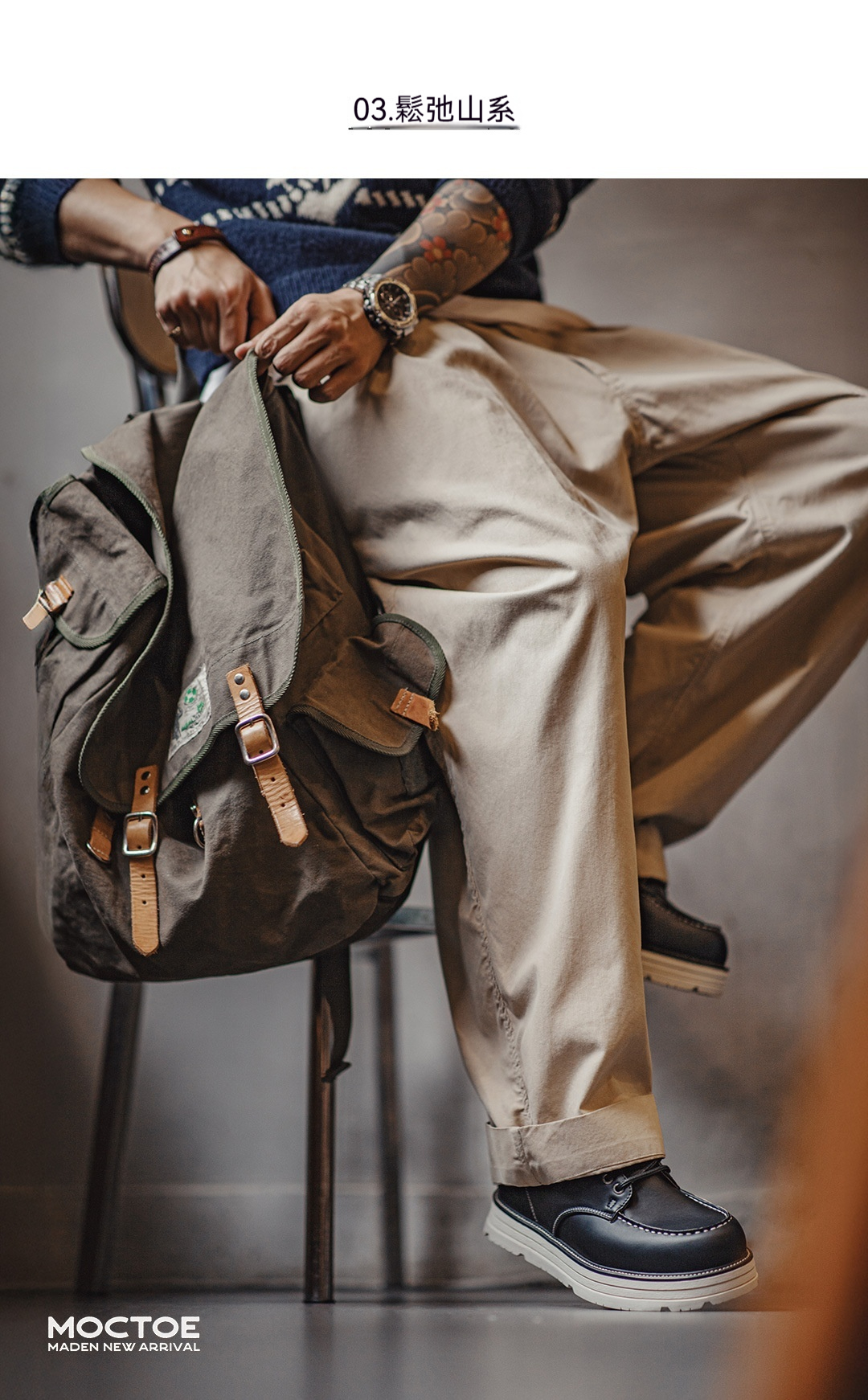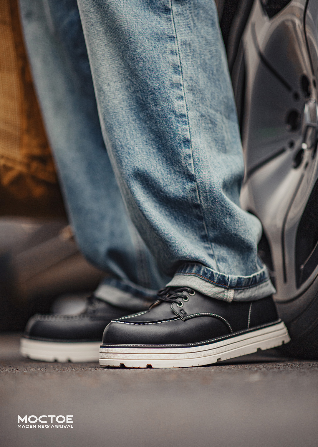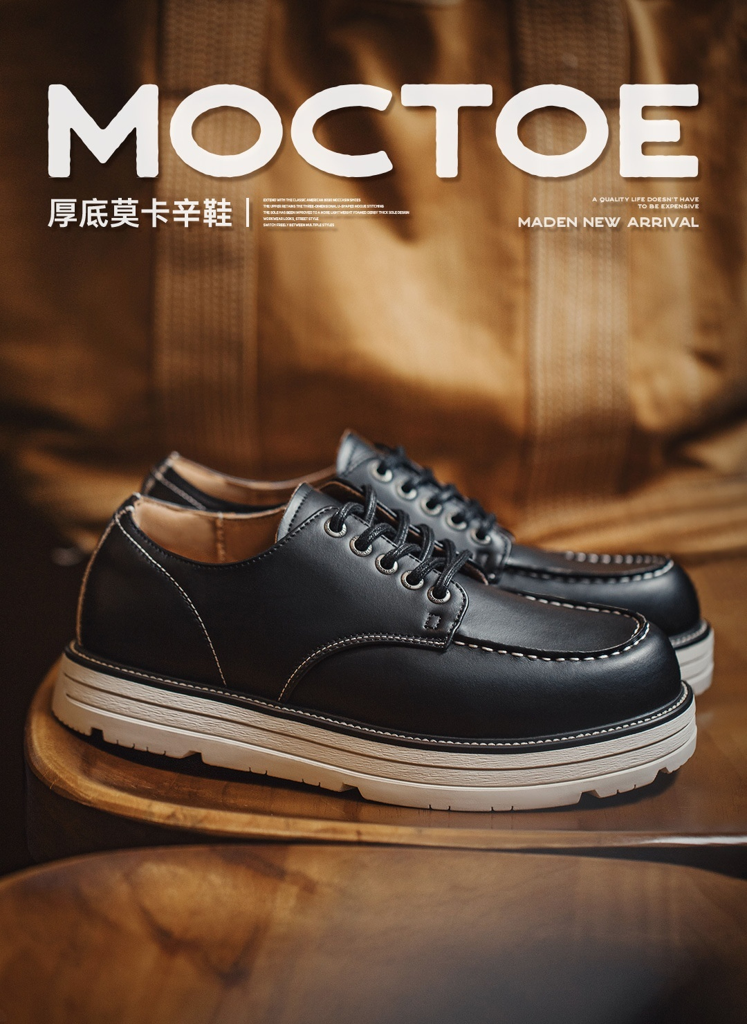 秋季新款莫卡辛美式復古工裝鞋男士厚軟底薄款黑色休閒皮鞋子