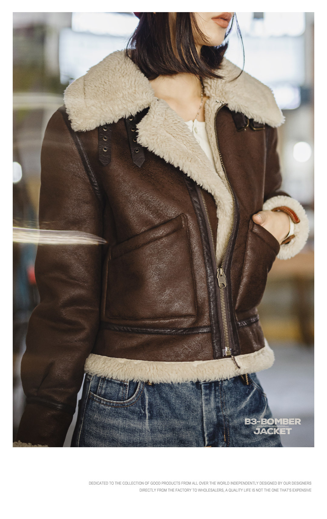 立翻領麂皮仿羊羔毛加厚飛行員短款棉服衣襖夾克外套女士秋冬