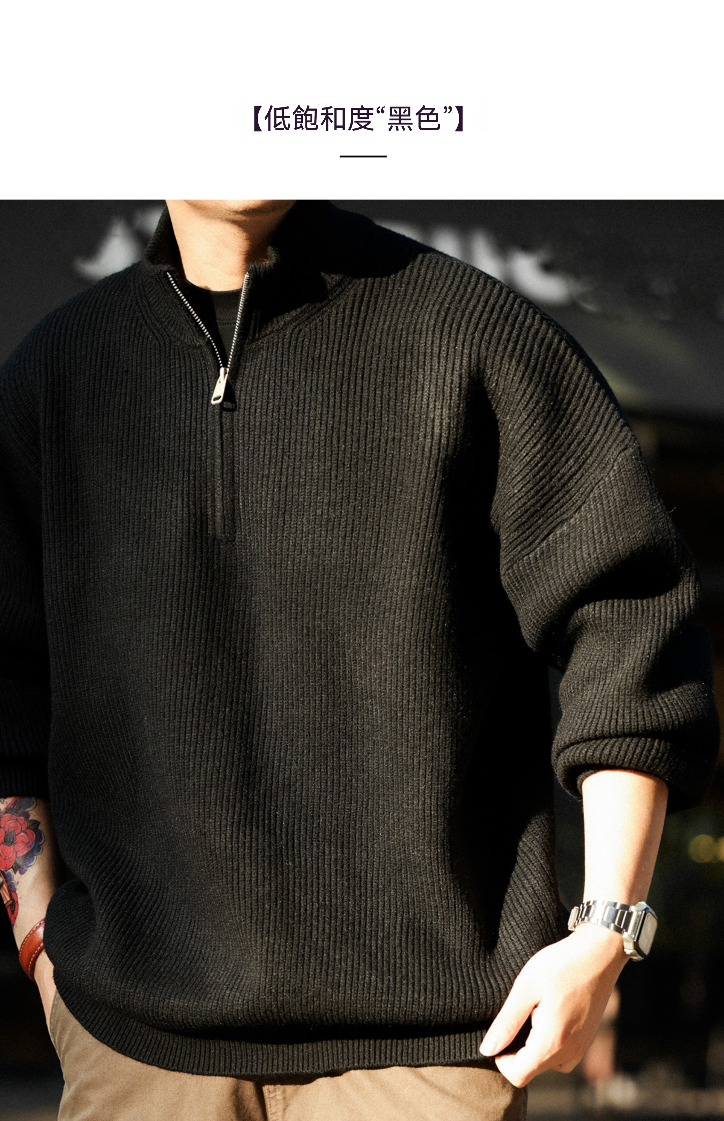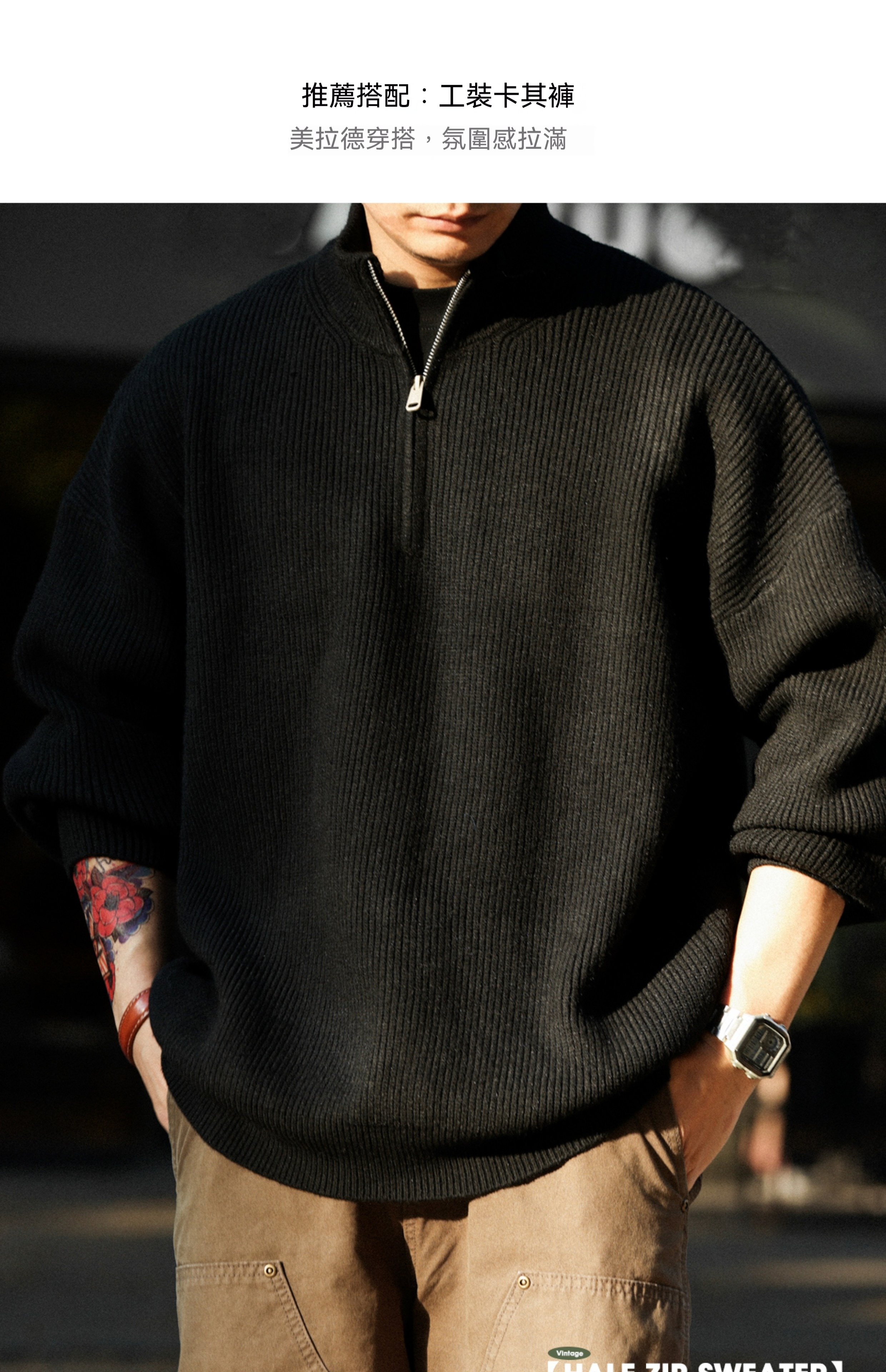 美式休閒半拉鍊立領保暖毛衣男700g復古慵懶風針織衫冬