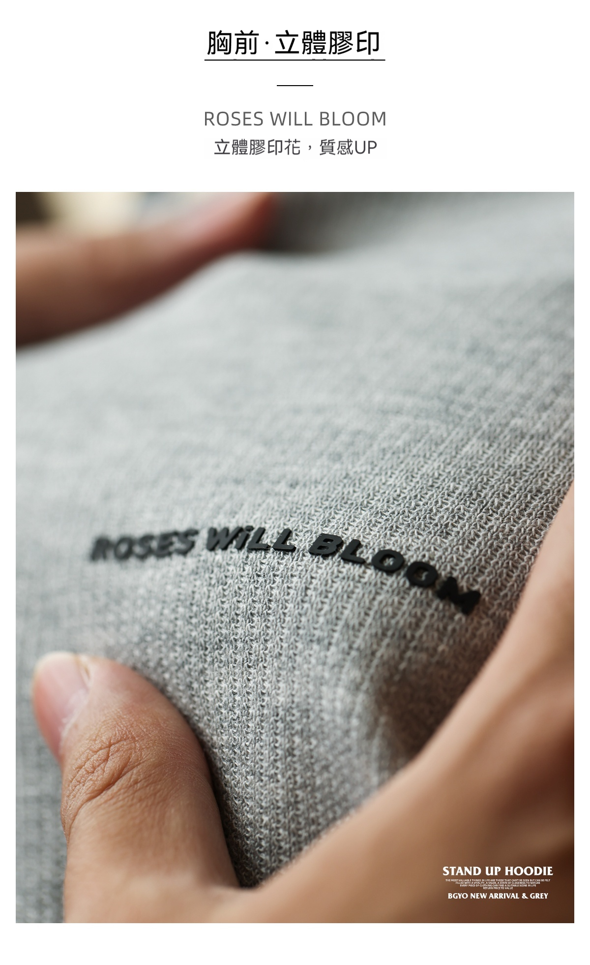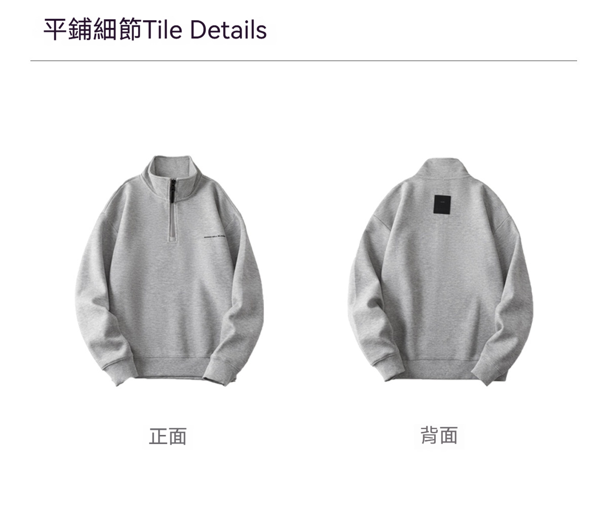 美式休閒半拉鍊立領長袖衛衣男340g針織肌理套頭上衣秋