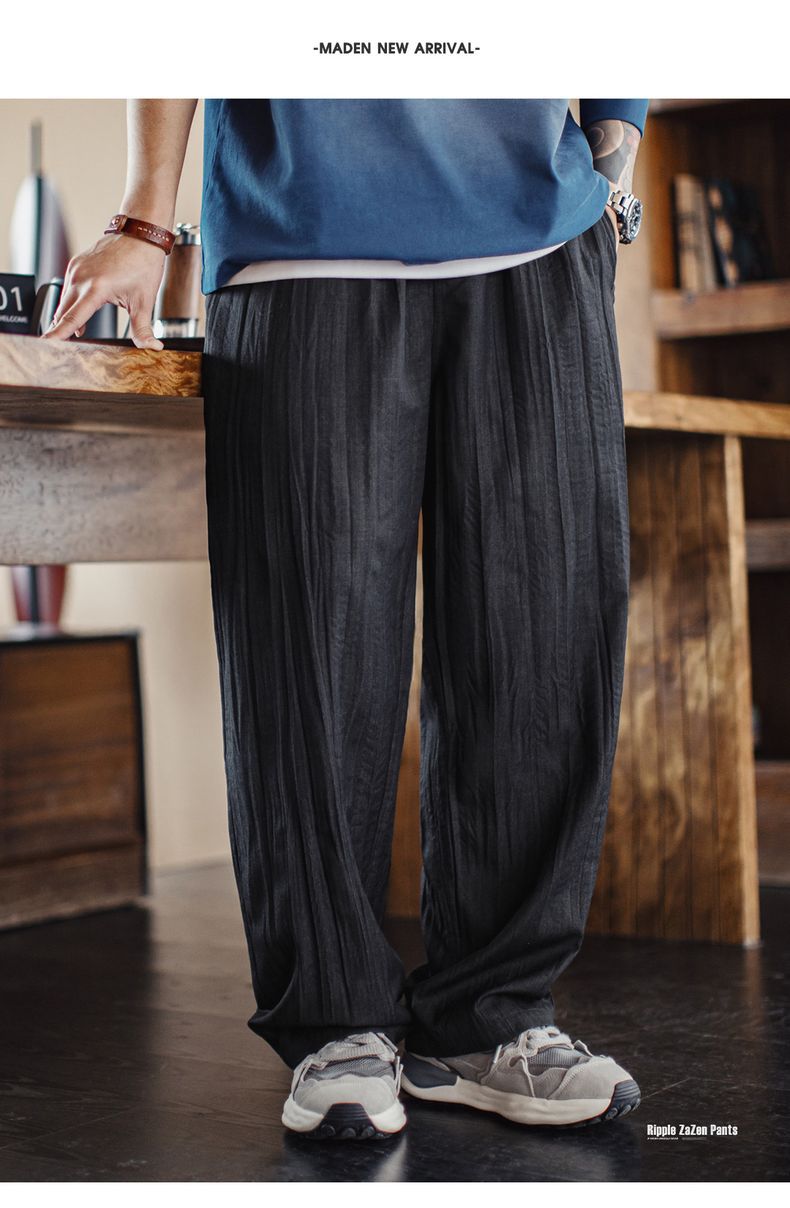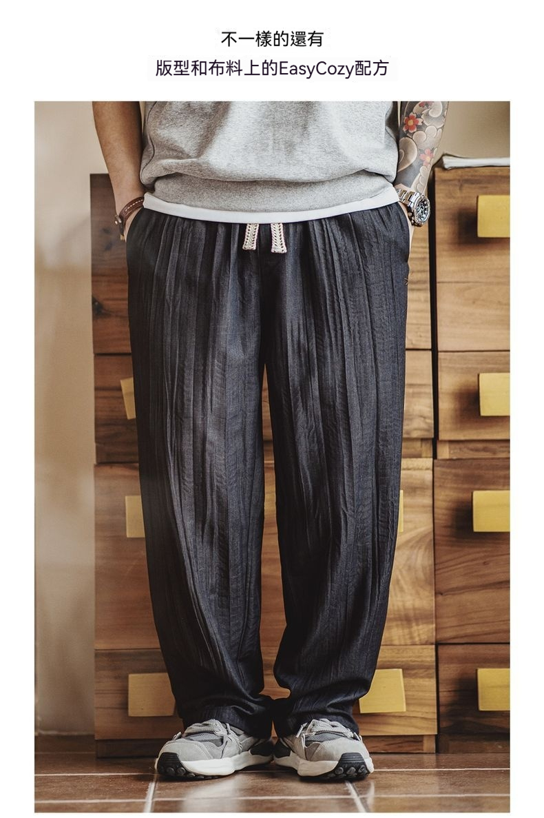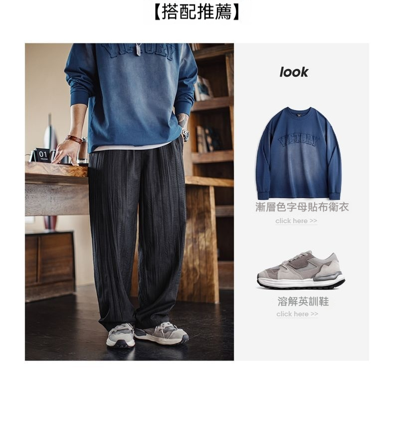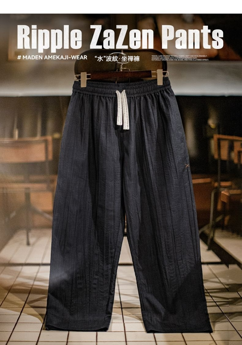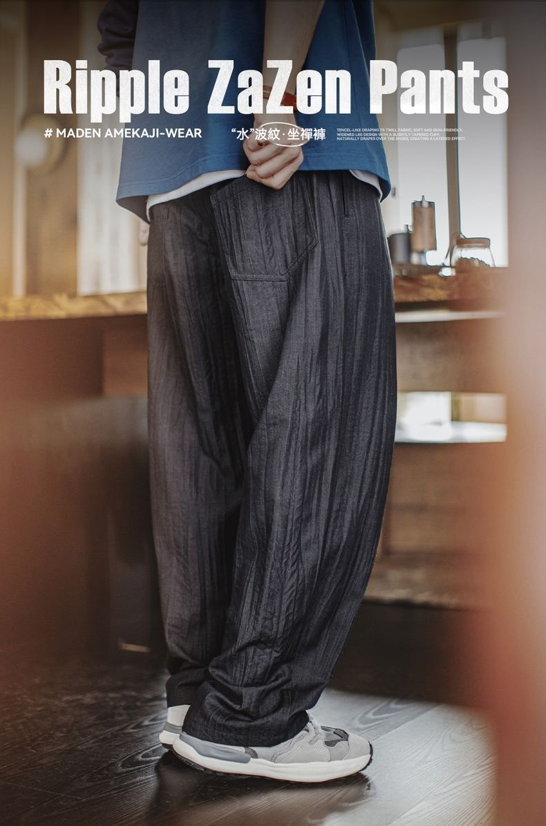 美式休閒水波紋褶皺坐禪褲日系鬆弛cityboy休閒褲男春夏