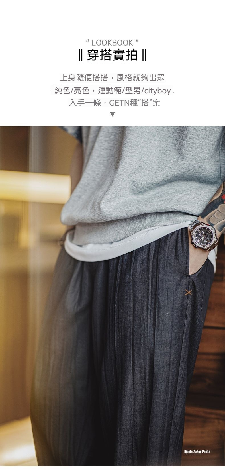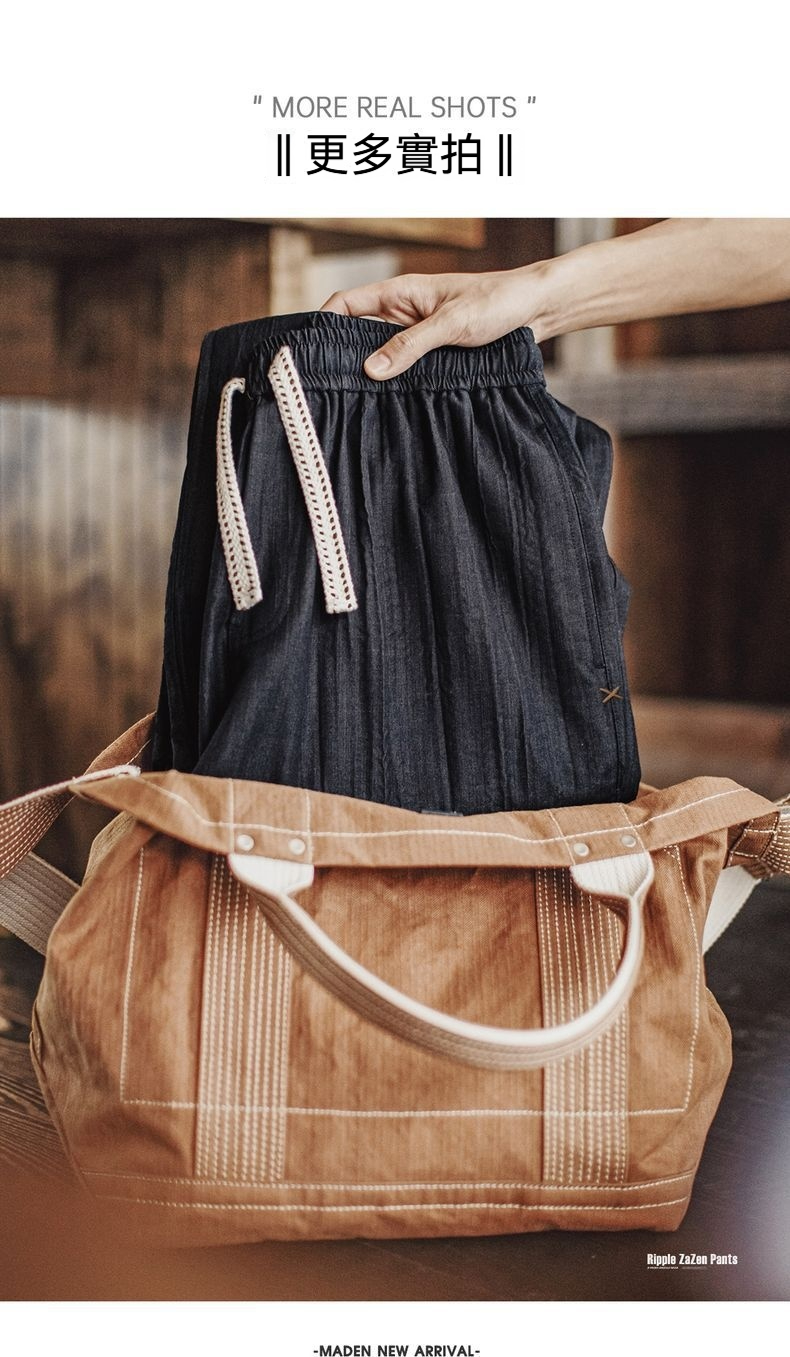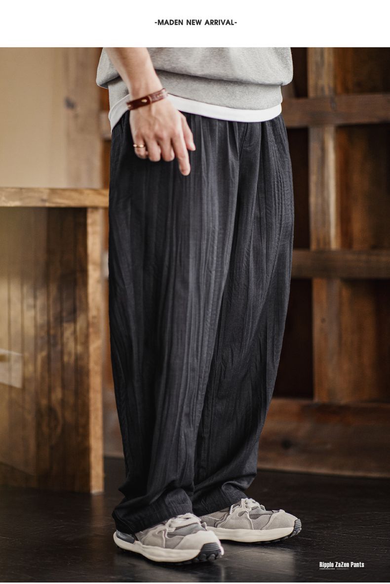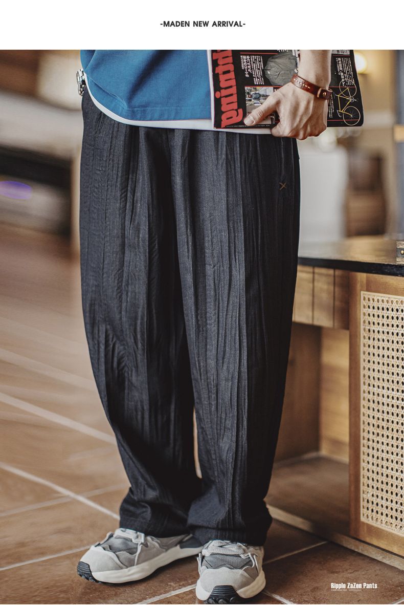 美式休閒水波紋褶皺坐禪褲日系鬆弛cityboy休閒褲男春夏