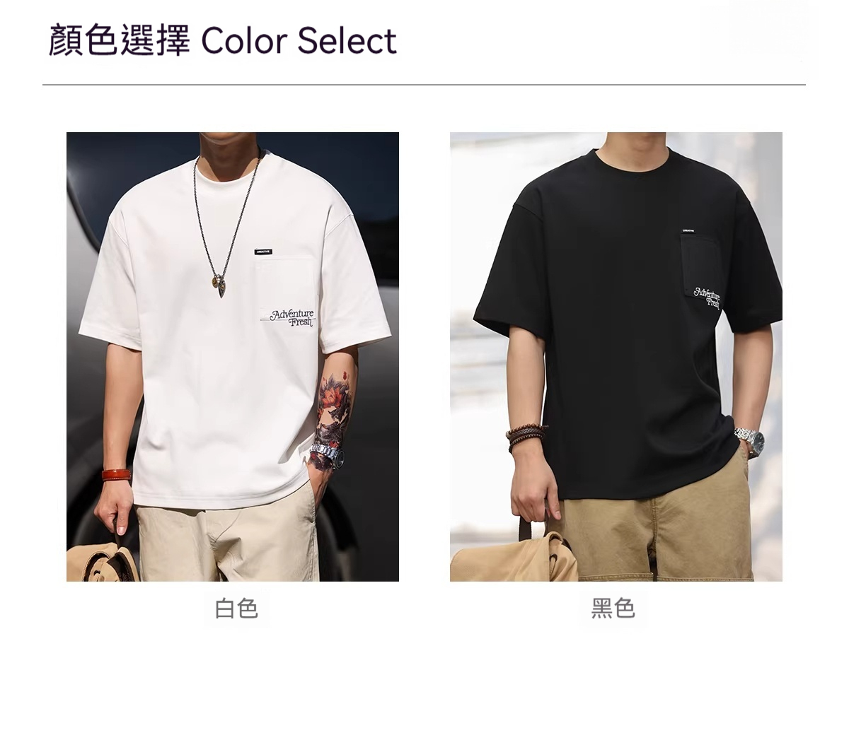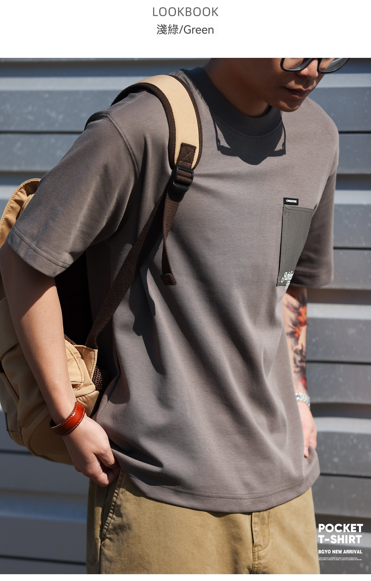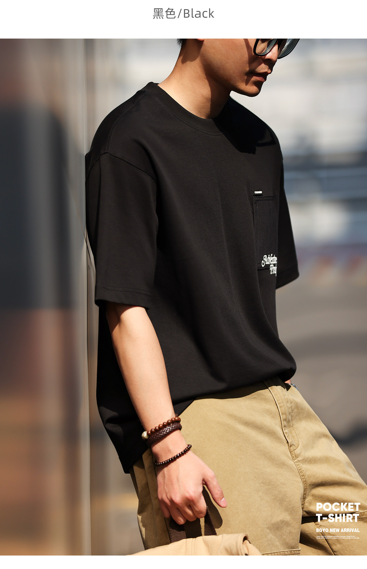 美式休閒立體口袋刺繡短袖T恤男戶外風工裝圓領打底TEE