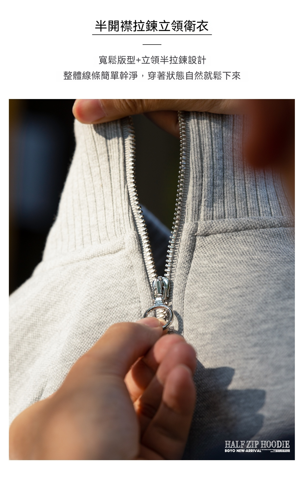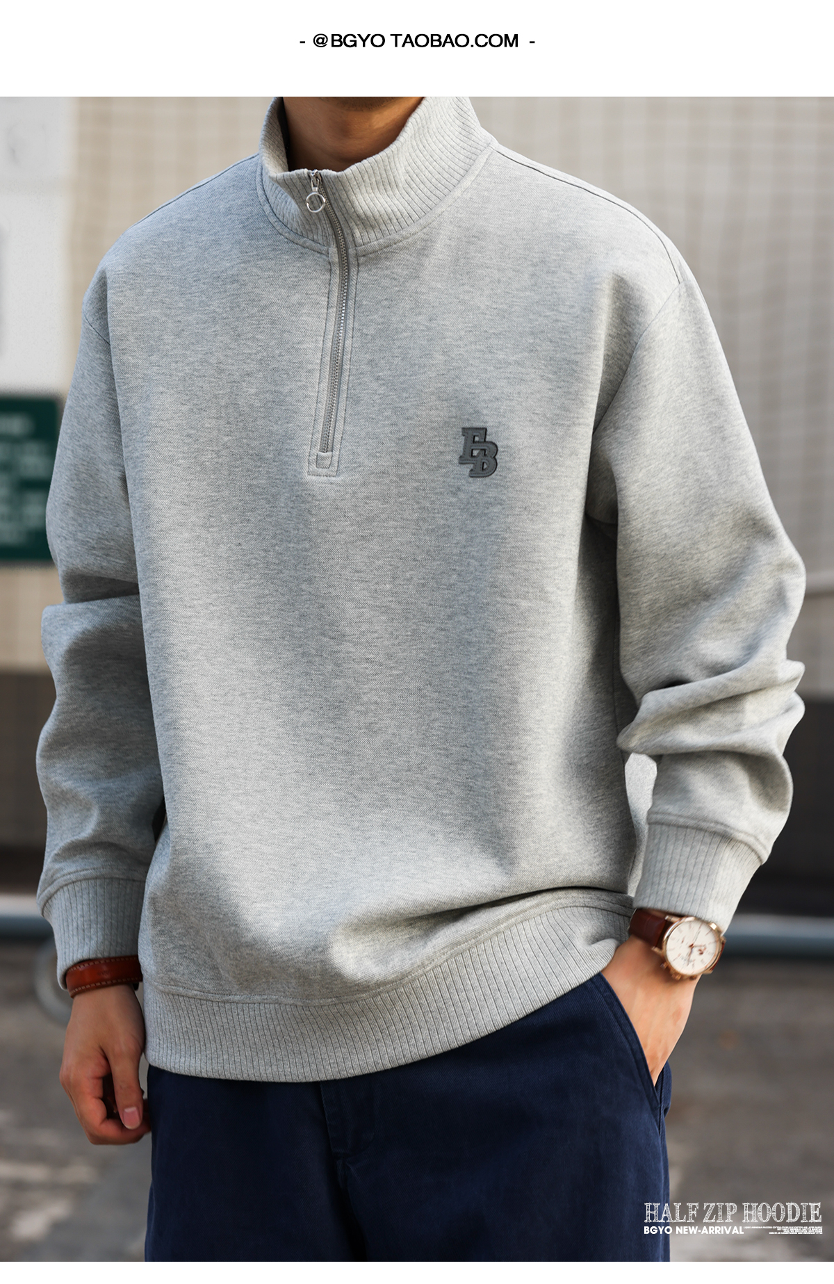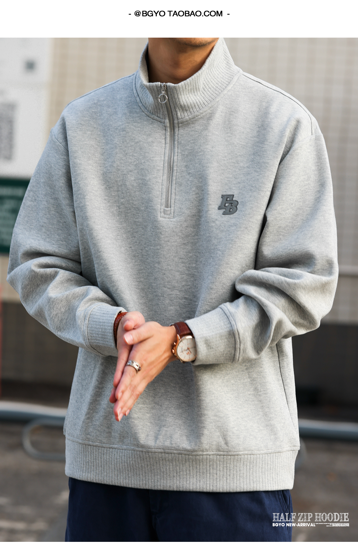 美式休閒貼皮繡立領衛衣男400g重磅半拉鍊運動套頭上衣