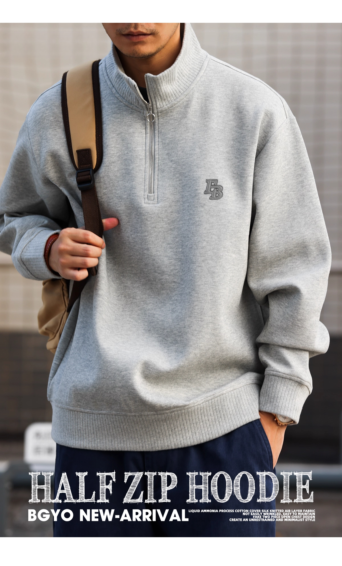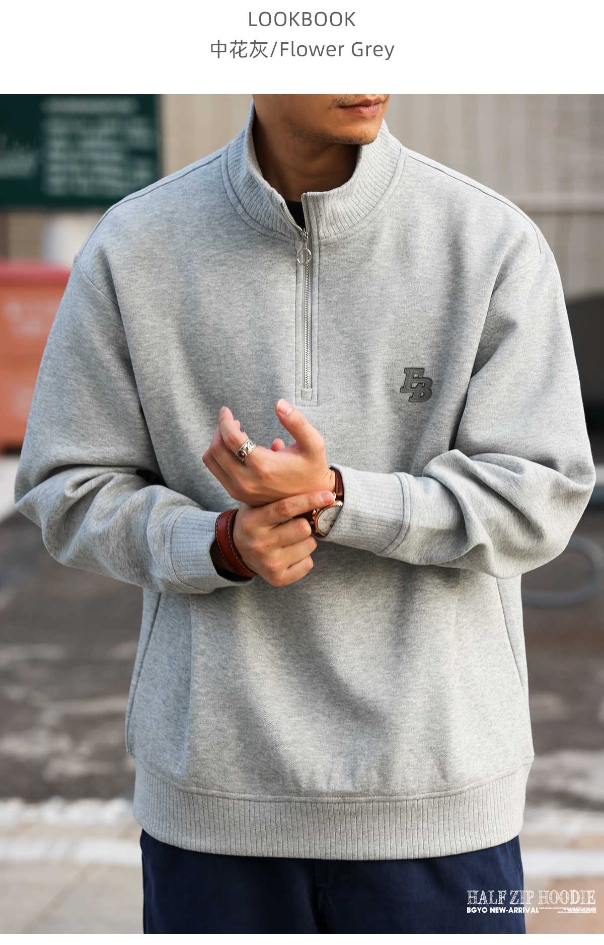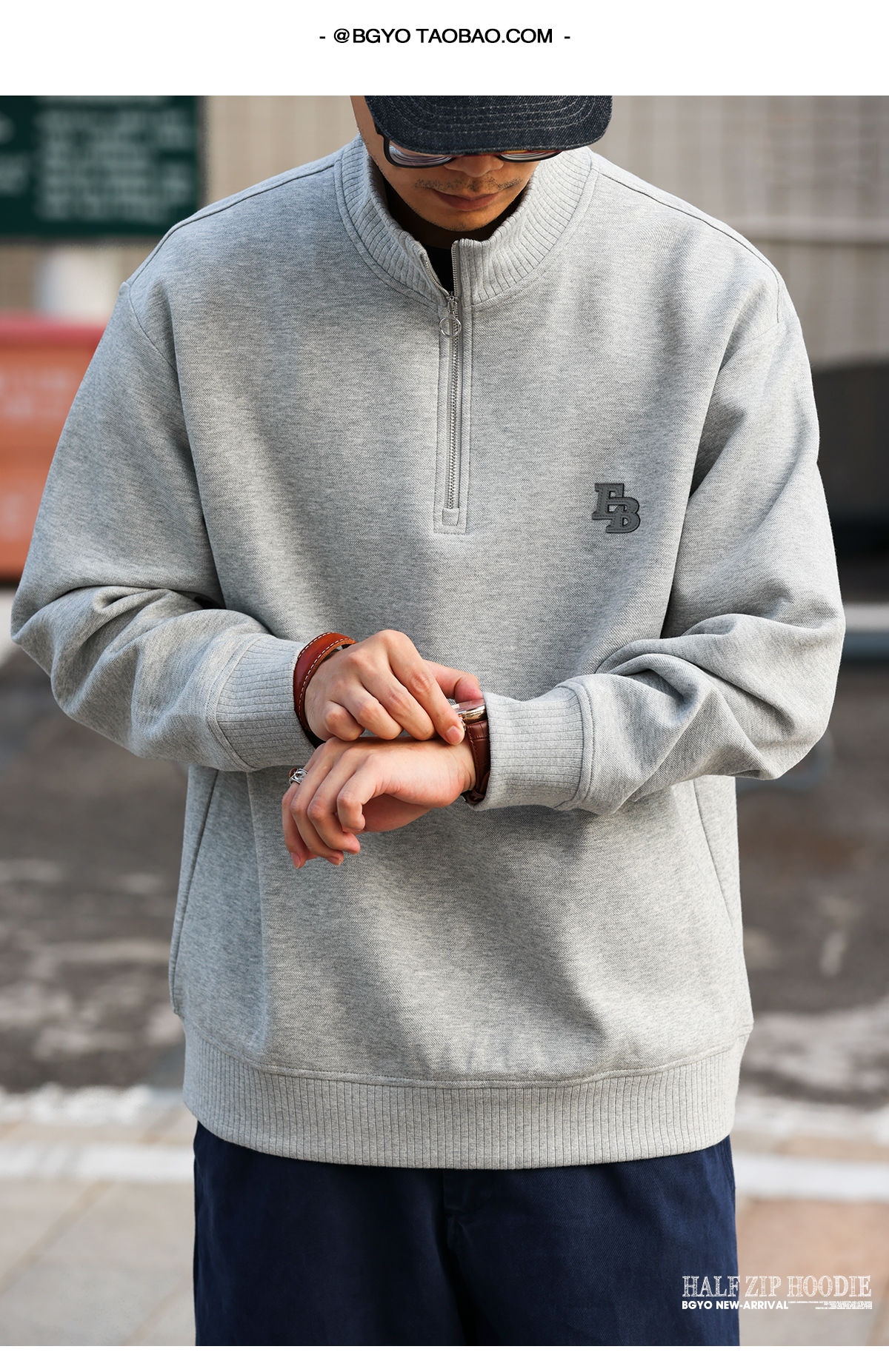 美式休閒貼皮繡立領衛衣男400g重磅半拉鍊運動套頭上衣