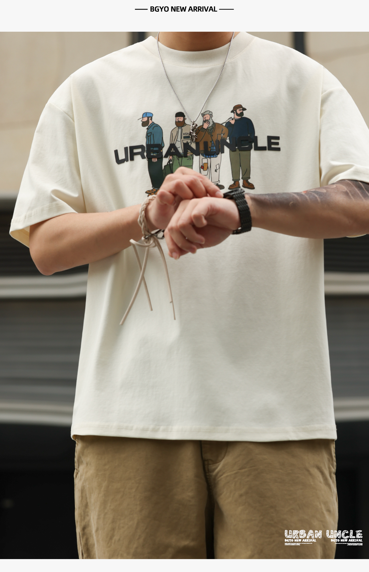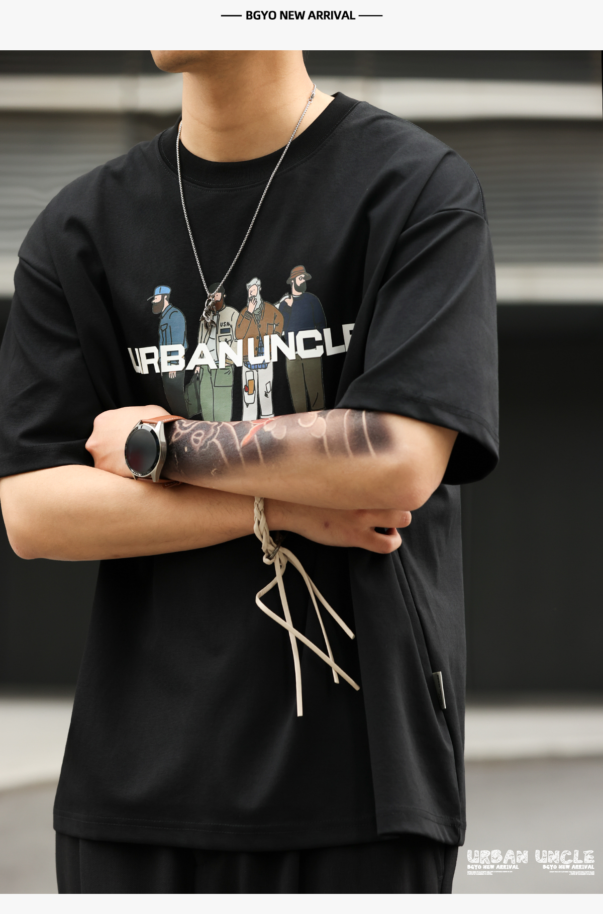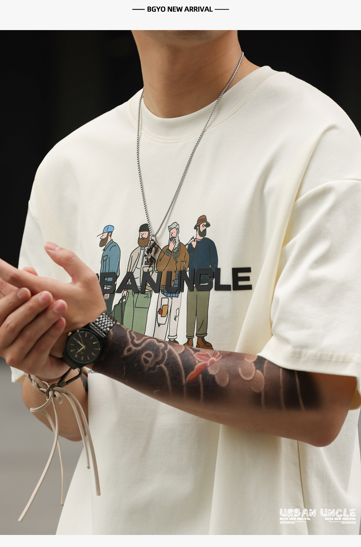 美式休閒趣味人物印花T恤男夏季街頭220g雙面棉短袖體恤