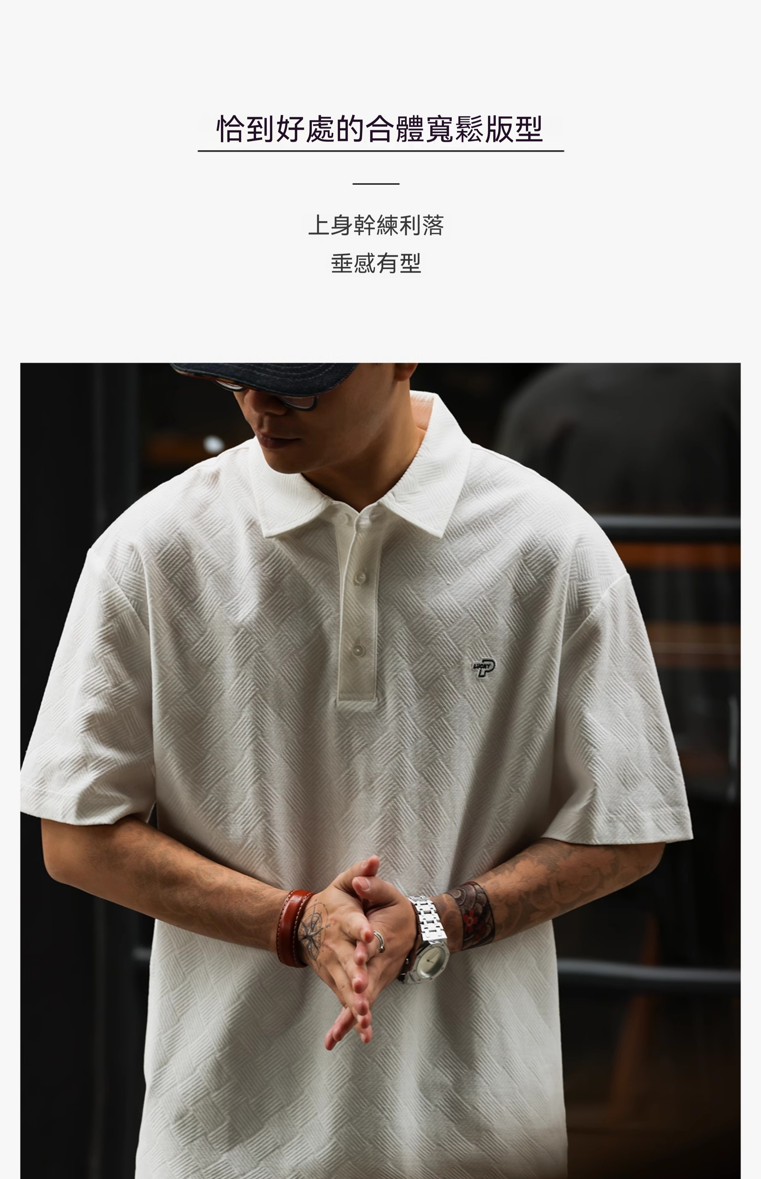 美式休閒200g短袖POLO衫男方格提花零壓舒適感刺繡T恤夏
