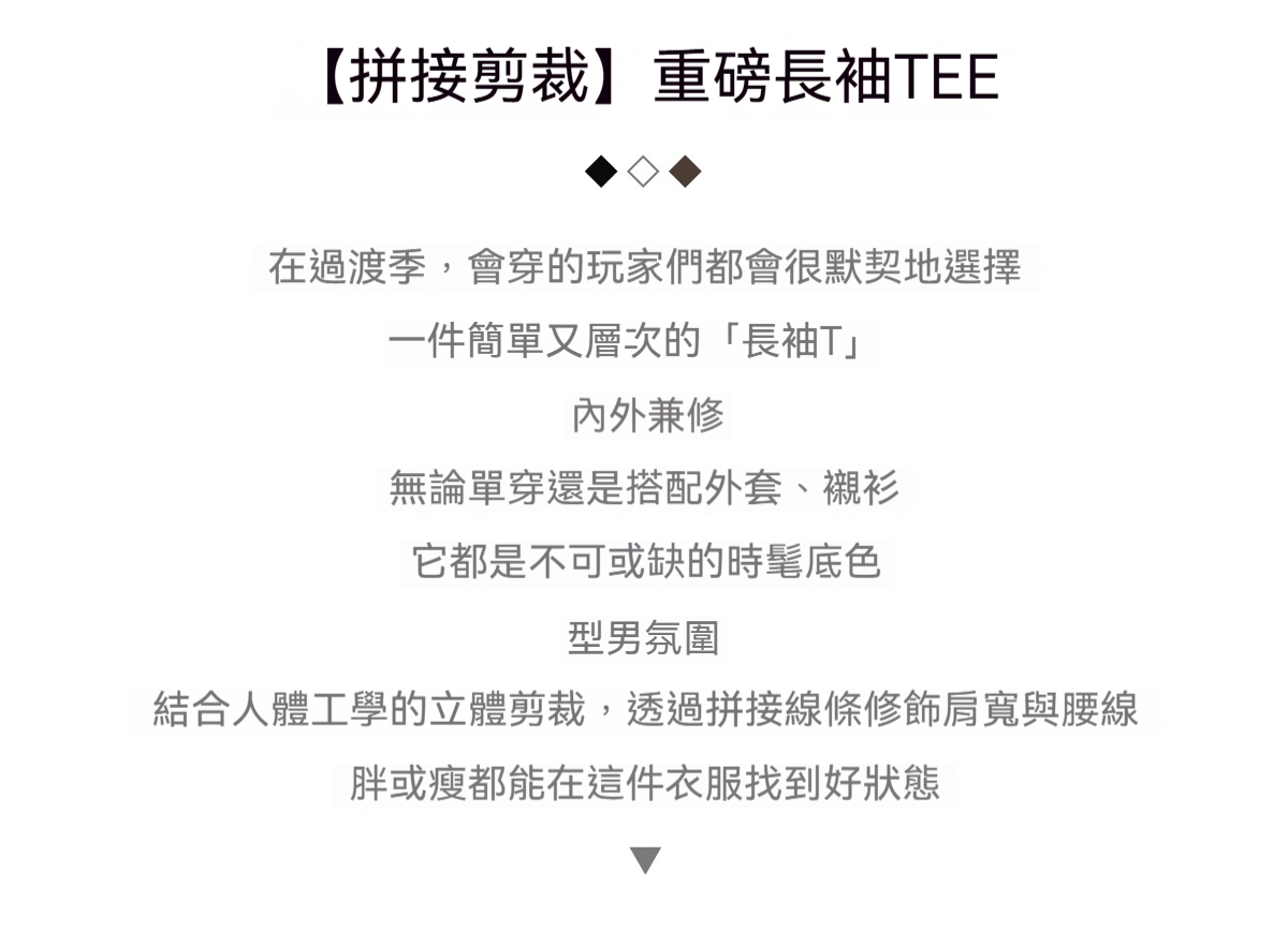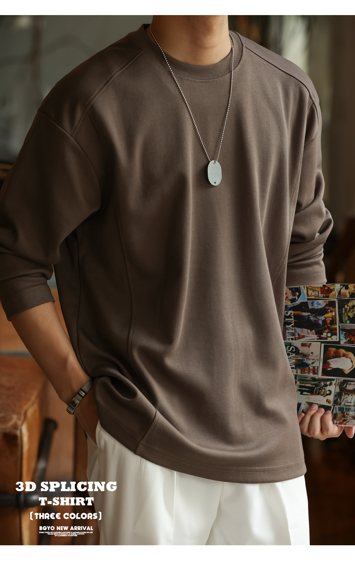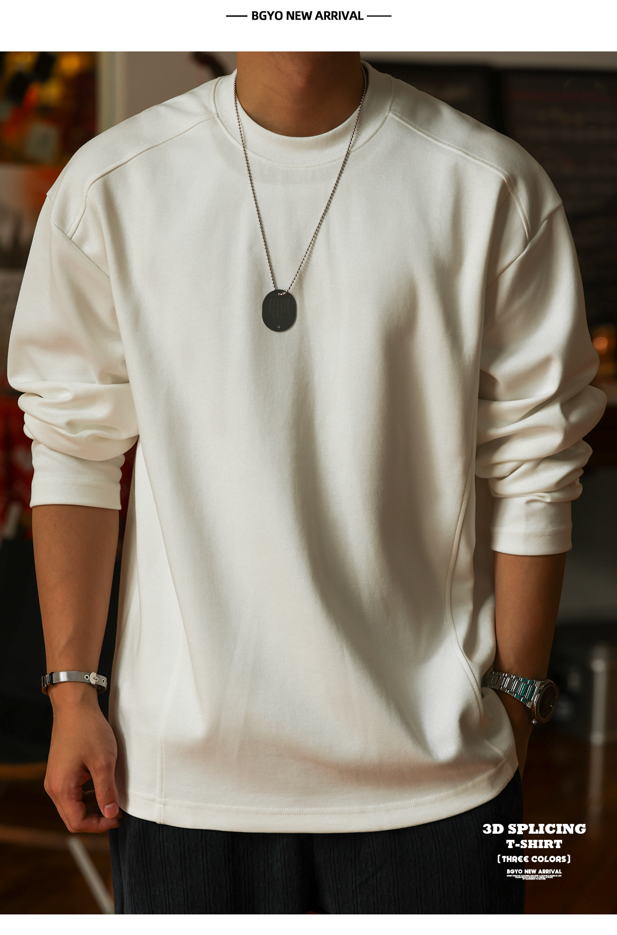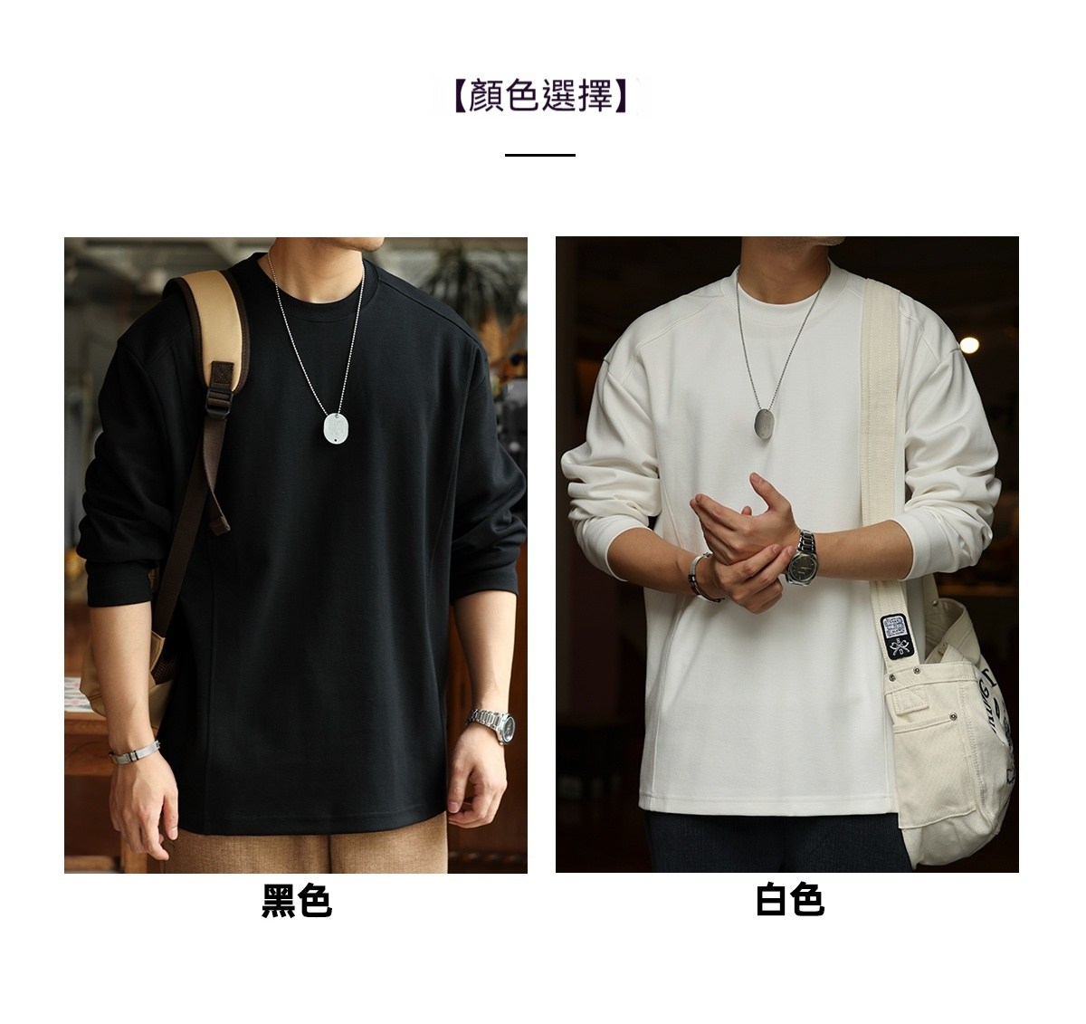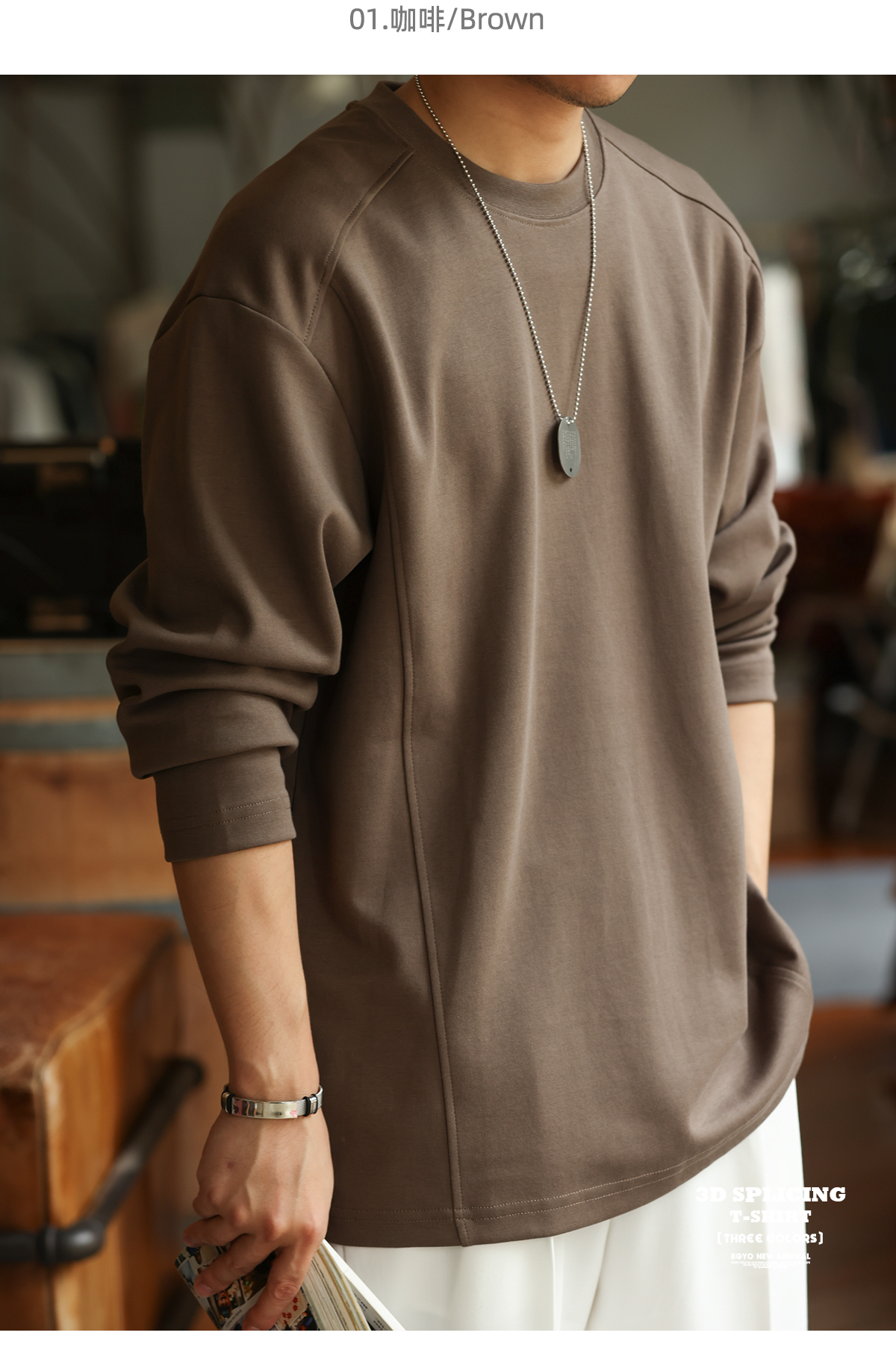 美式休閒280g拼接款長袖T恤男馬鞍肩設計cleanfit打底衫