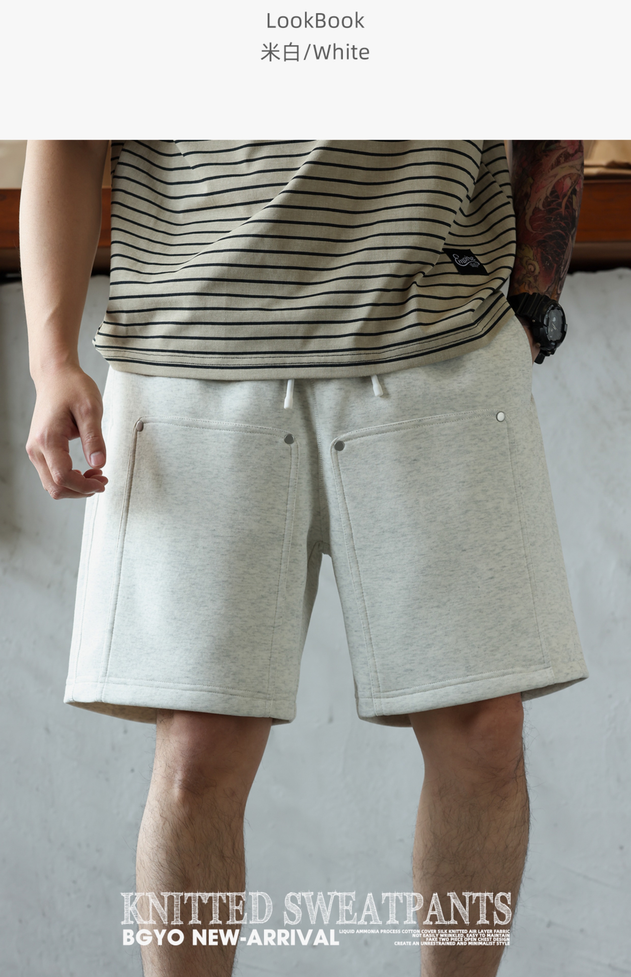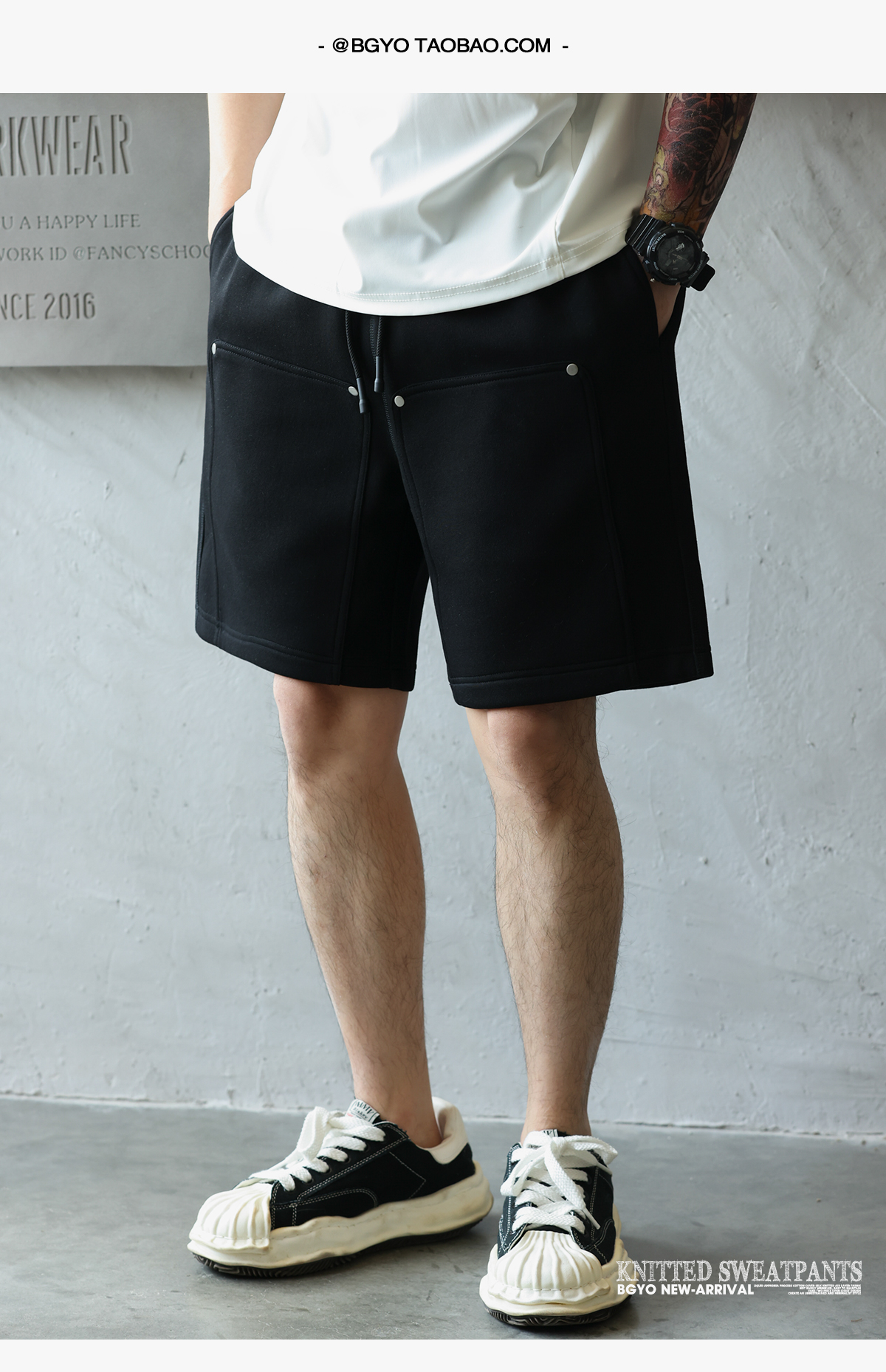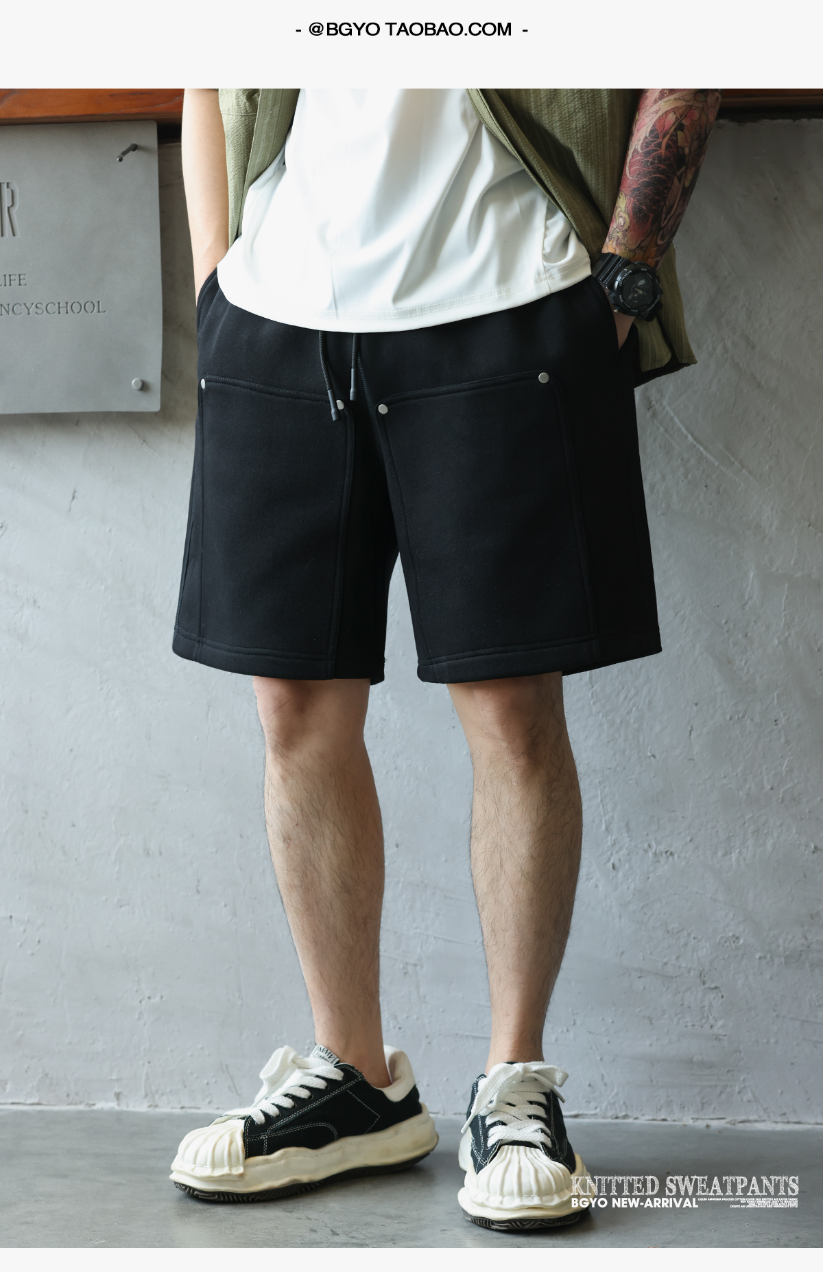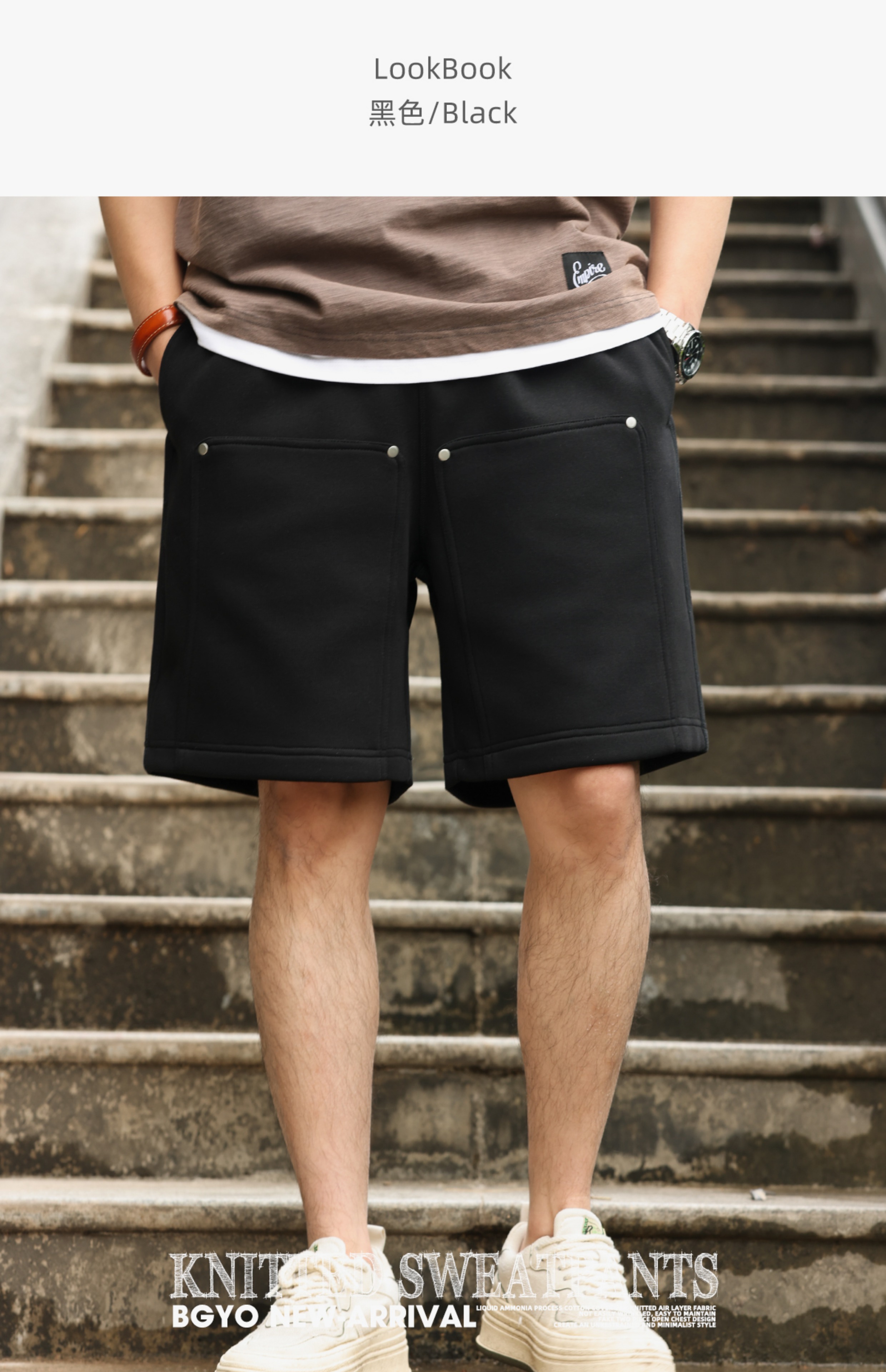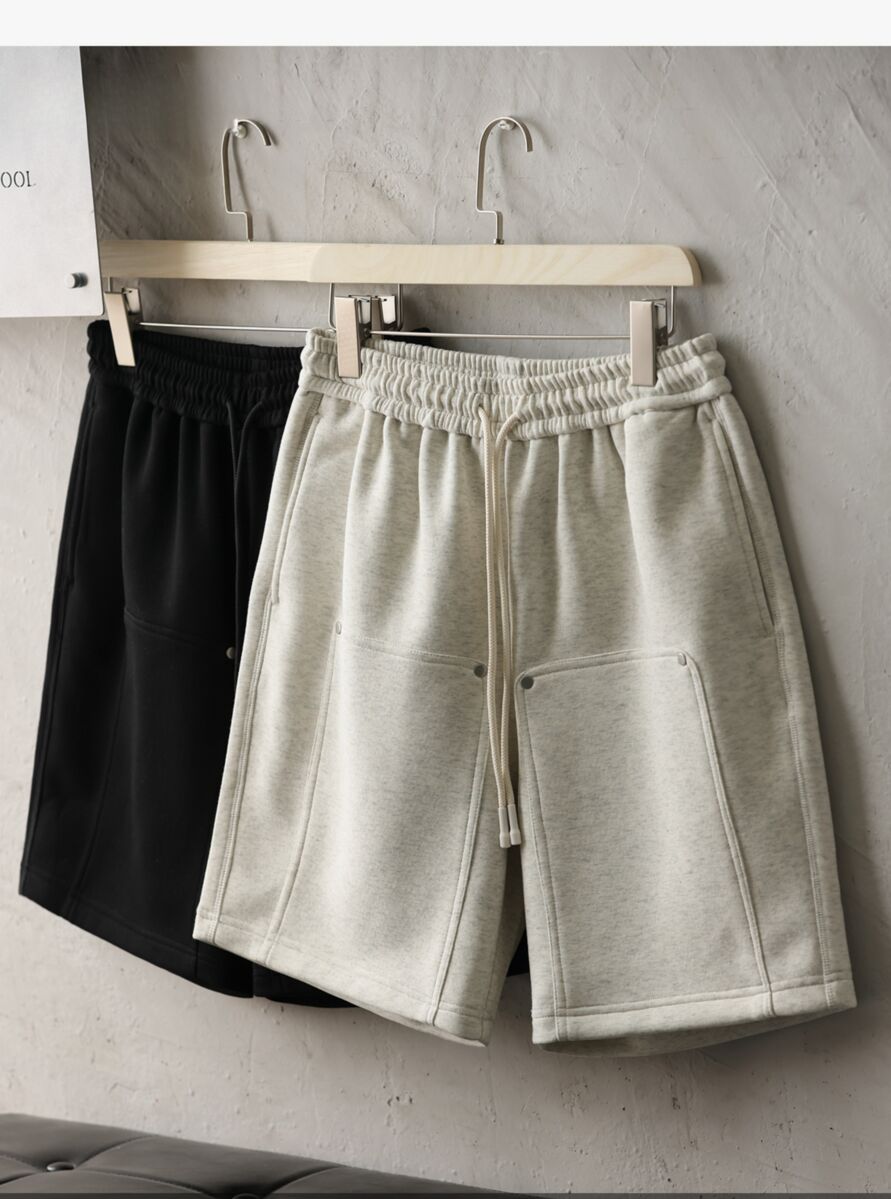 美式休閒320g重磅短褲男鉚釘設計直筒復古運動五分衛褲