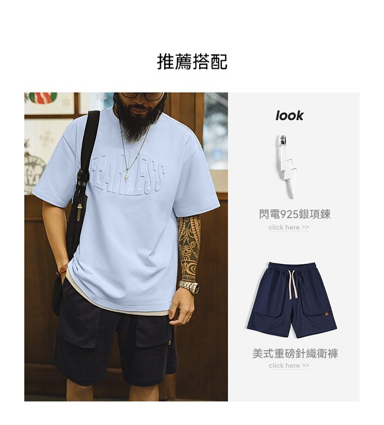 美式休閒3D印花純棉鋼印T恤淡藍透氣寬鬆高街短袖男春夏