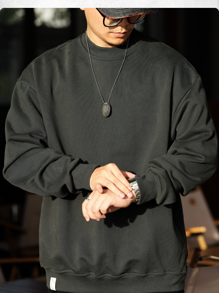 美式休閒480g重磅圓領衛衣男毛圈底復古純棉vintage運動上衣
