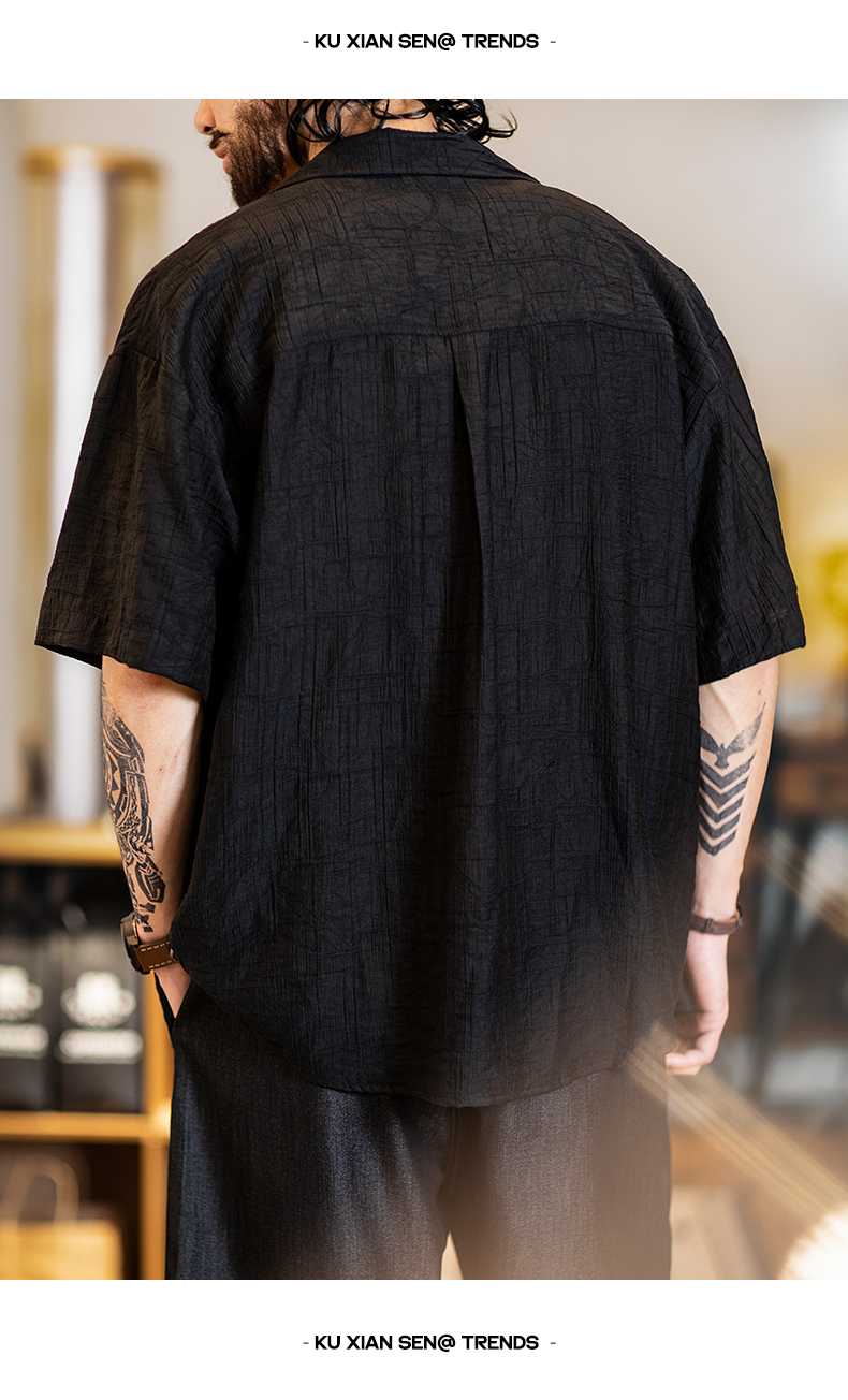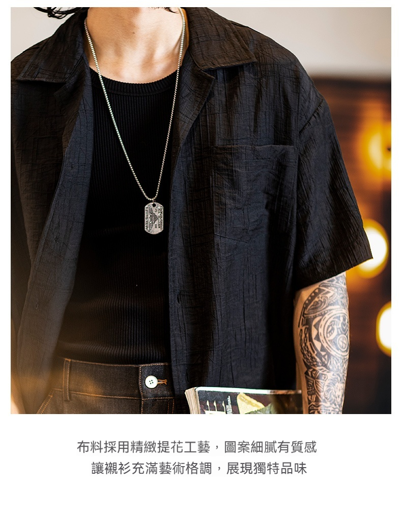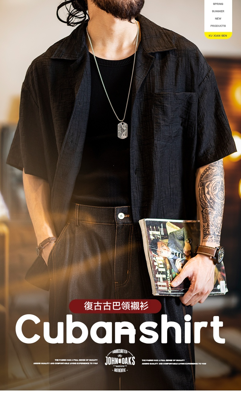 美式古巴領提花短袖襯衫男款夏季2025新款復古萊賽爾天絲t恤男夏