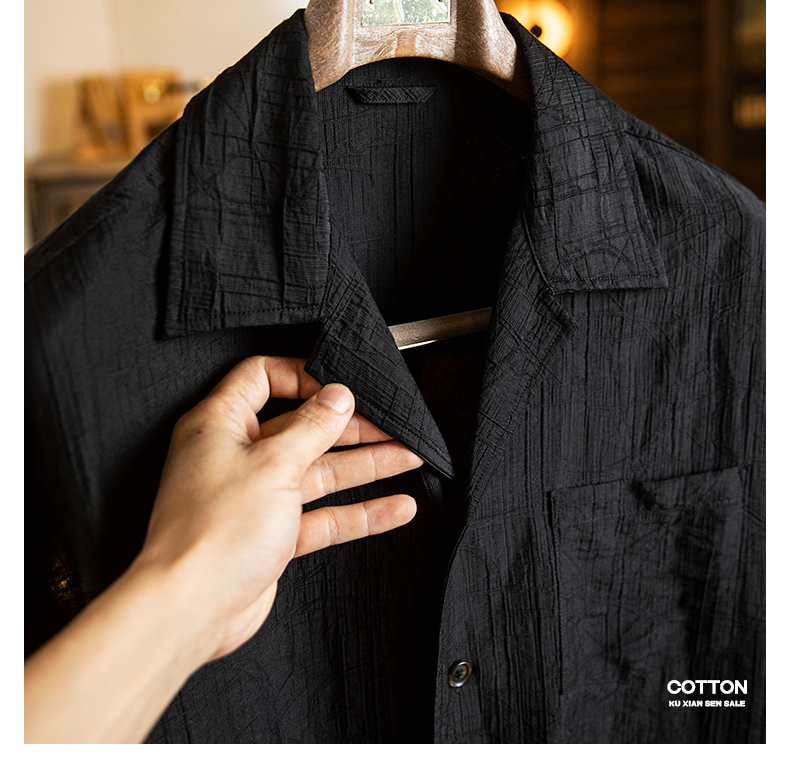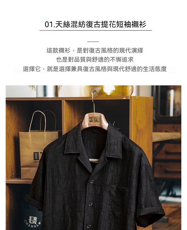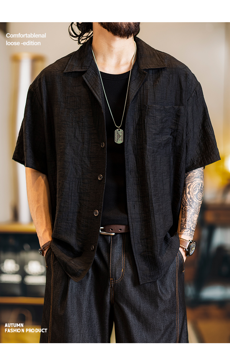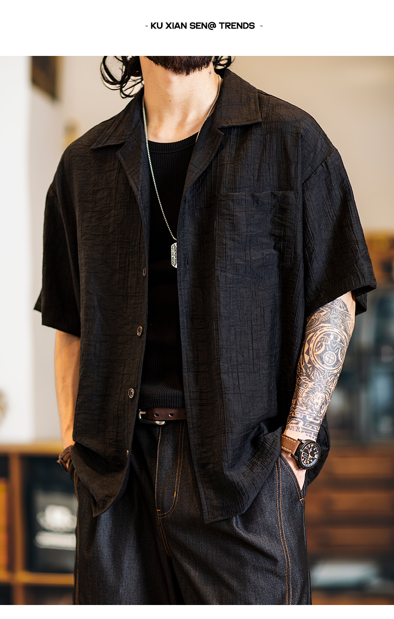 美式古巴領提花短袖襯衫男款夏季2025新款復古萊賽爾天絲t恤男夏