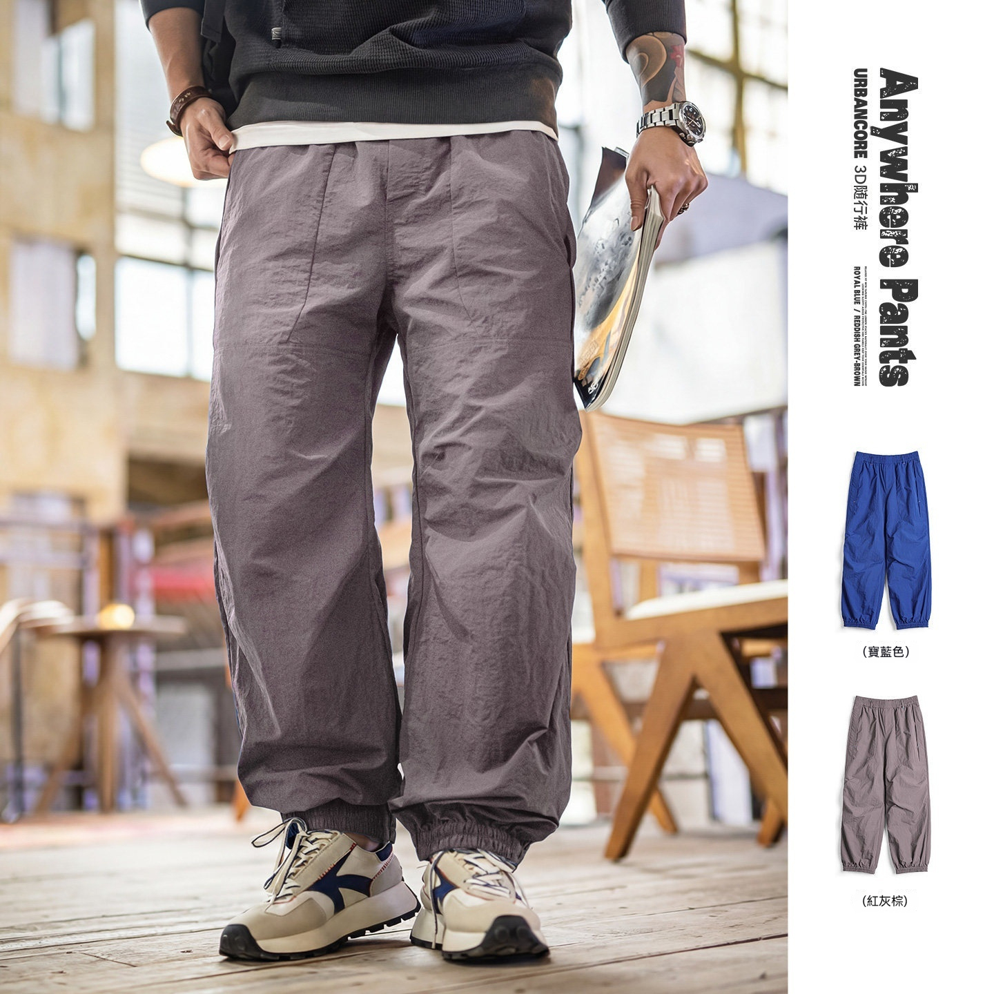 美式塔絲隆山系束脚傘兵褲直筒闊腿薄款寬鬆休閒褲子男春