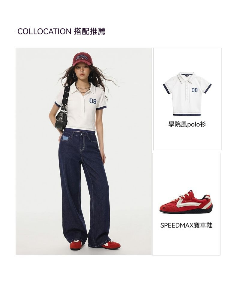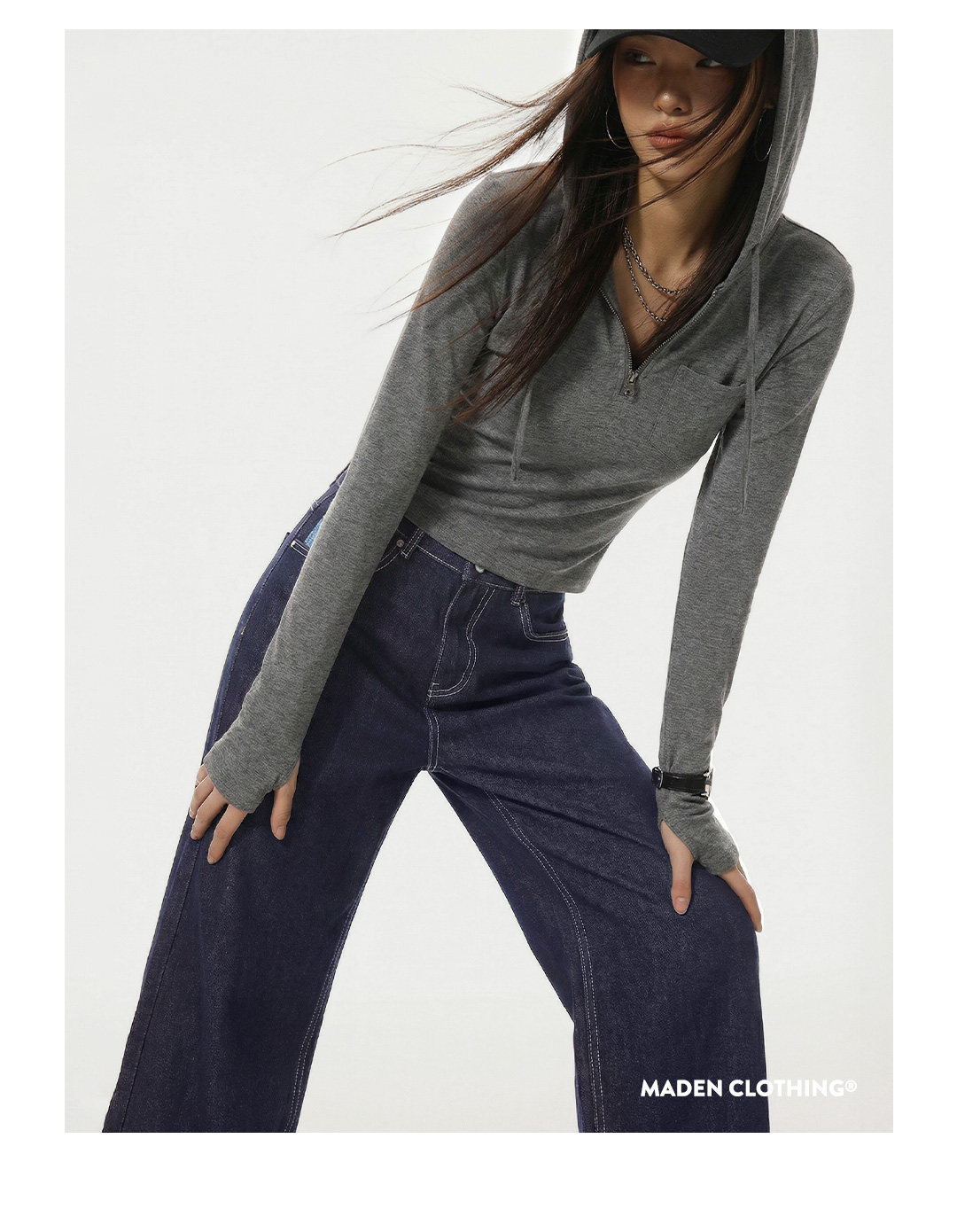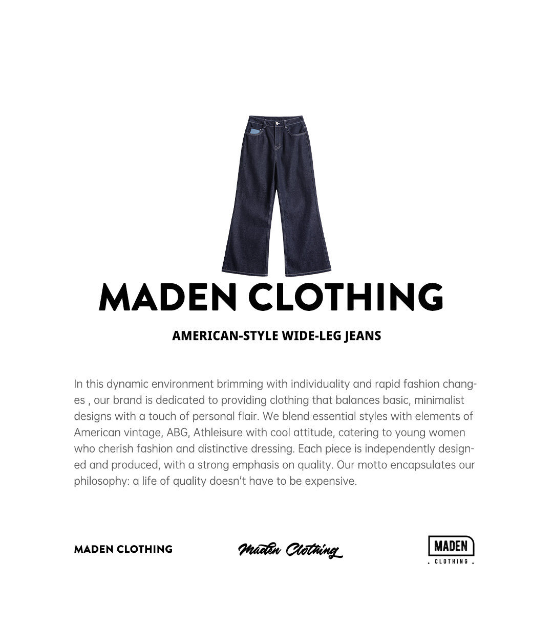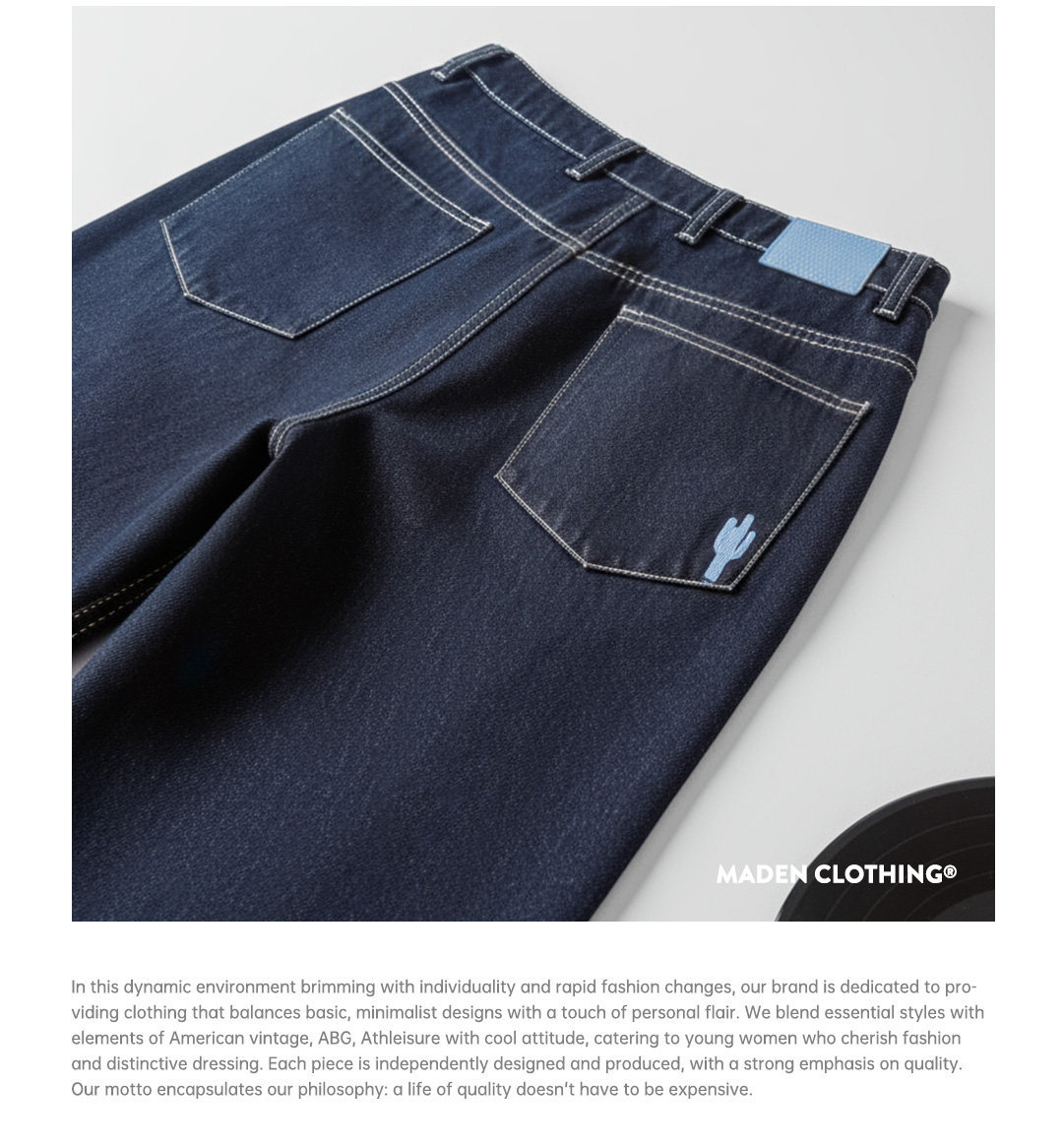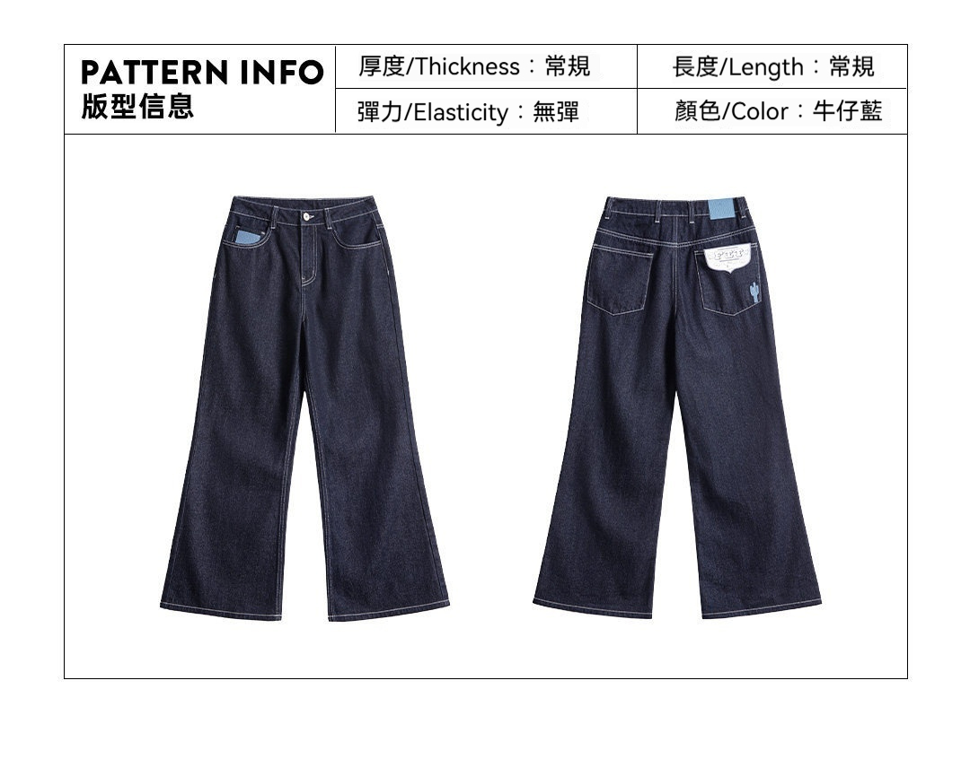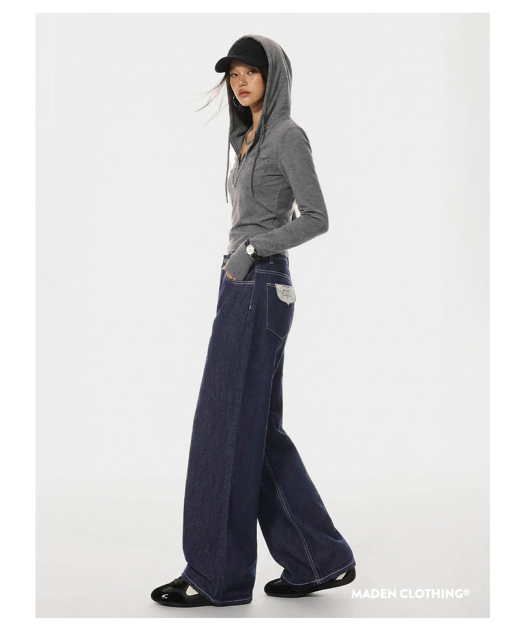 美式復古丹寧藍原色直筒闊腿水洗牛仔褲顯瘦休閒長褲子女士春