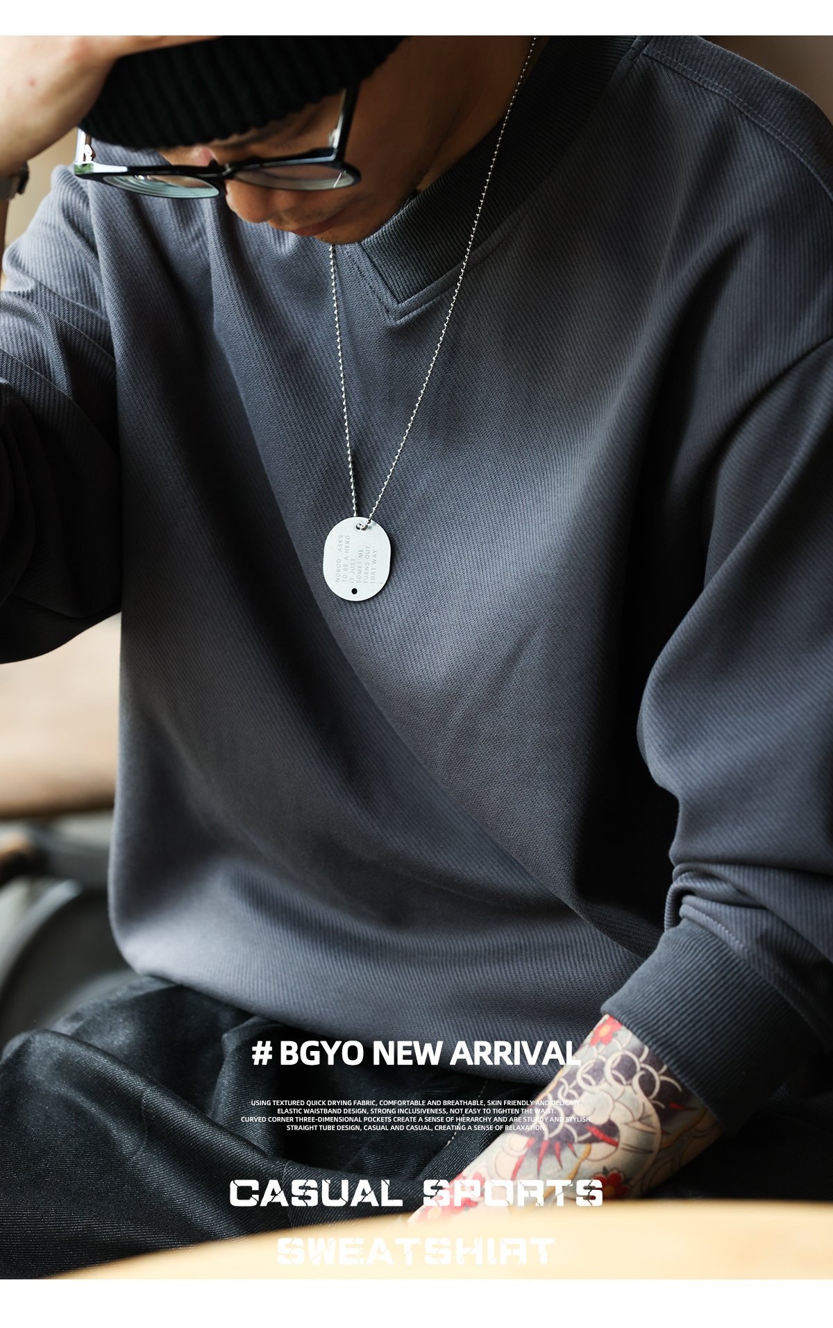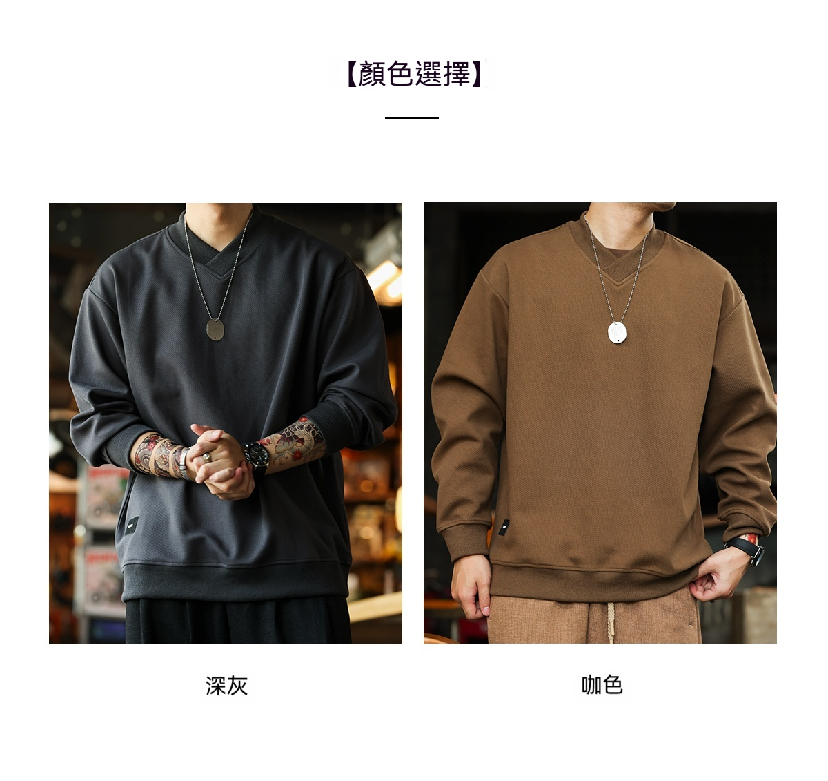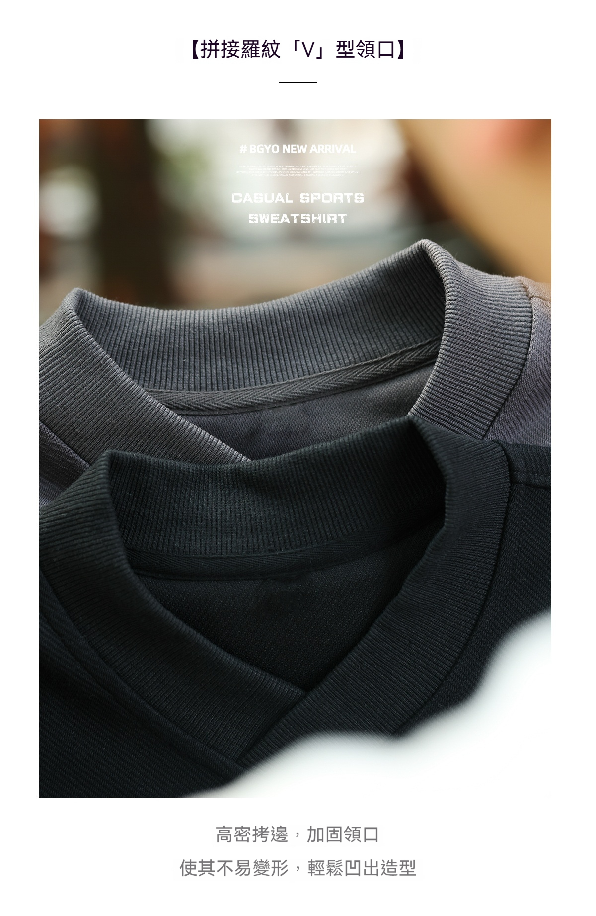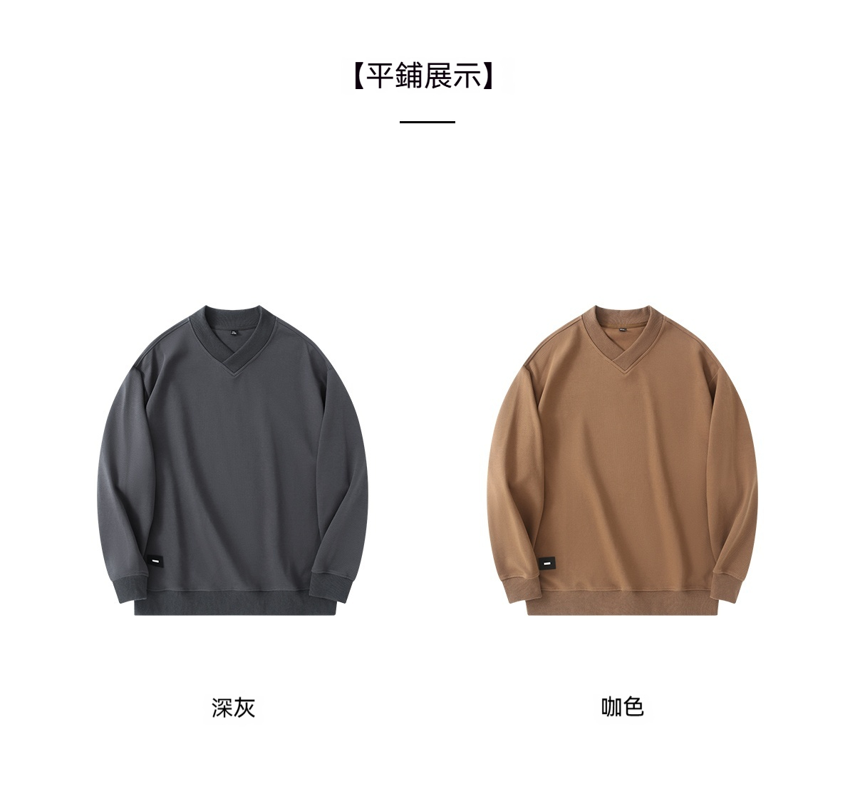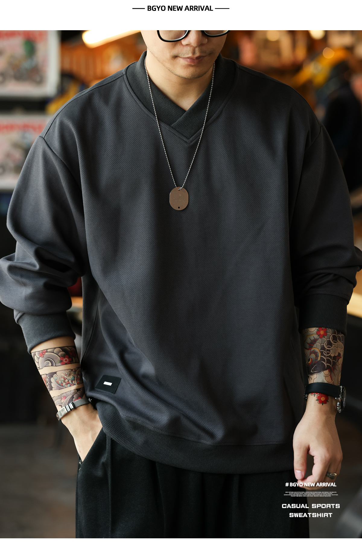 美式復古交疊小V領衛衣男380g斜紋肌理感休閒套頭上衣秋
