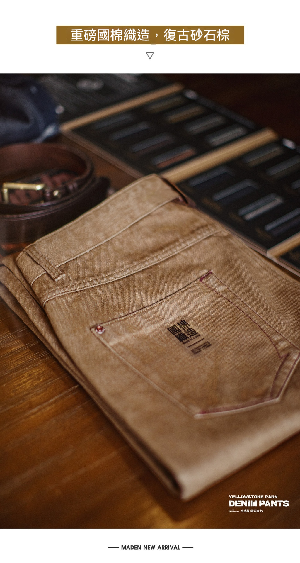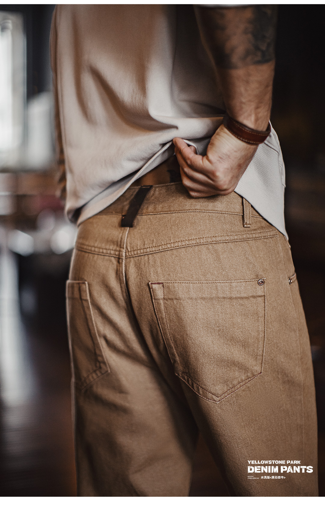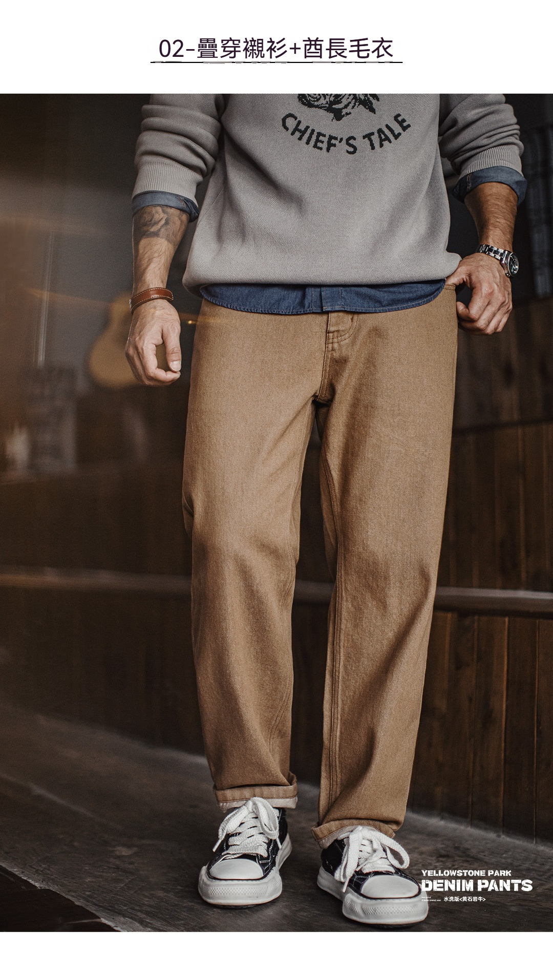 美式復古卡其色牛仔褲美拉德直筒休閒天絲萊賽爾褲子男秋