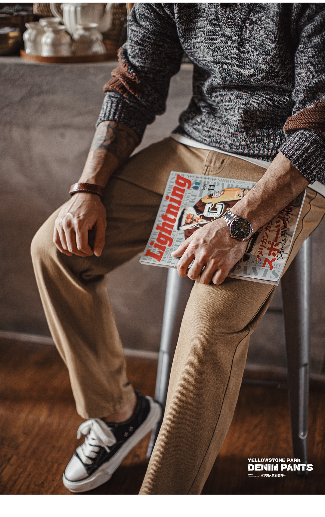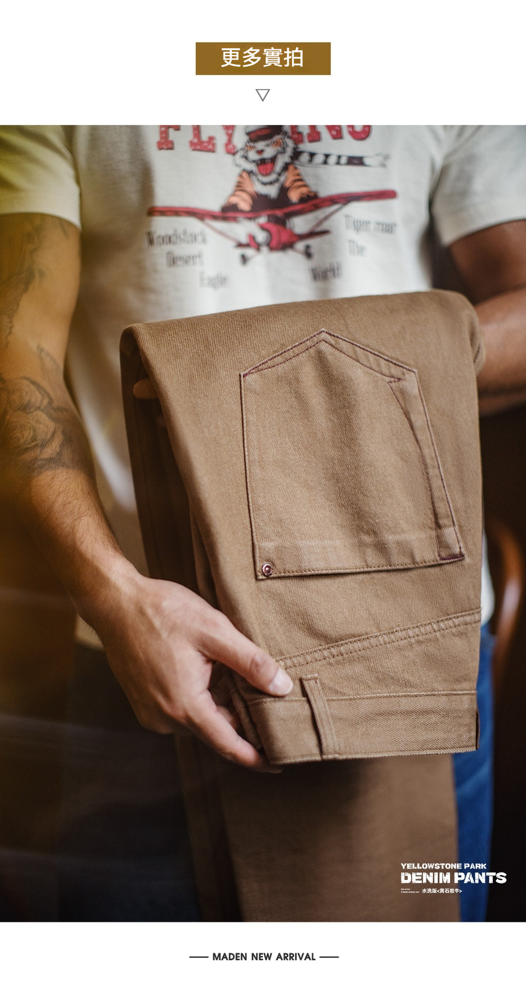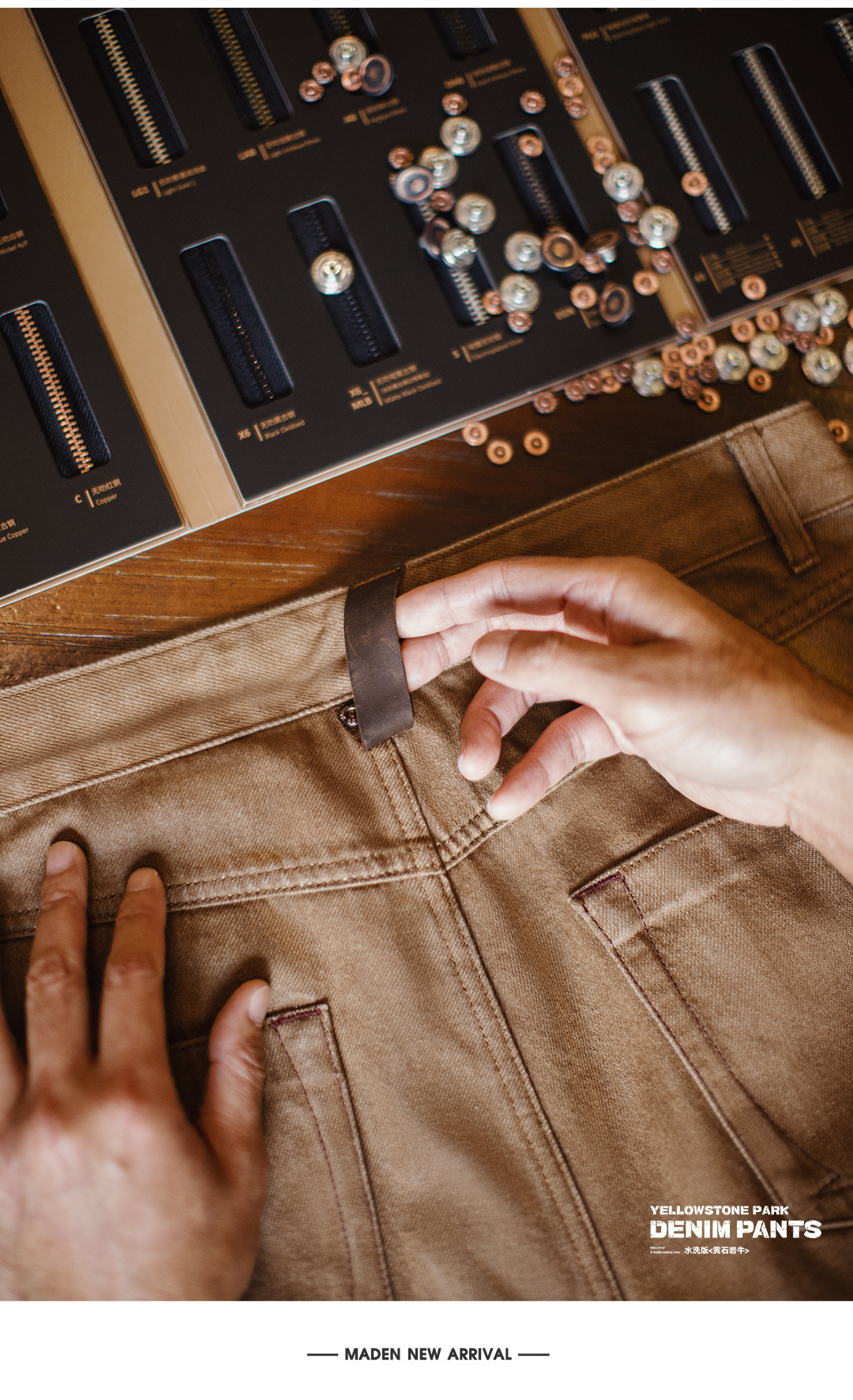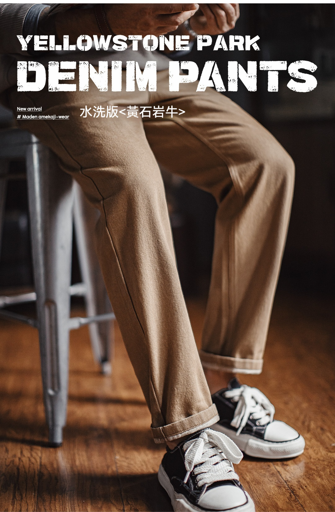 美式復古卡其色牛仔褲美拉德直筒休閒天絲萊賽爾褲子男秋
