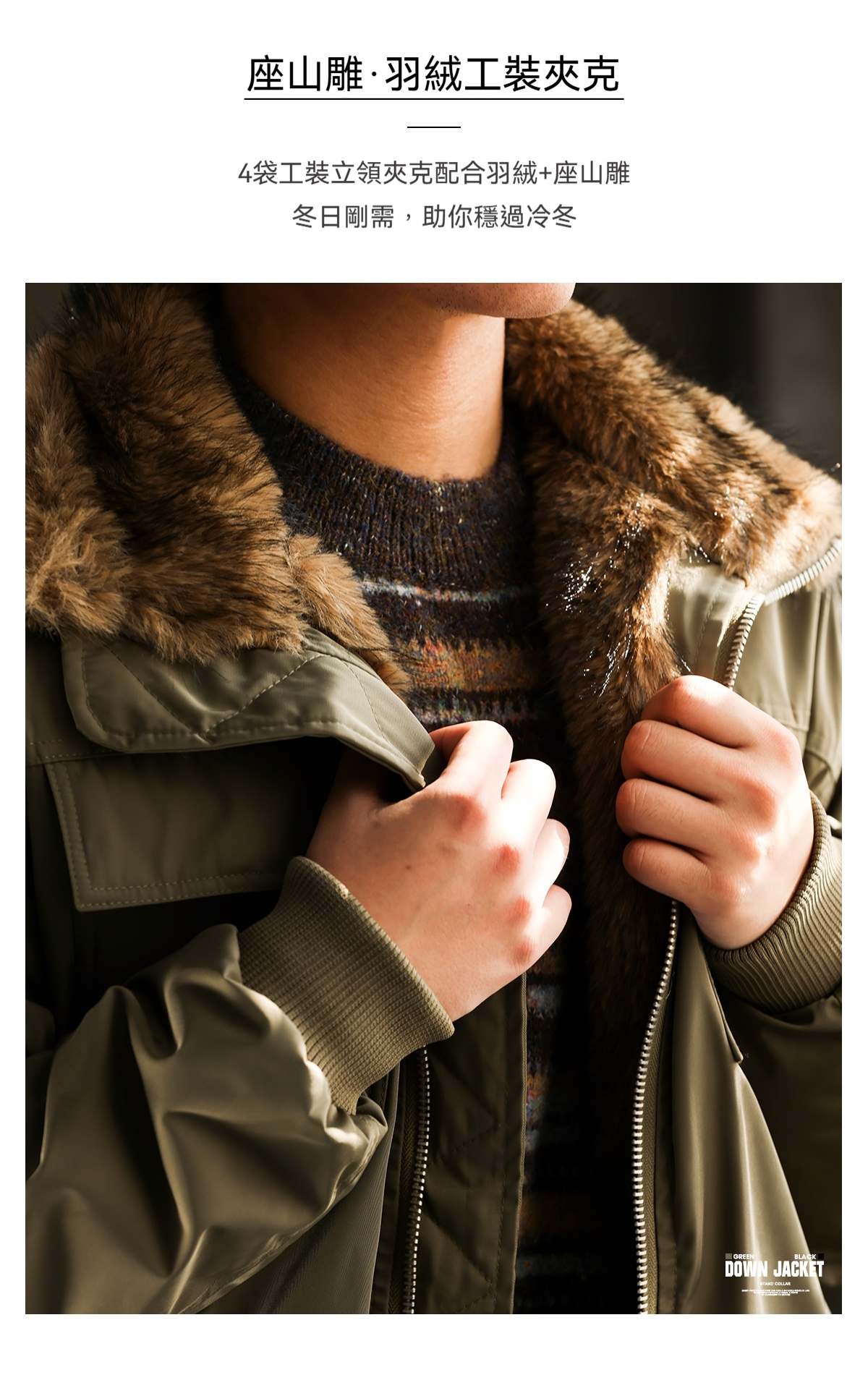 美式復古坦克手工裝羽絨服男重磅保暖毛邊領座山雕外套