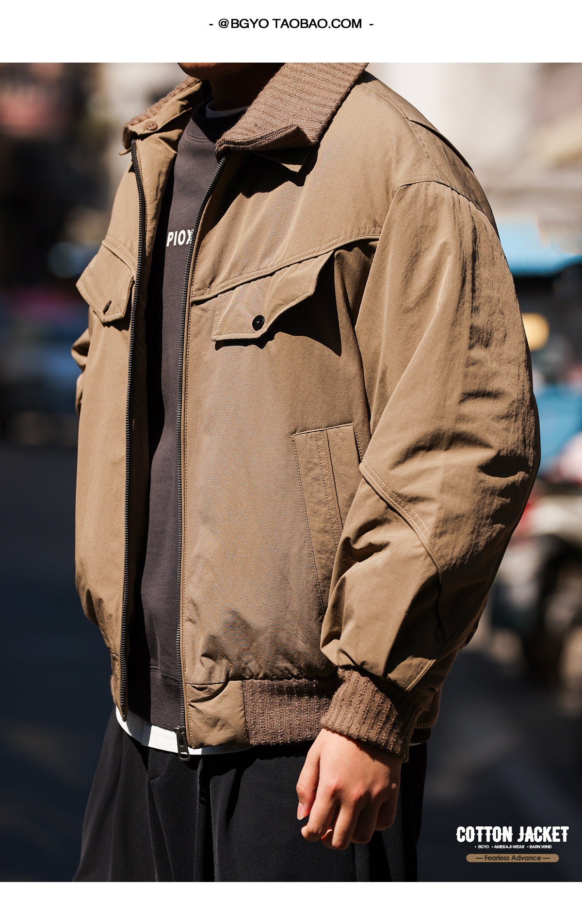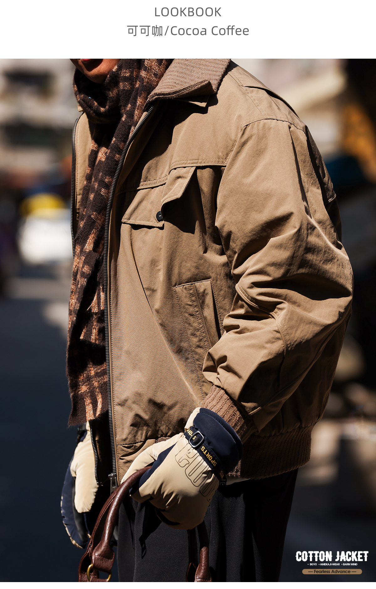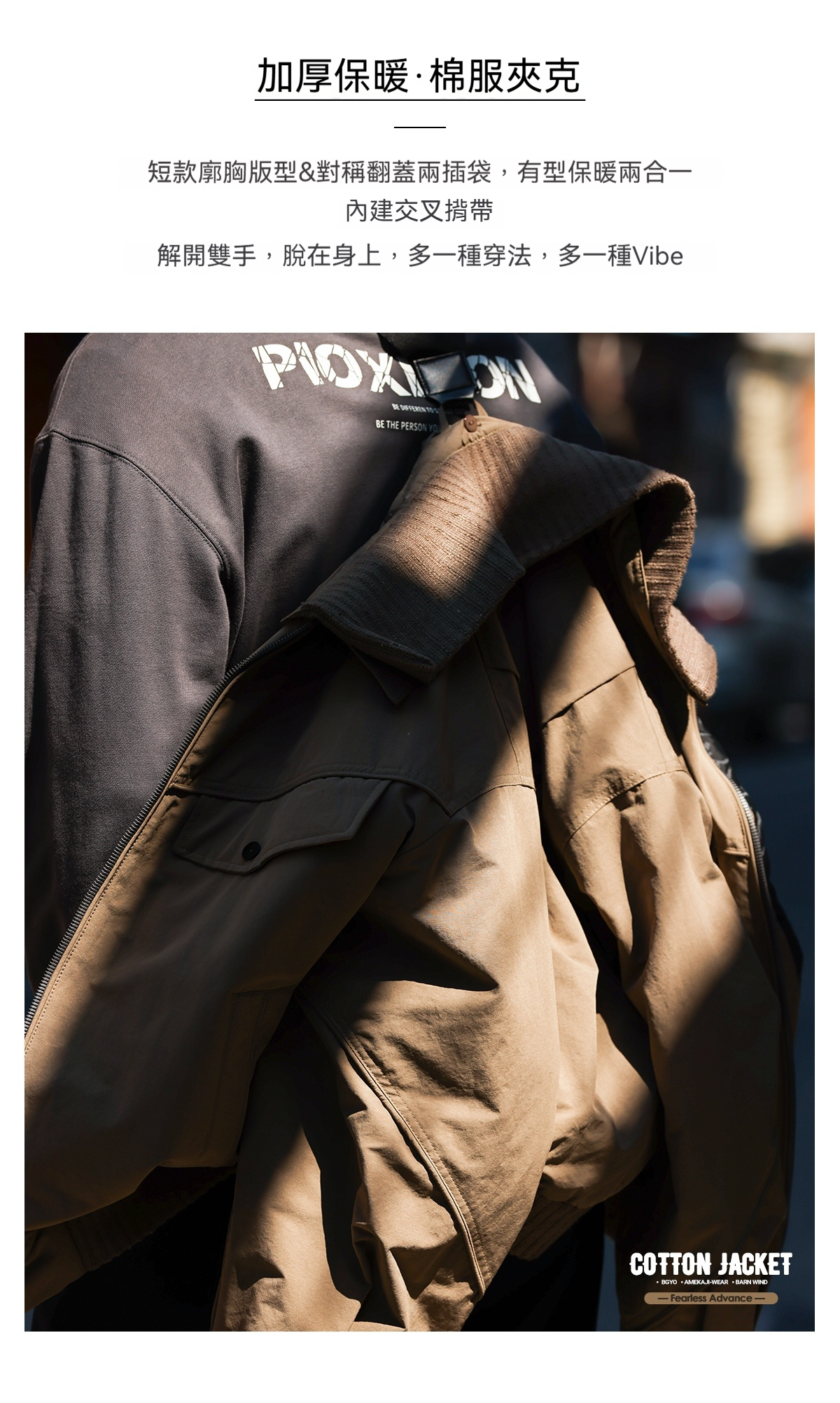 美式復古工裝雙層翻領棉服外套男加厚防寒保暖棉衣夾克
