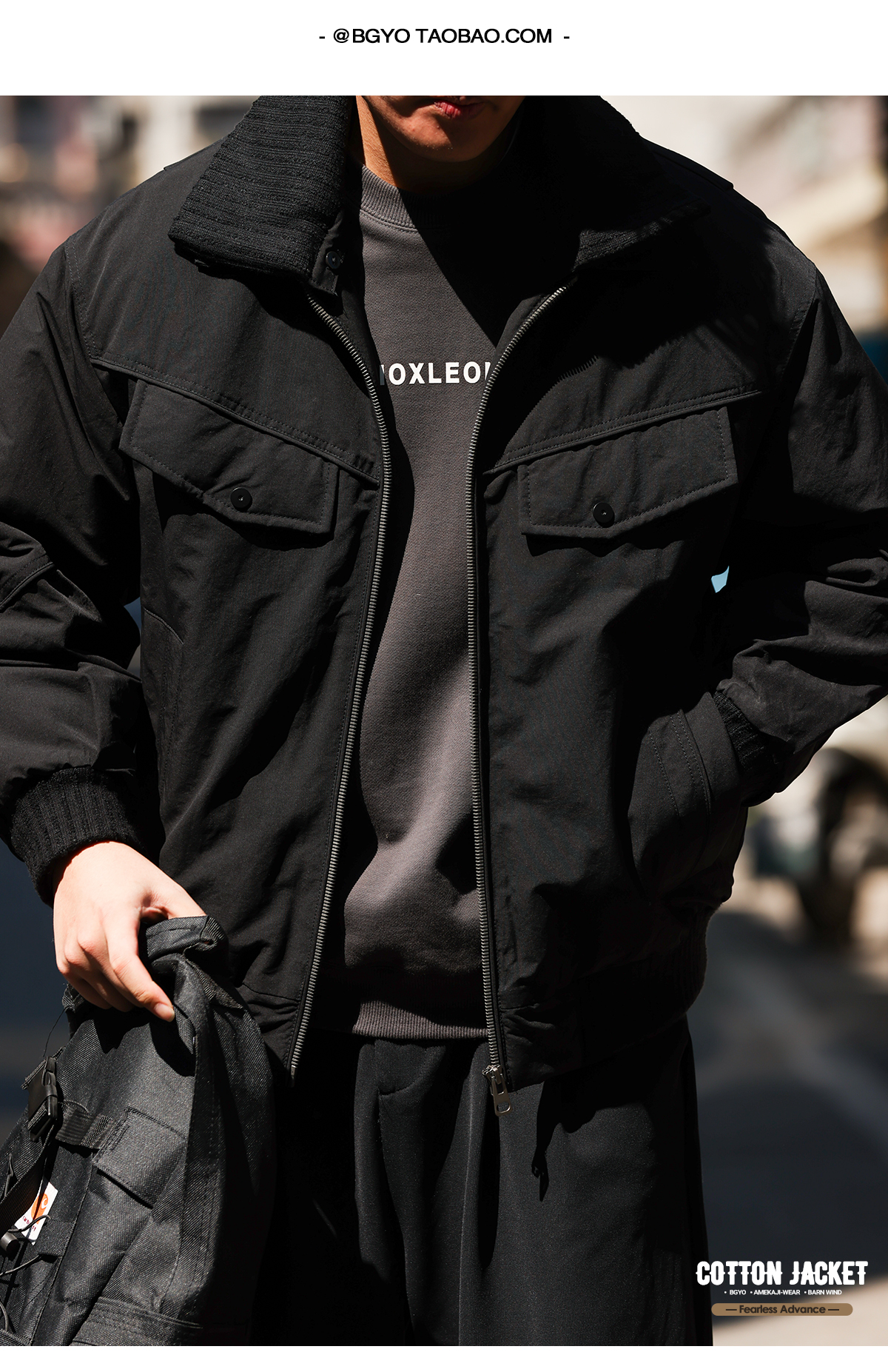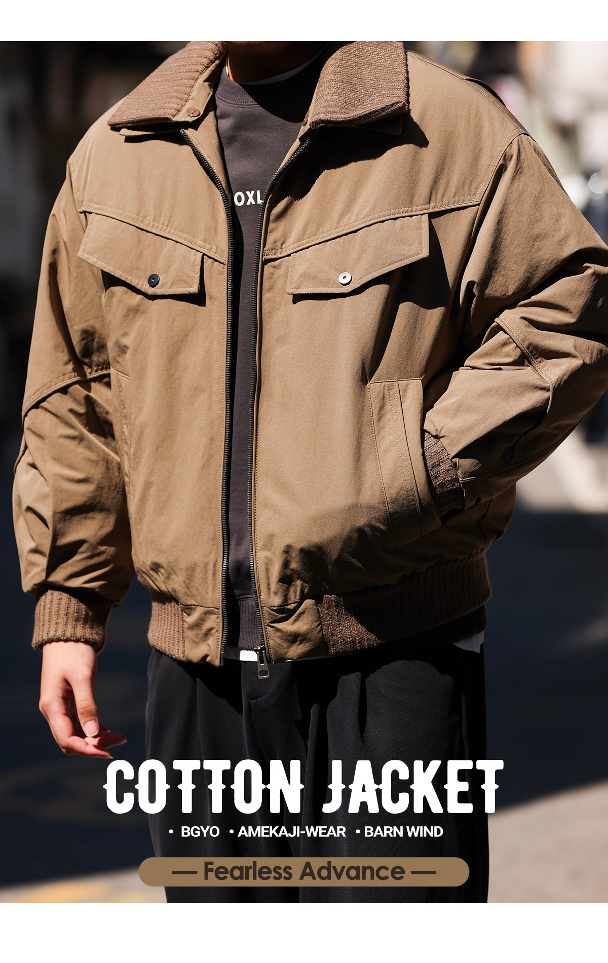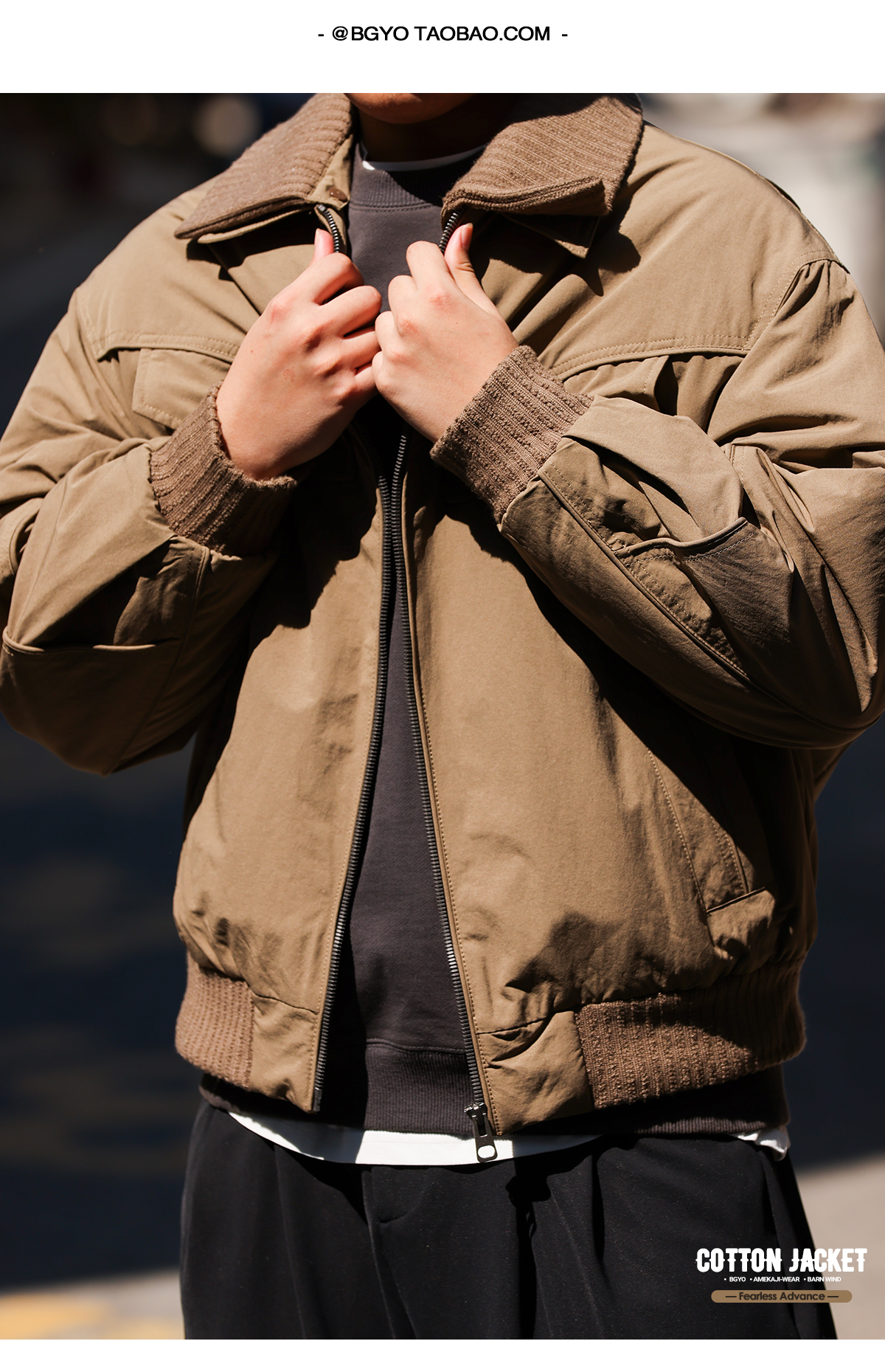 美式復古工裝雙層翻領棉服外套男加厚防寒保暖棉衣夾克