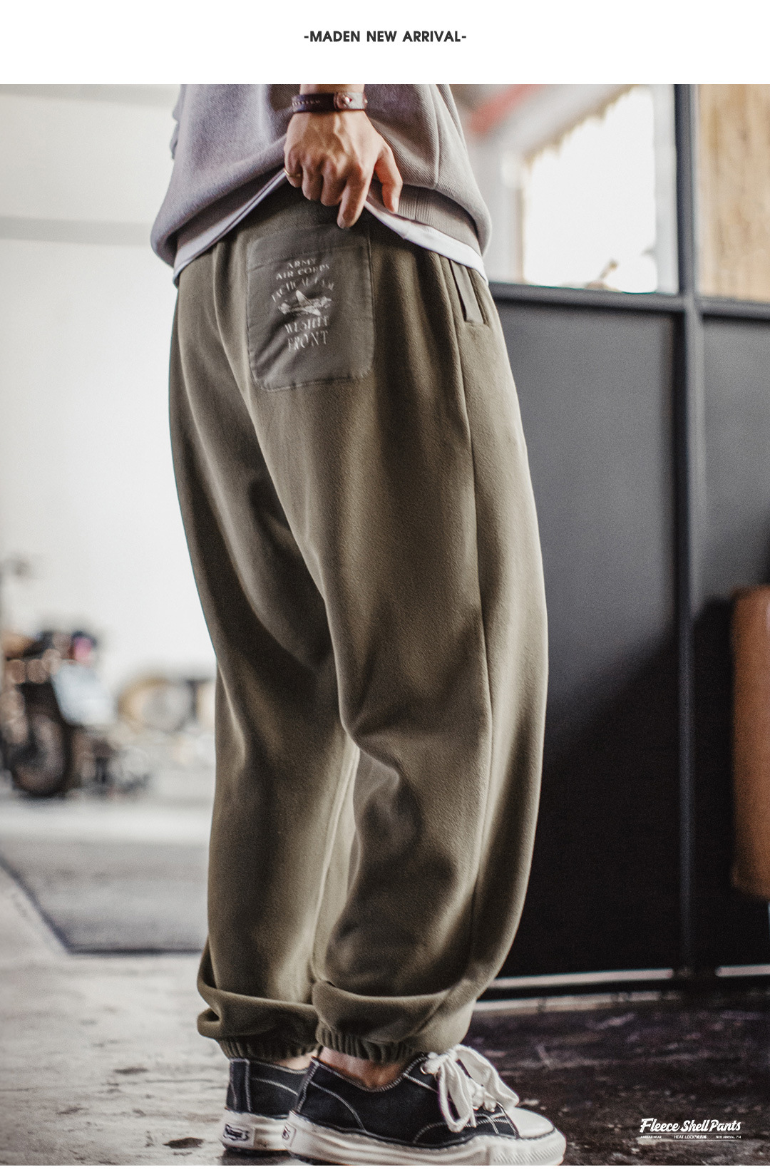 美式復古搖粒絨衛褲加絨保暖棕色美拉德束脚休閒褲男秋冬