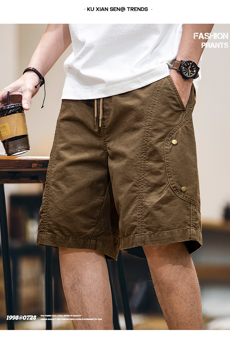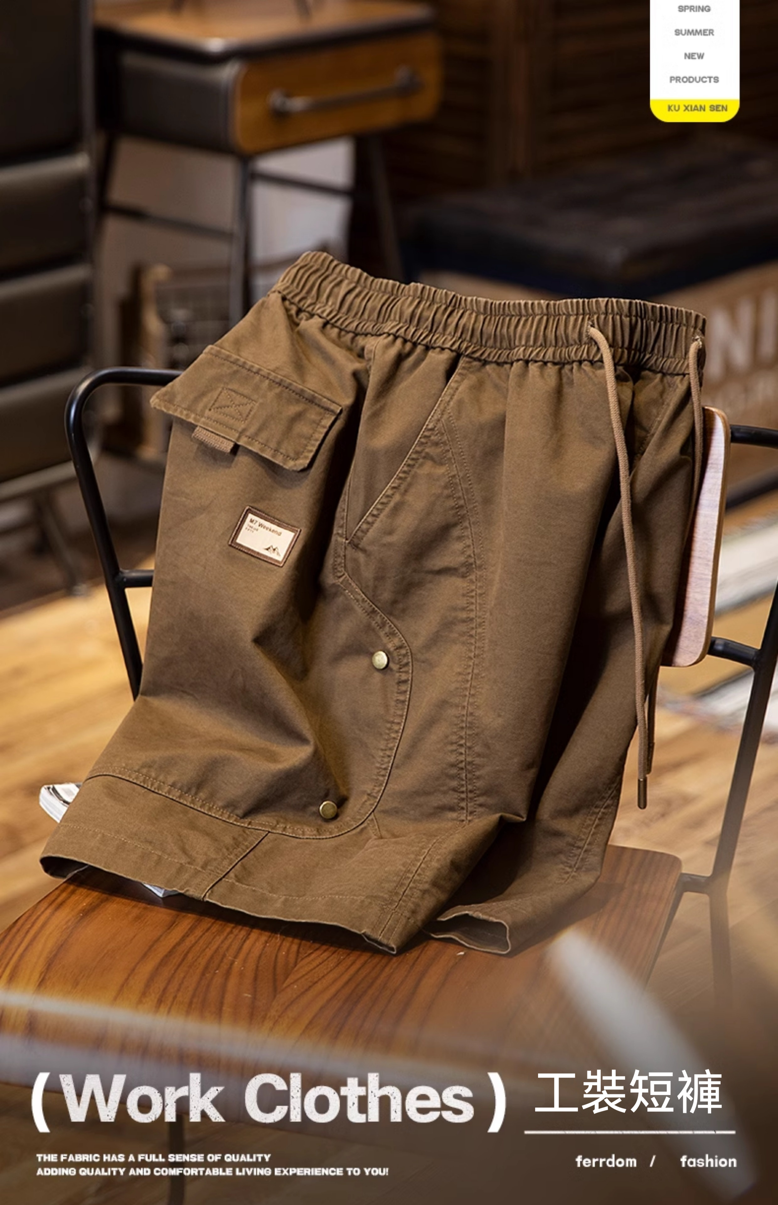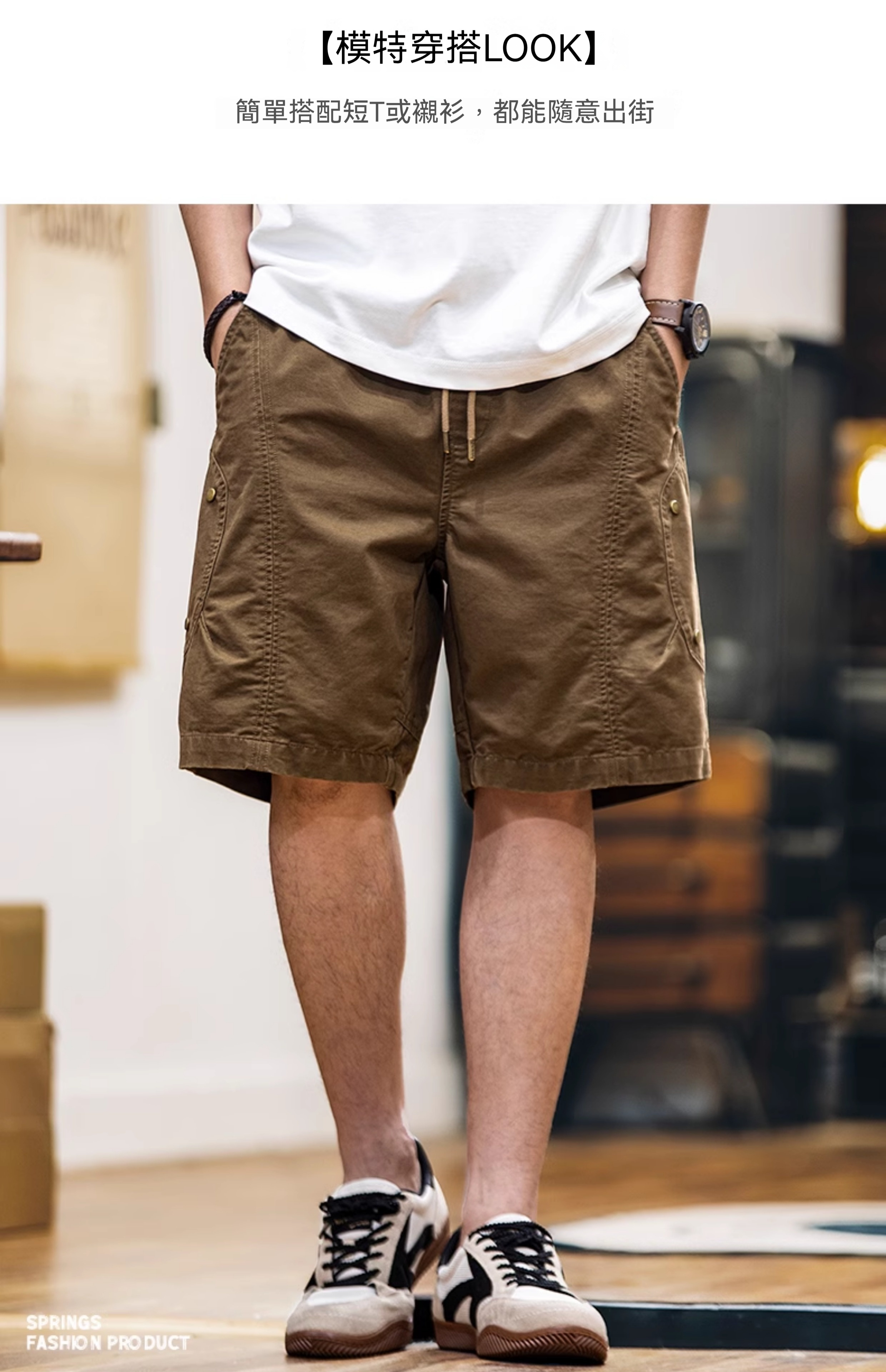 美式復古水洗工裝短褲男2025夏季新款寬鬆休閒五分褲純棉5分中褲