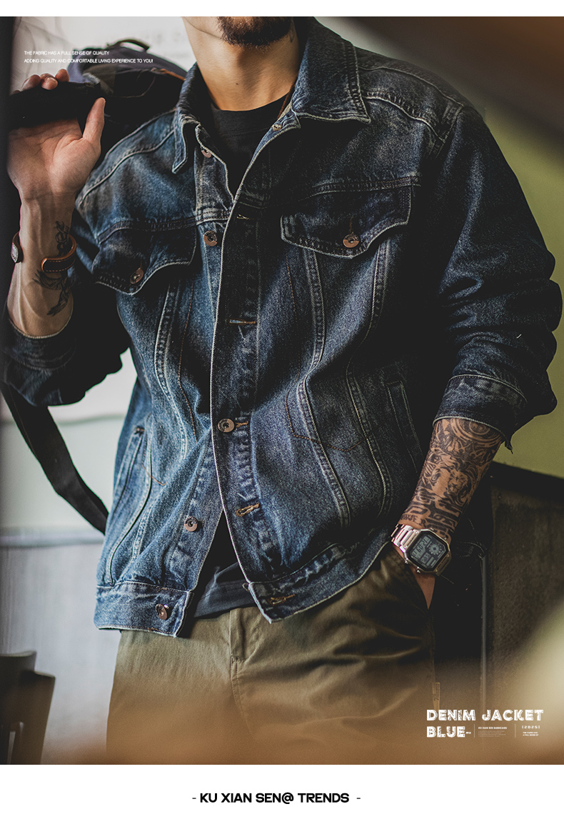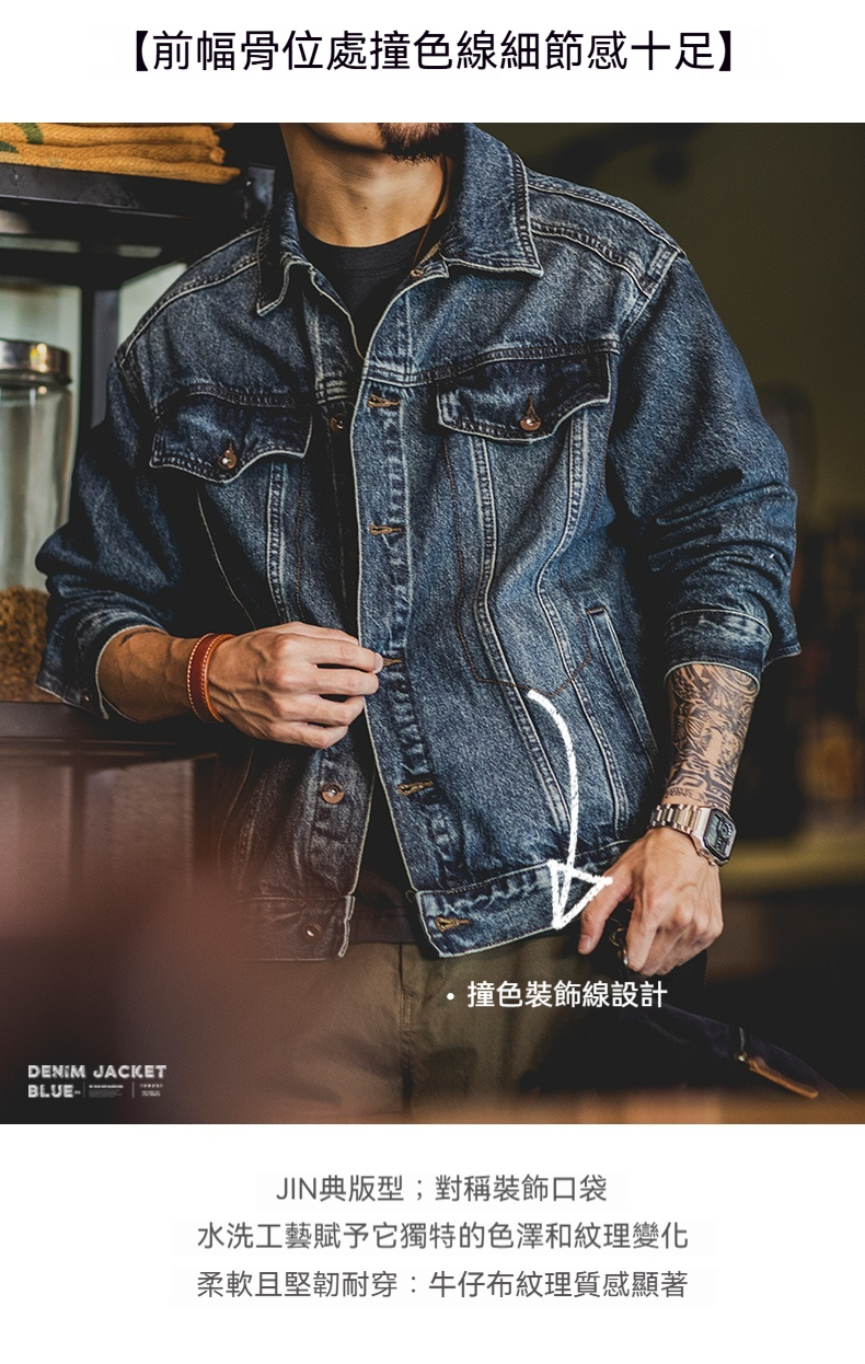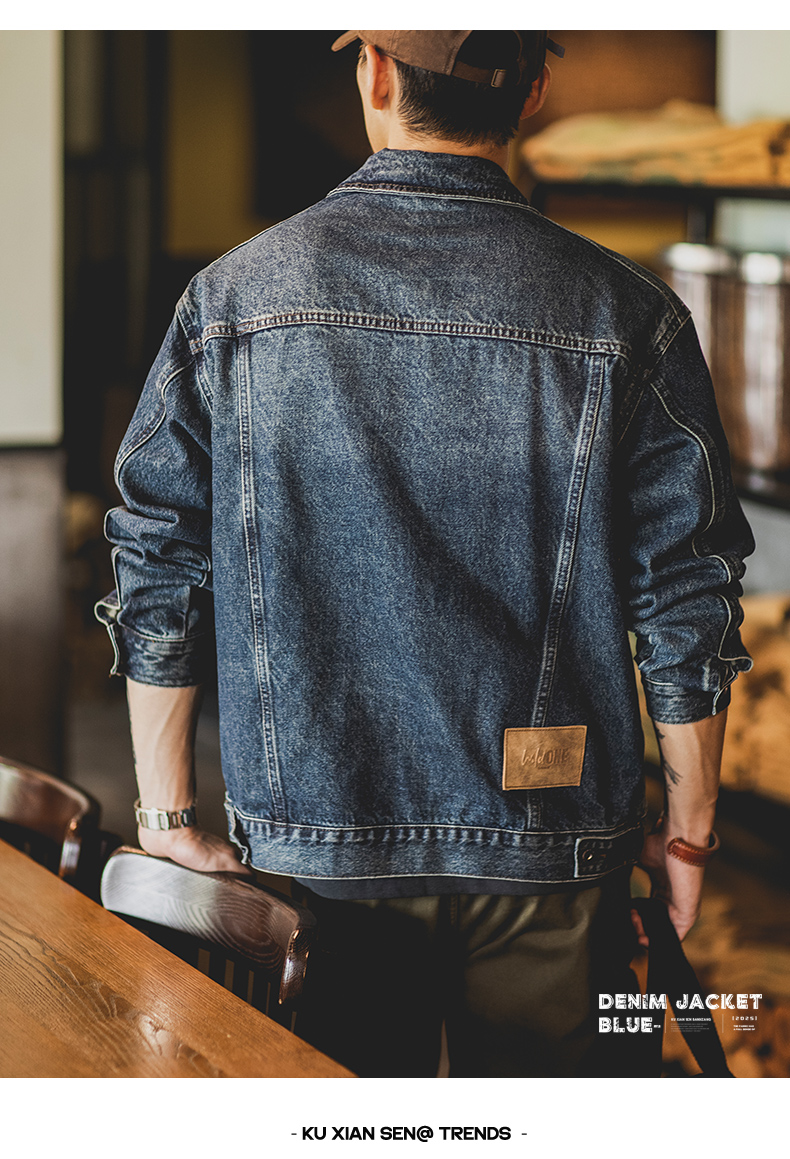美式復古水洗藍色牛仔外套男2025秋季新款阿美哢嘰寬鬆工裝夾克