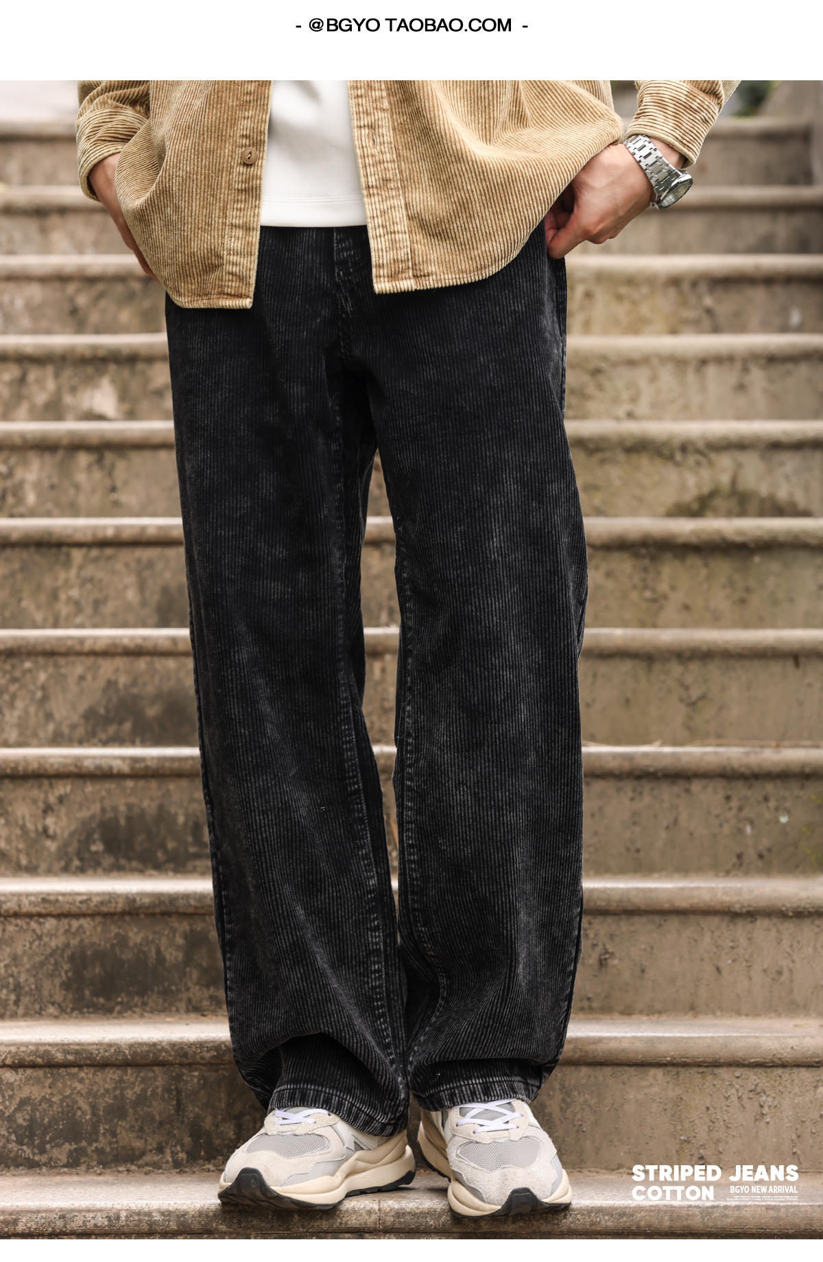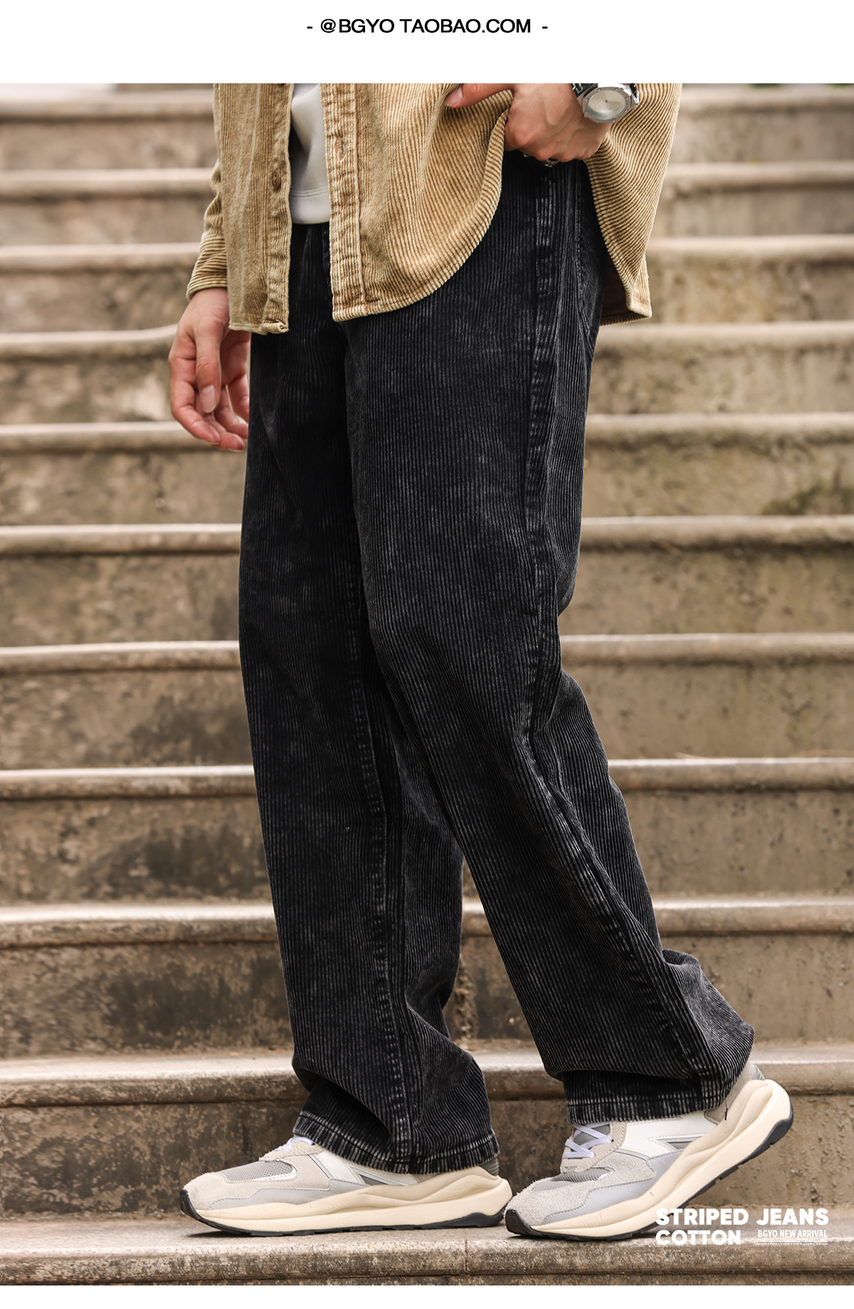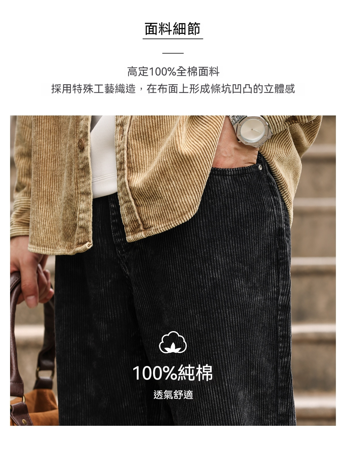 美式復古燈芯絨牛仔褲男寬鬆水洗做舊感vibe直筒休閒褲