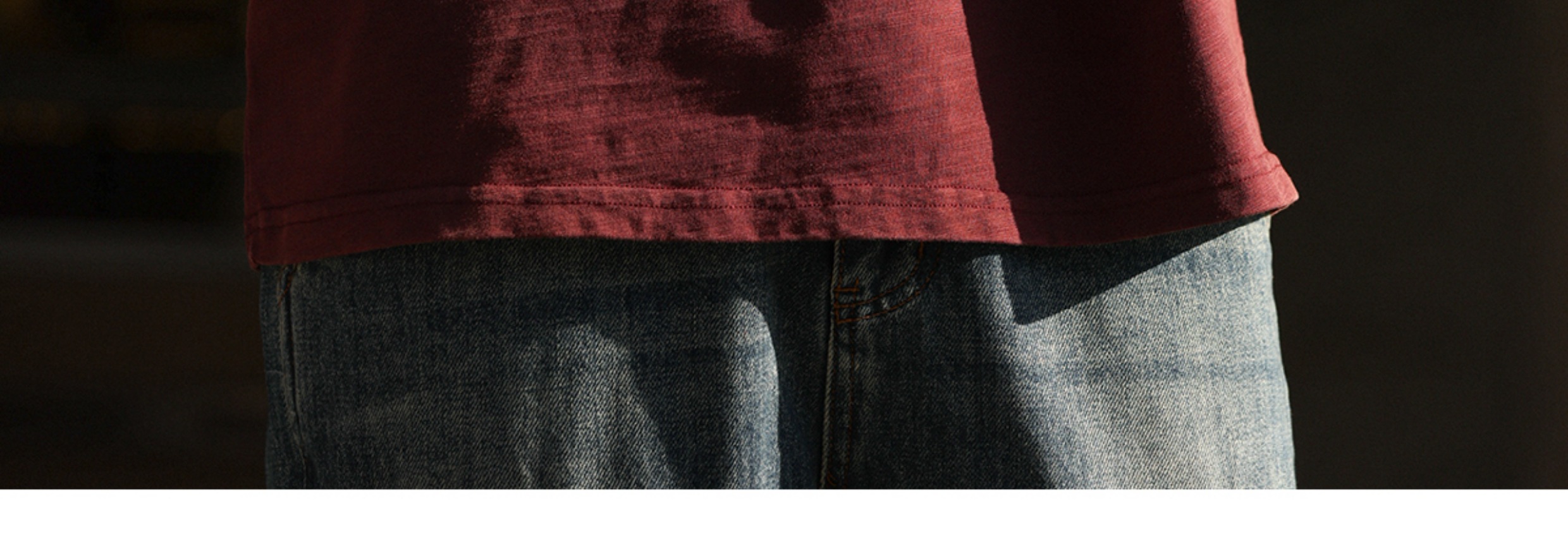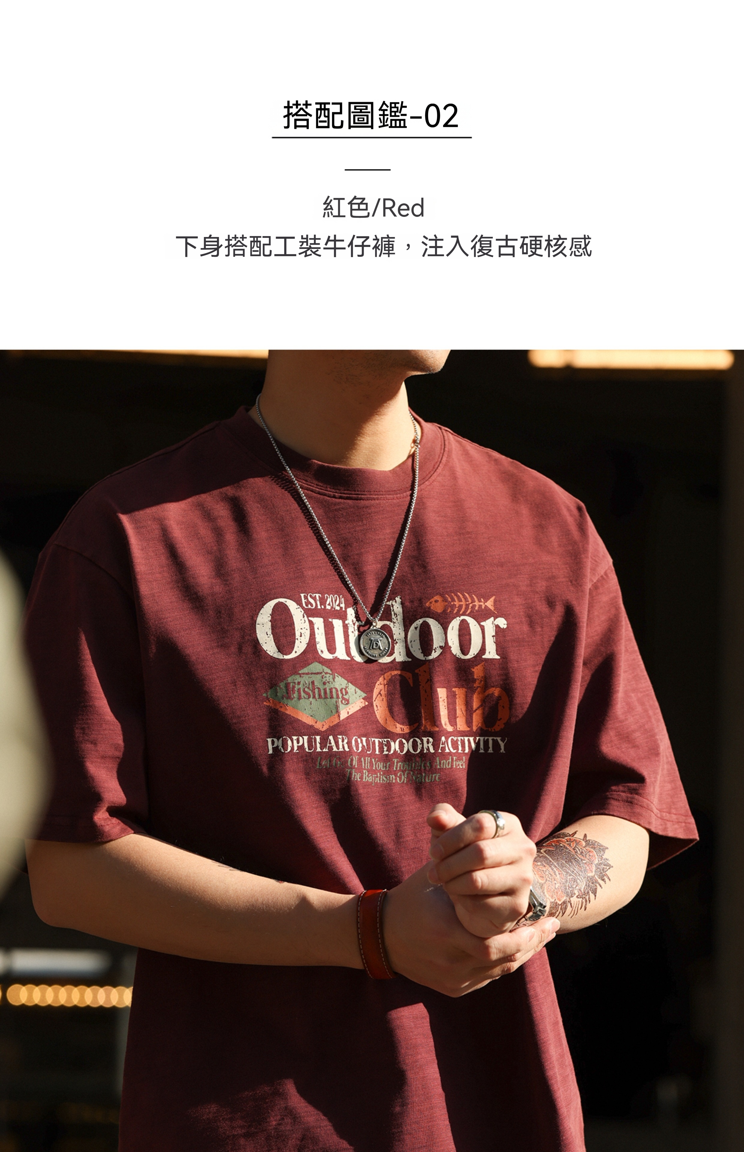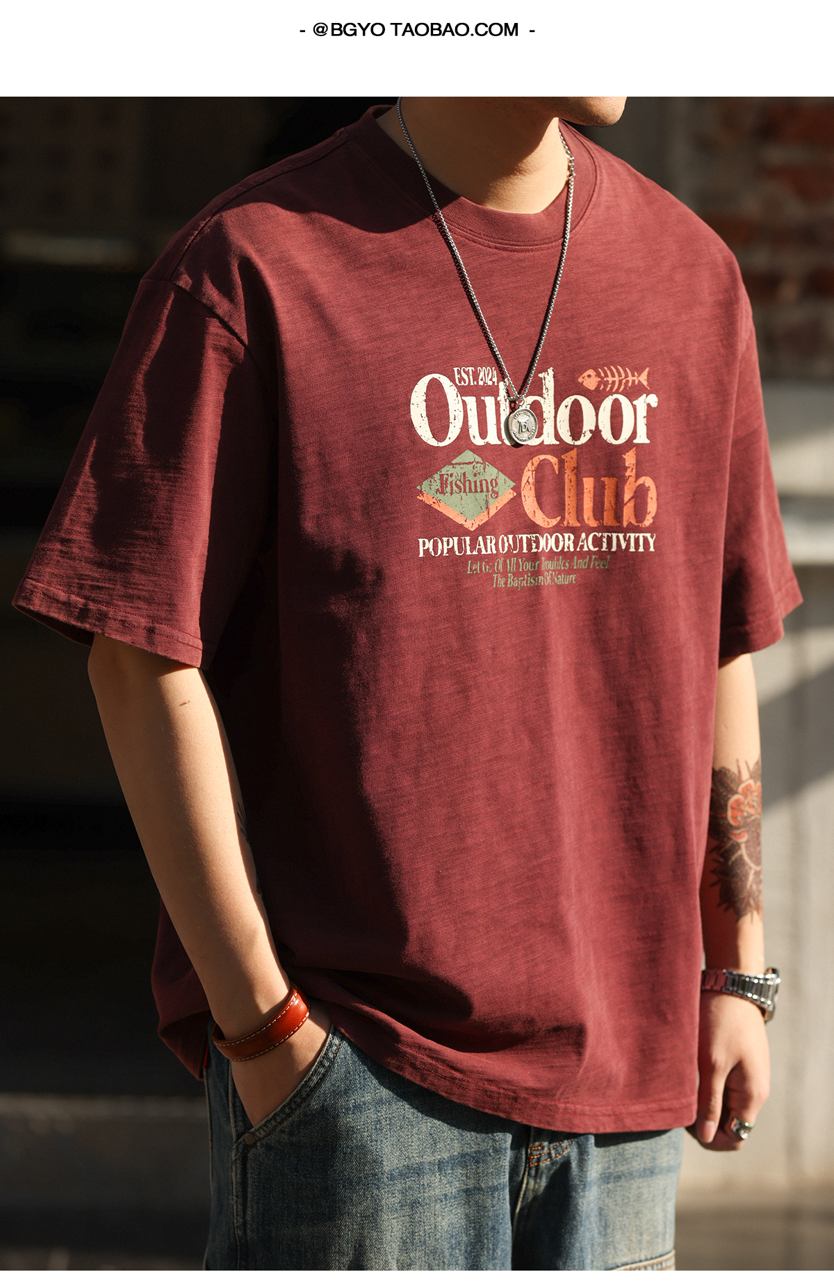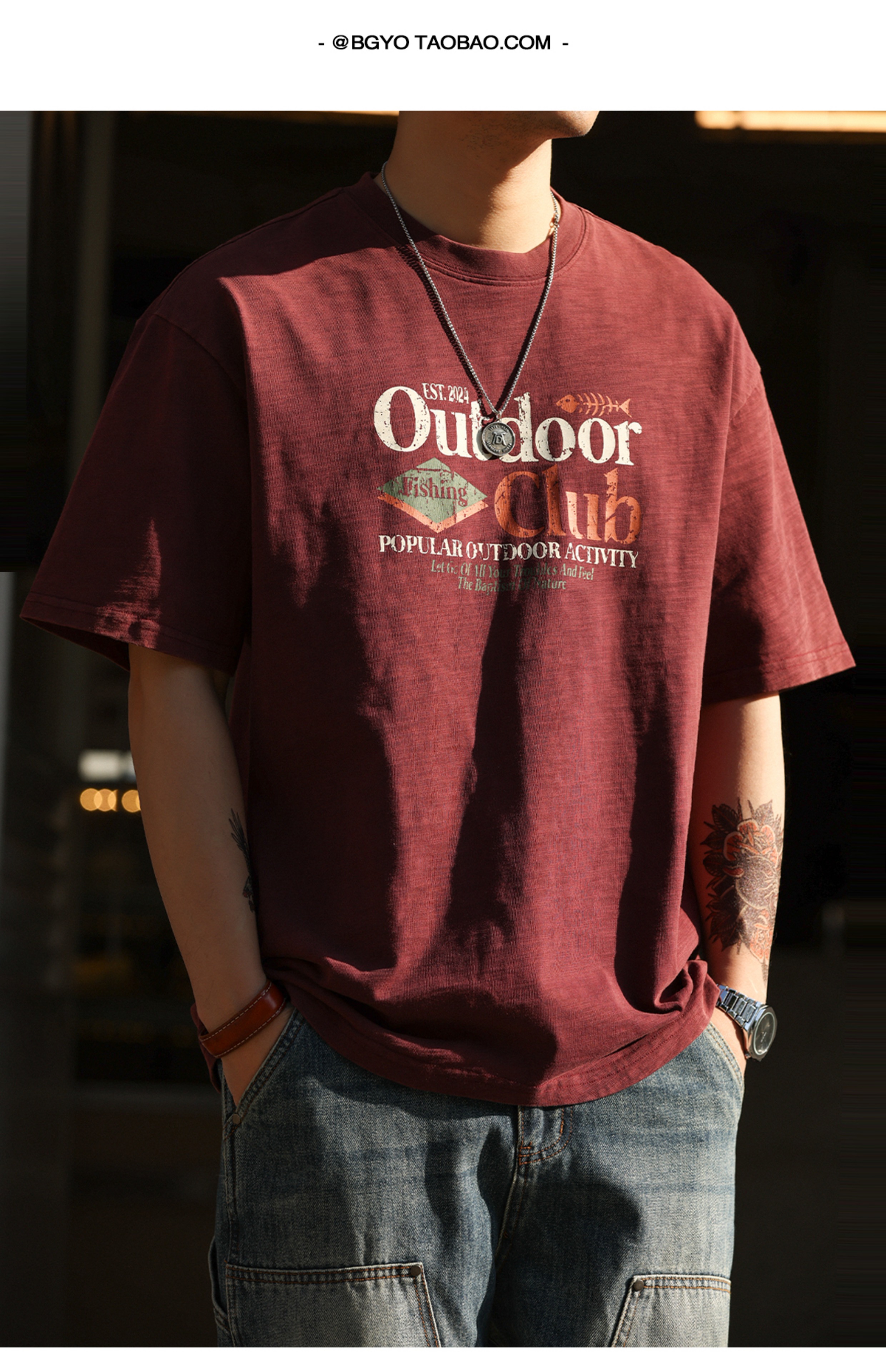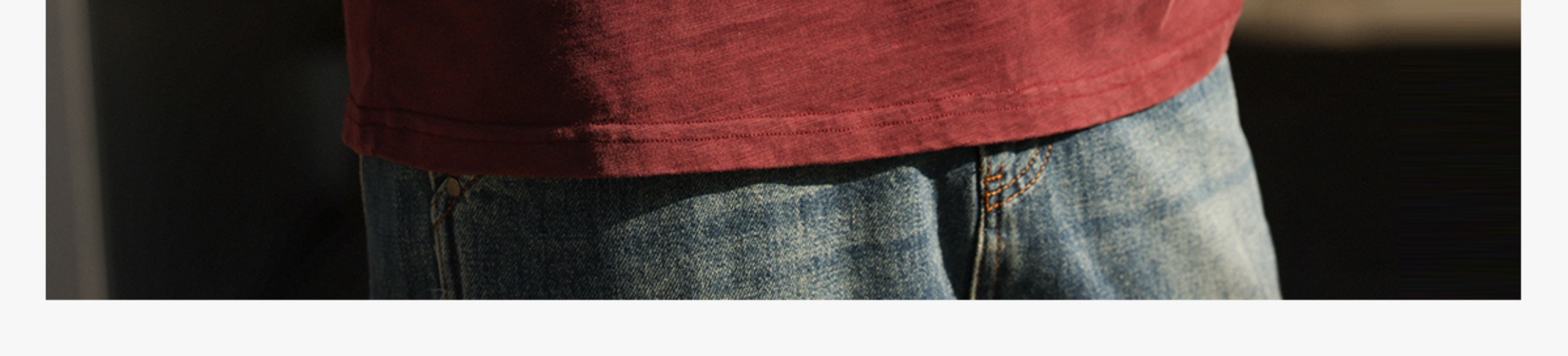 美式復古竹節棉圓領T恤男250g純棉圓領安可拉紅短袖TEE