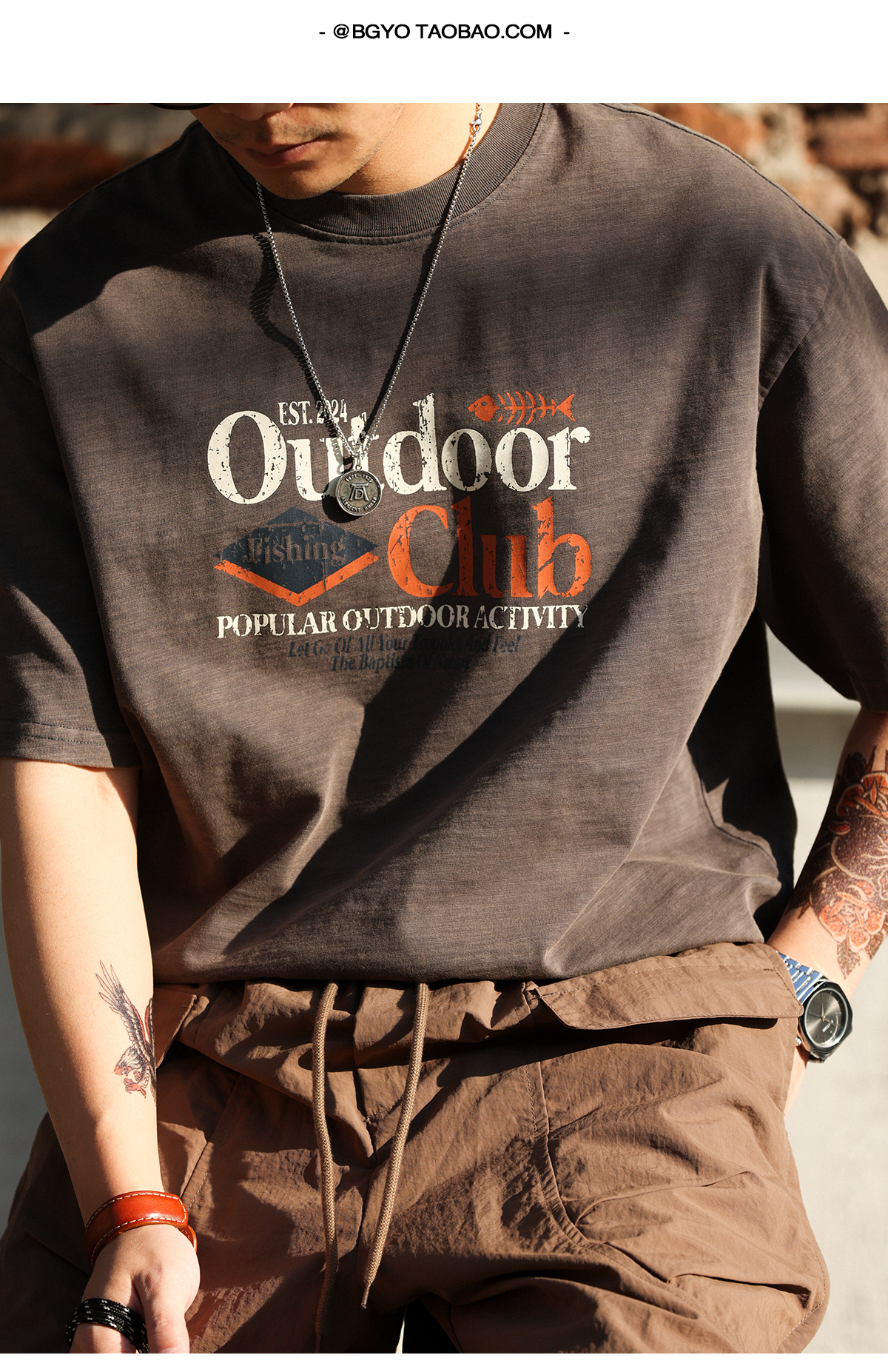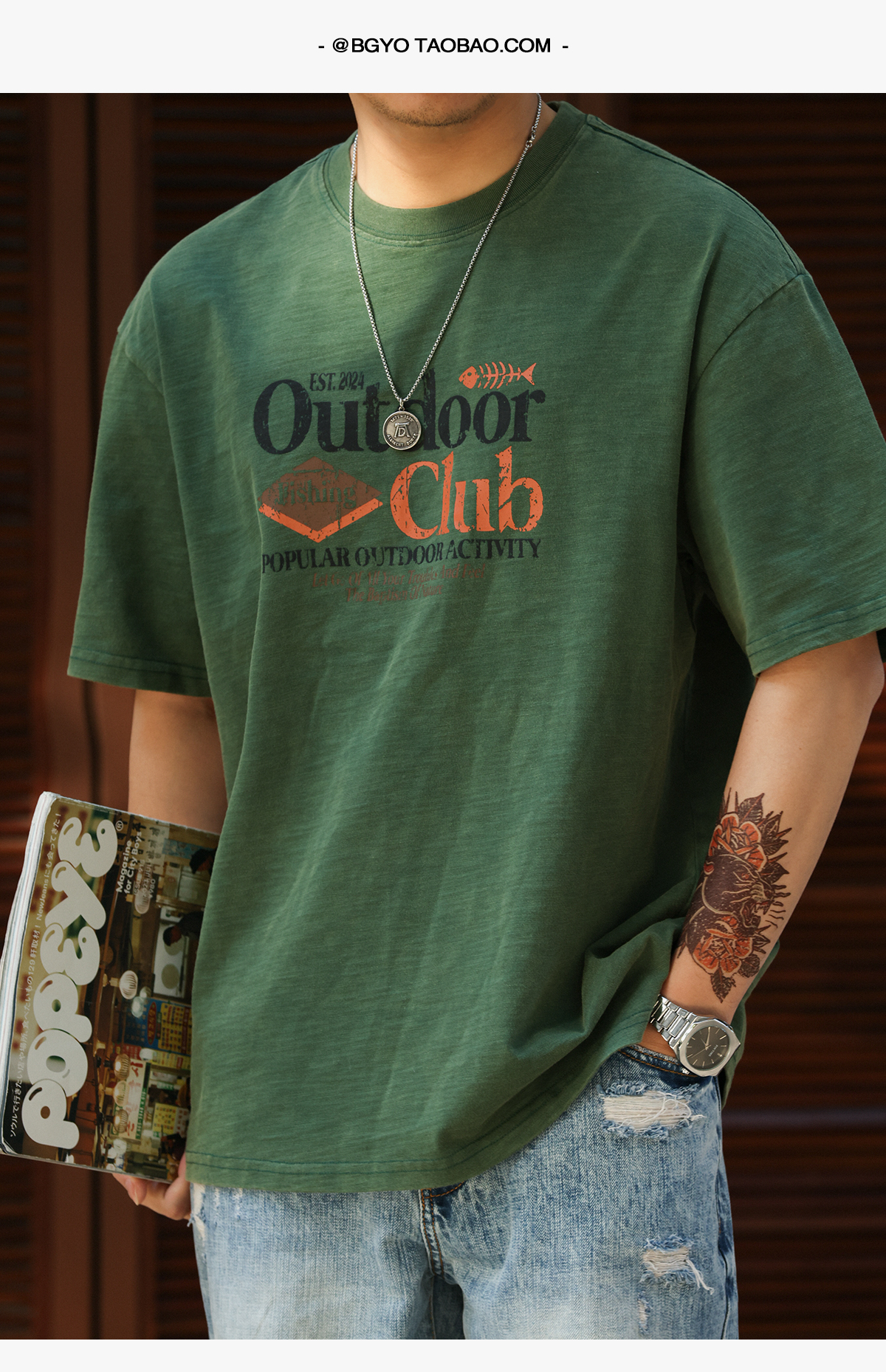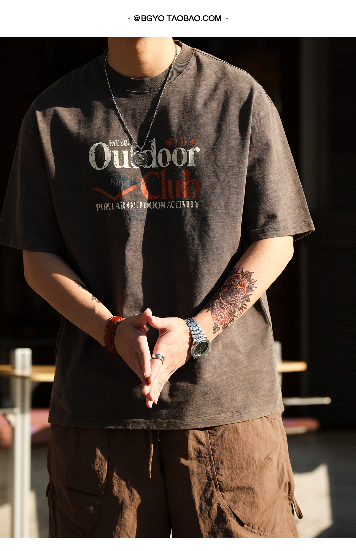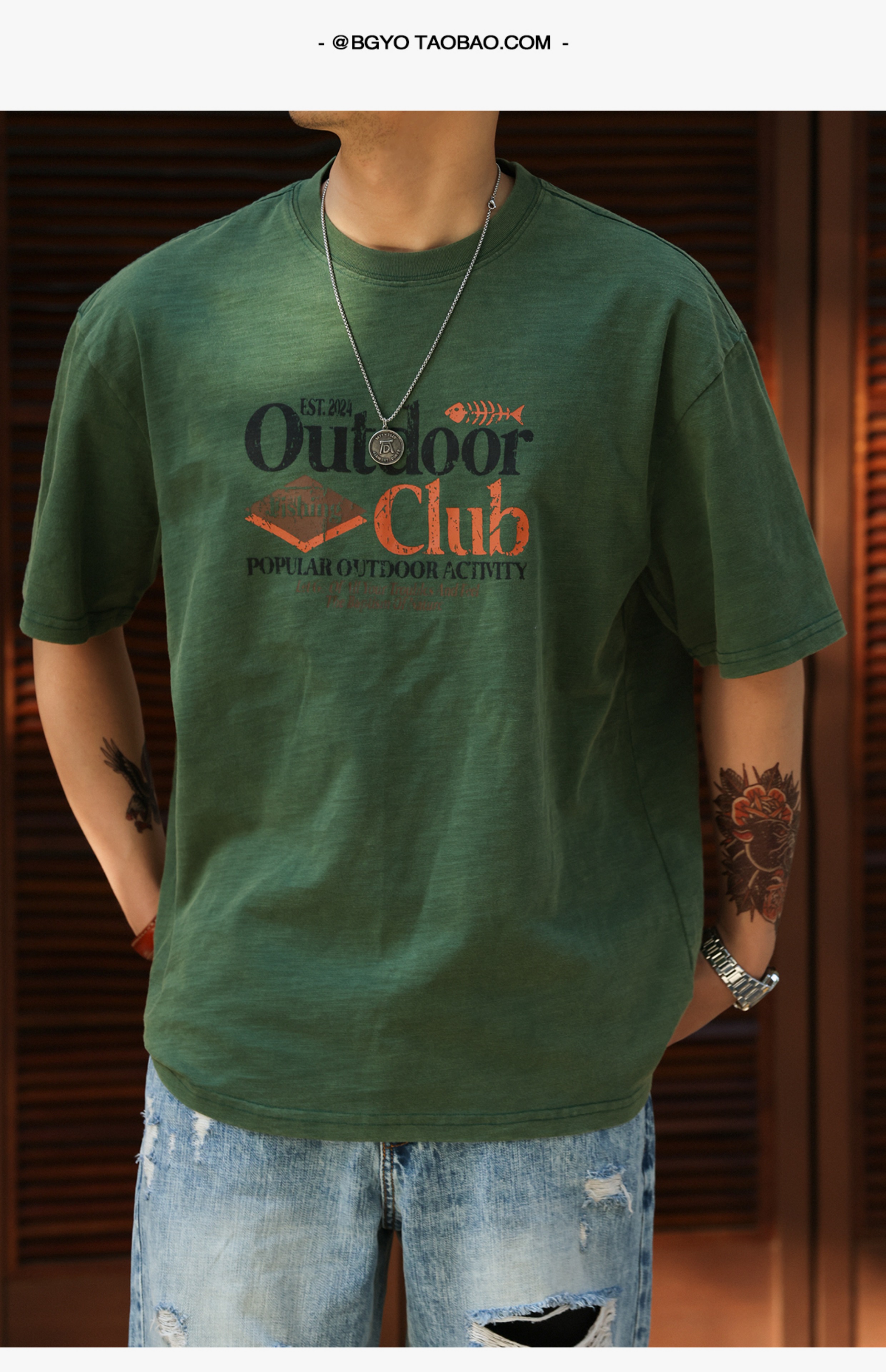 美式復古竹節棉圓領T恤男250g純棉圓領安可拉紅短袖TEE