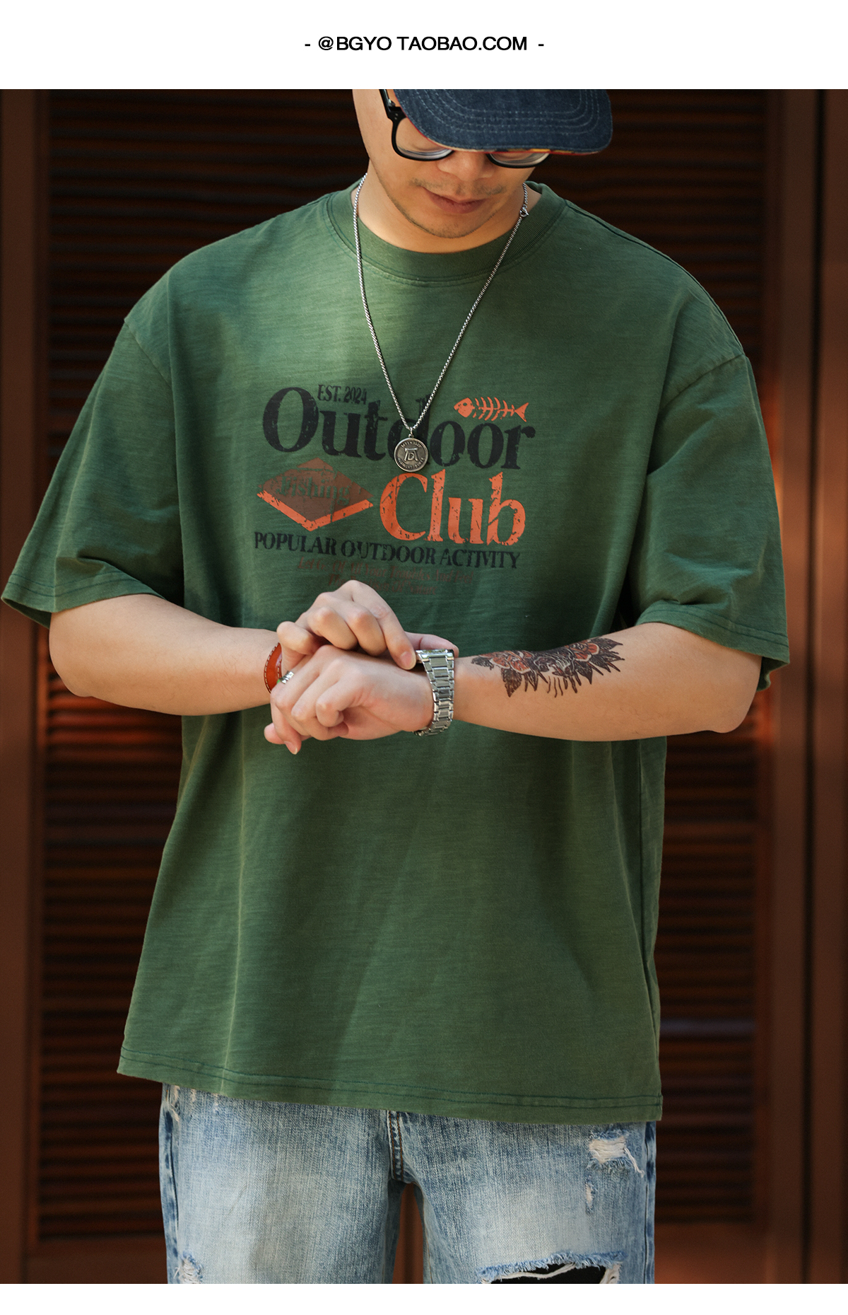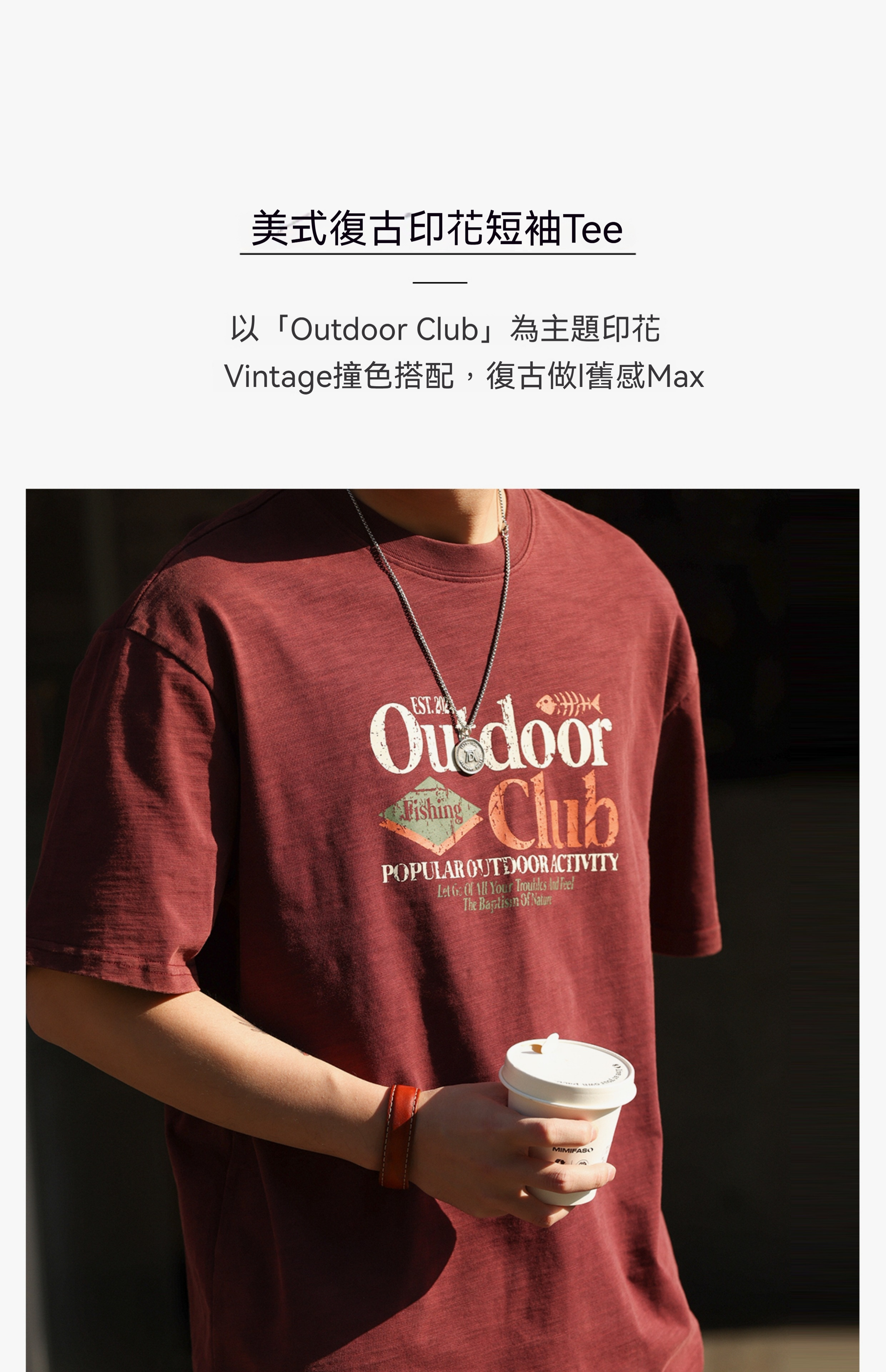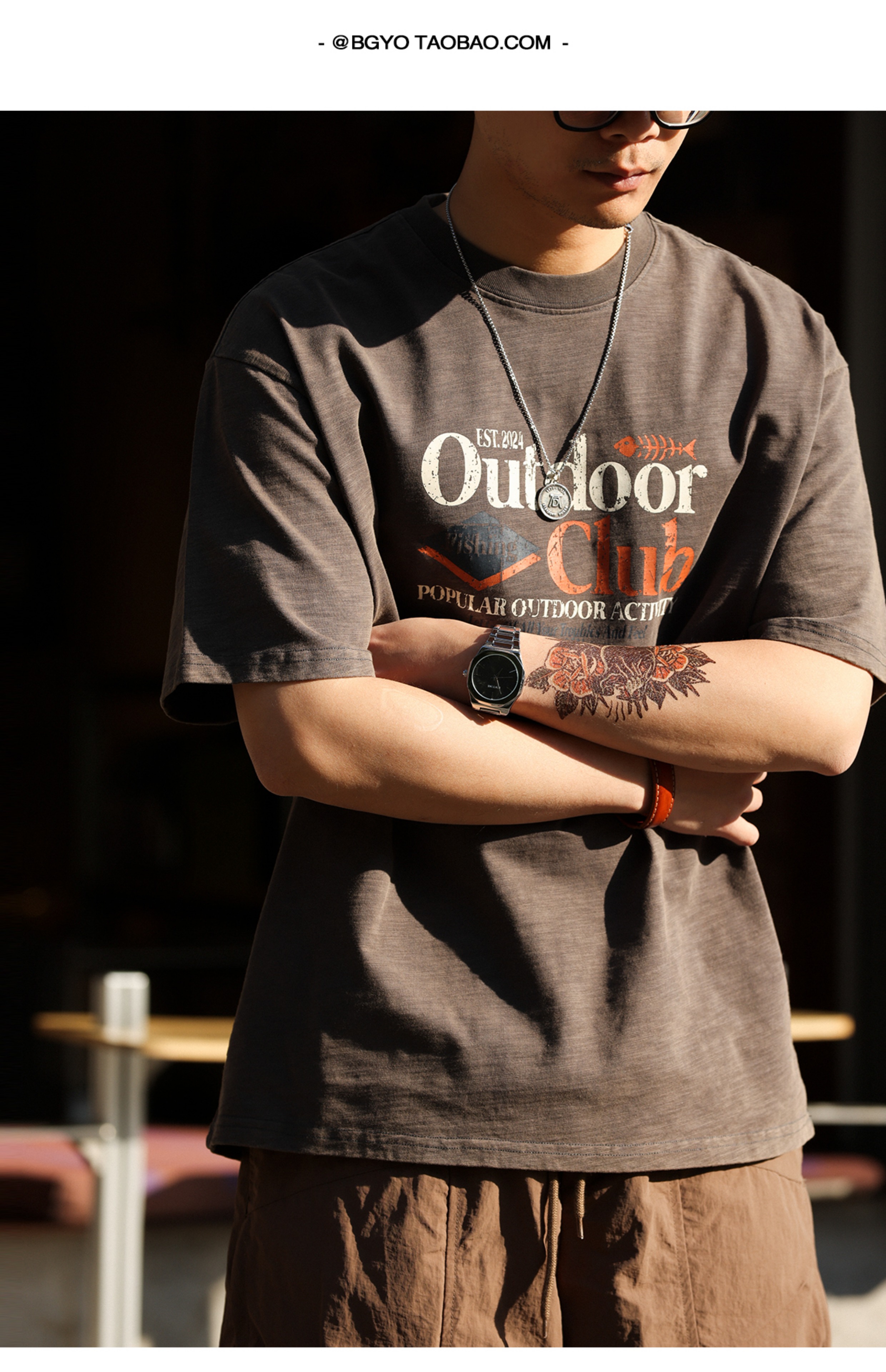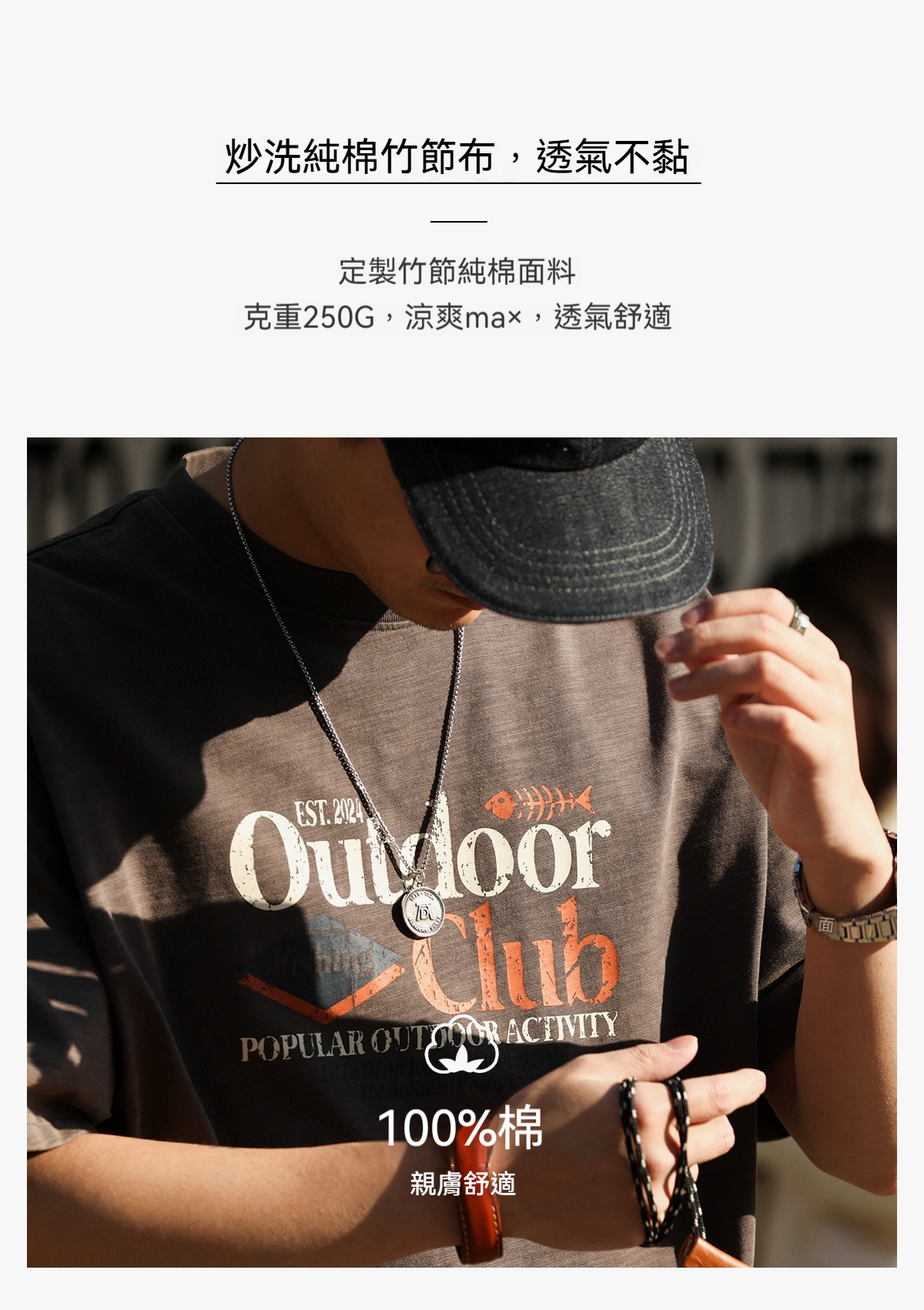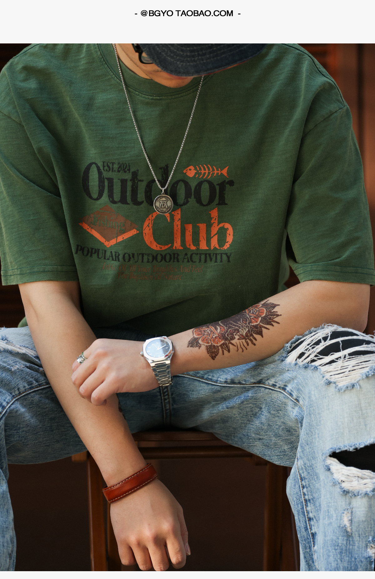 美式復古竹節棉圓領T恤男250g純棉圓領安可拉紅短袖TEE