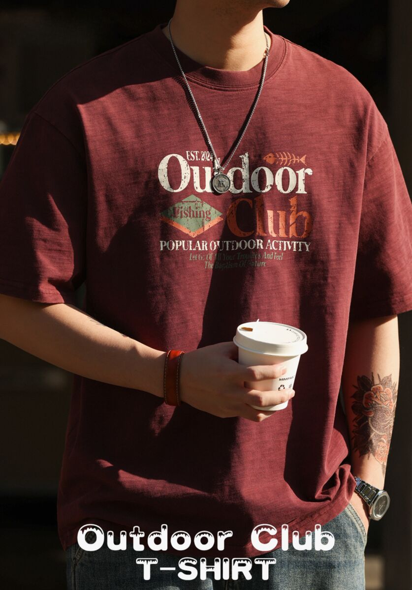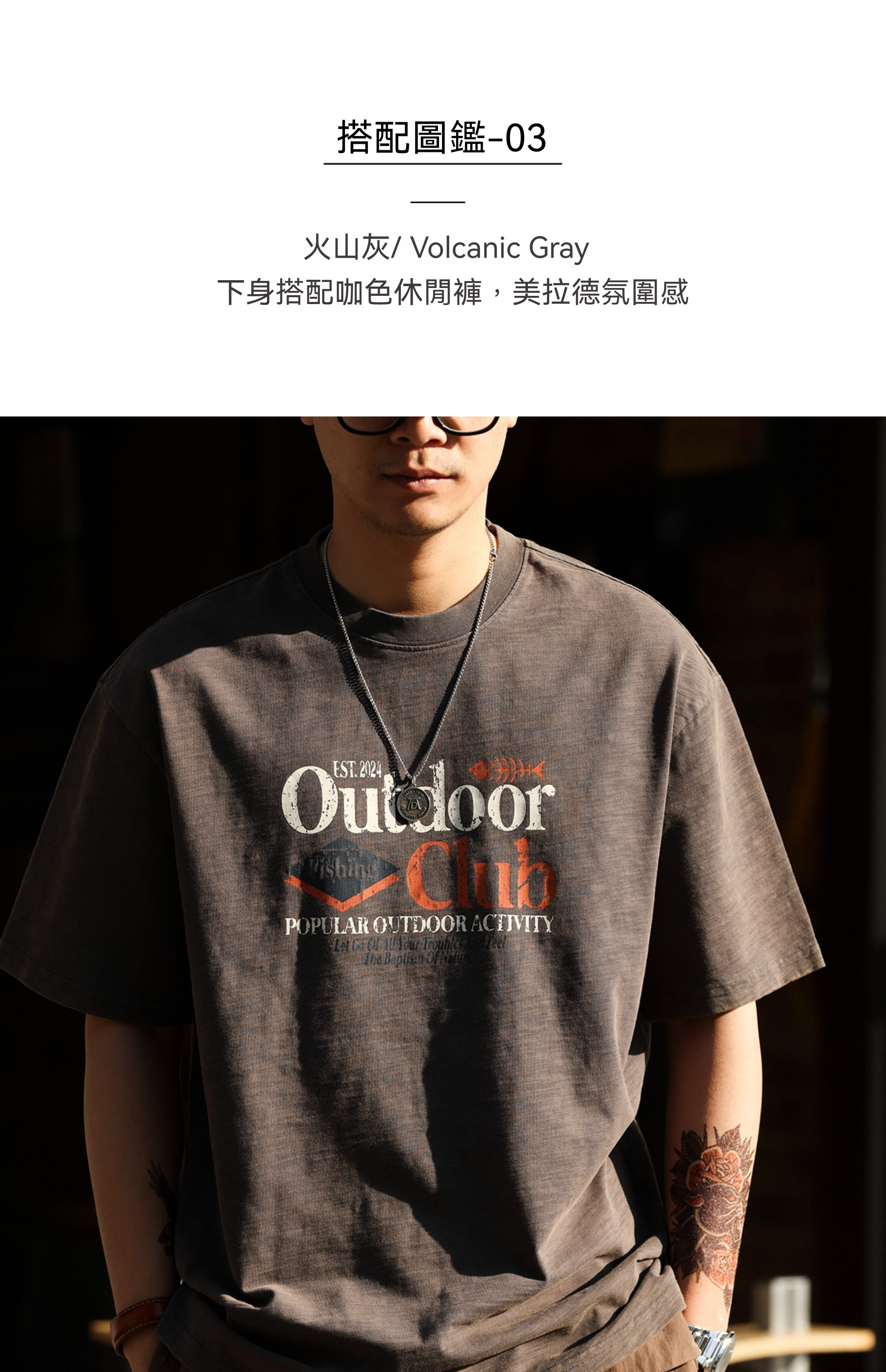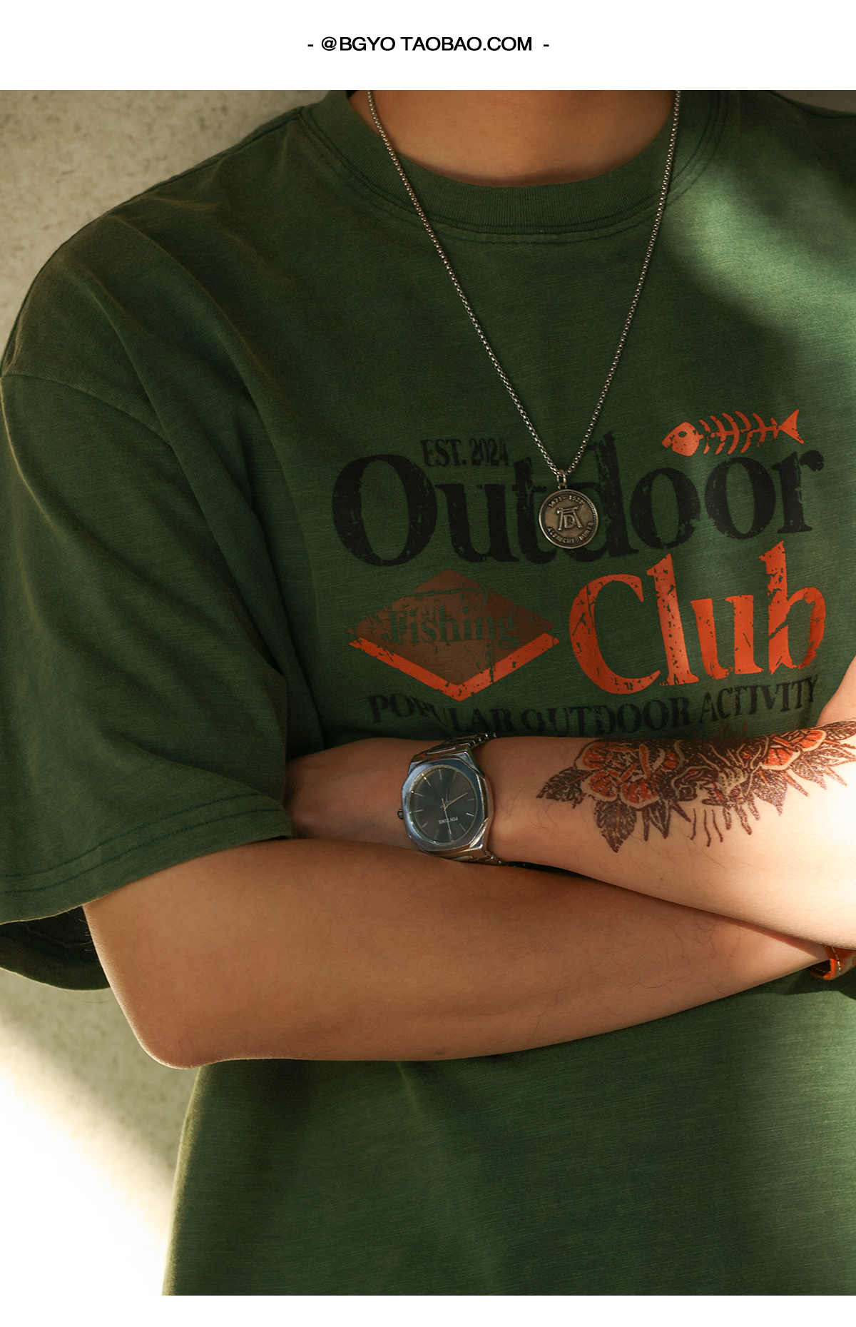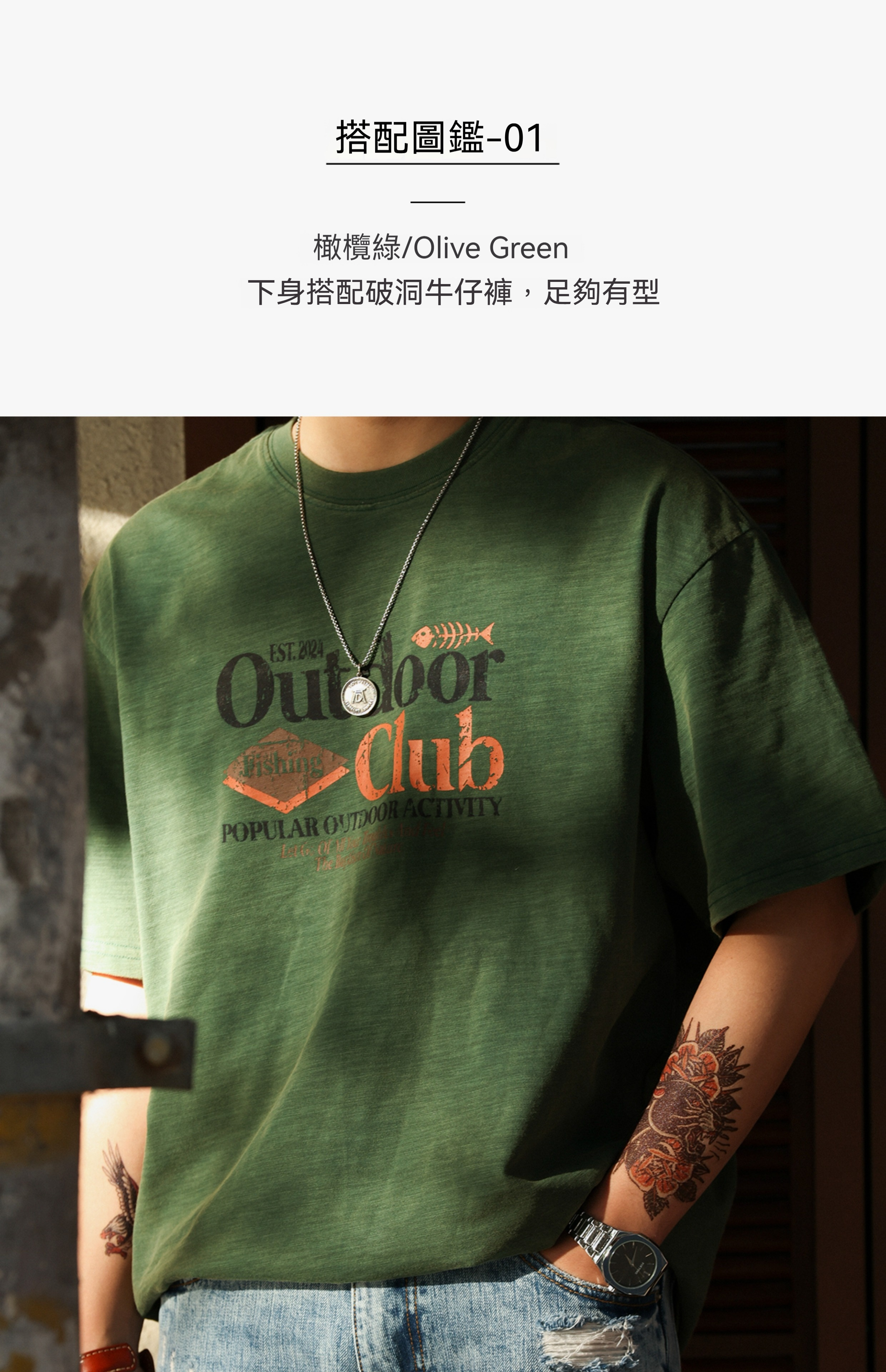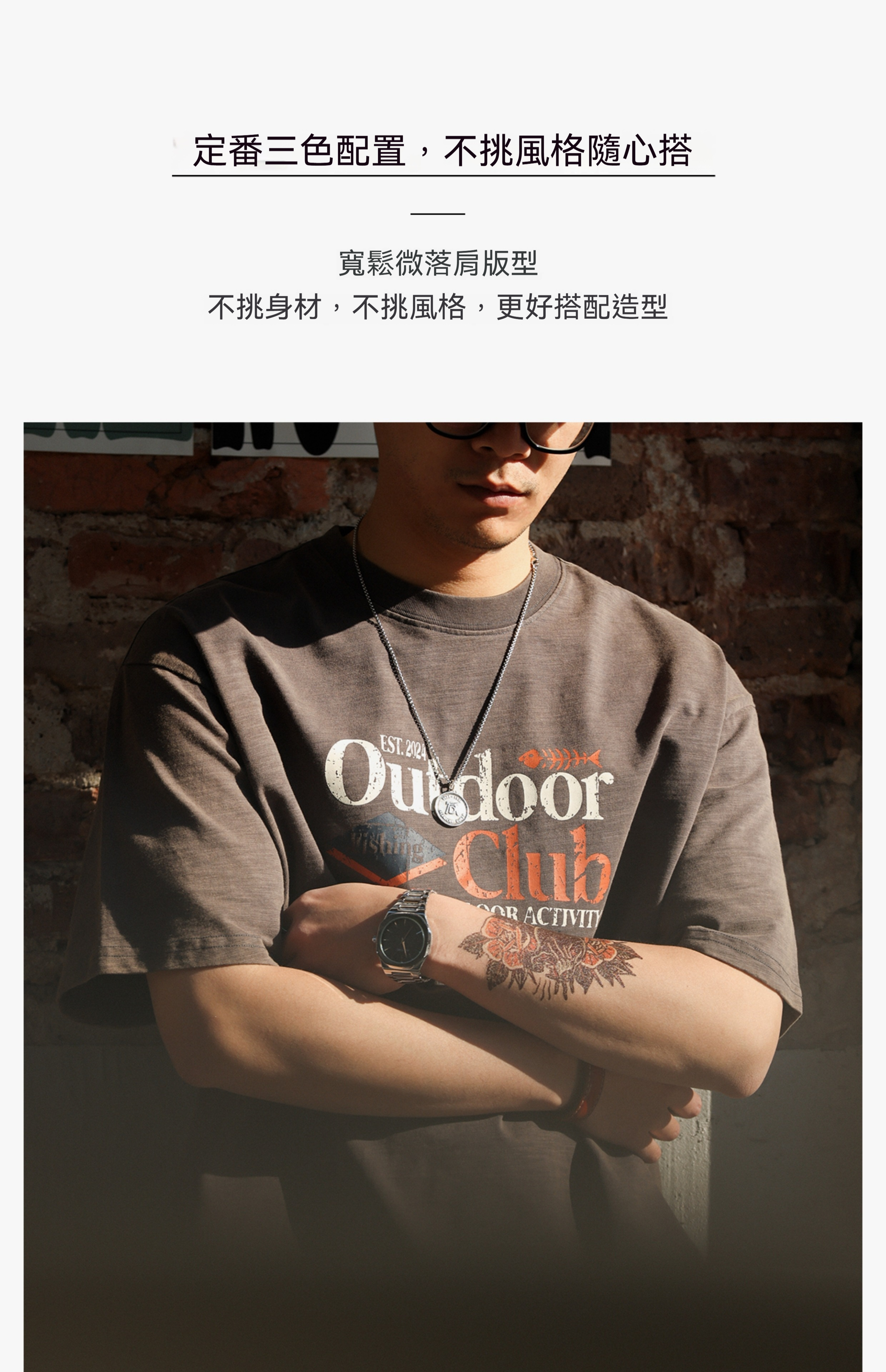 美式復古竹節棉圓領T恤男250g純棉圓領安可拉紅短袖TEE