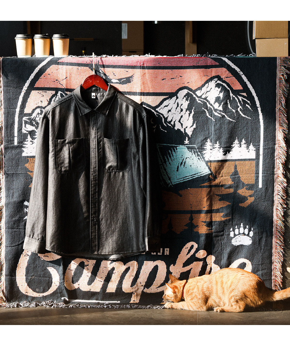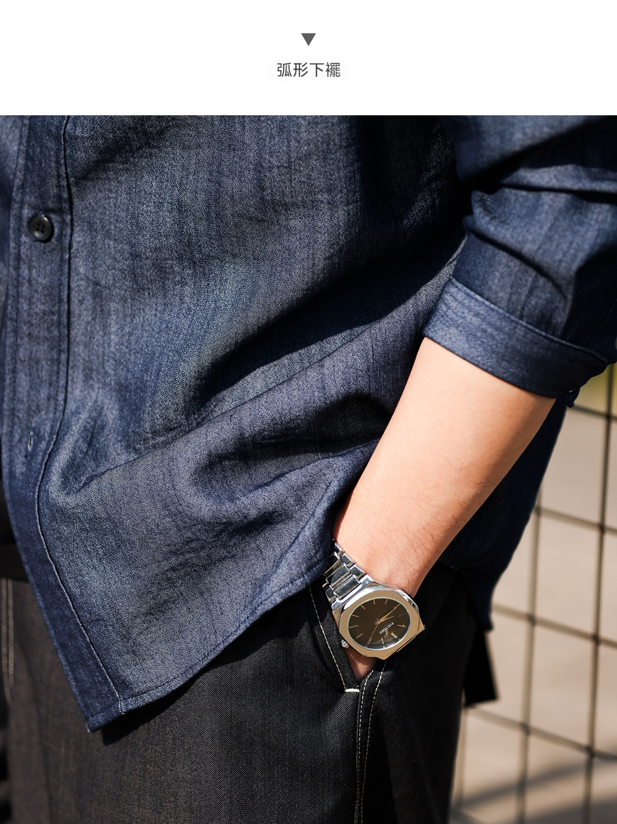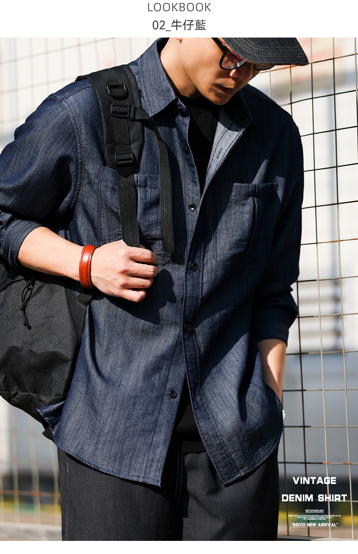 美式復古肌理感仿牛仔長袖襯衫男寬鬆Vintage疊穿襯衣春
