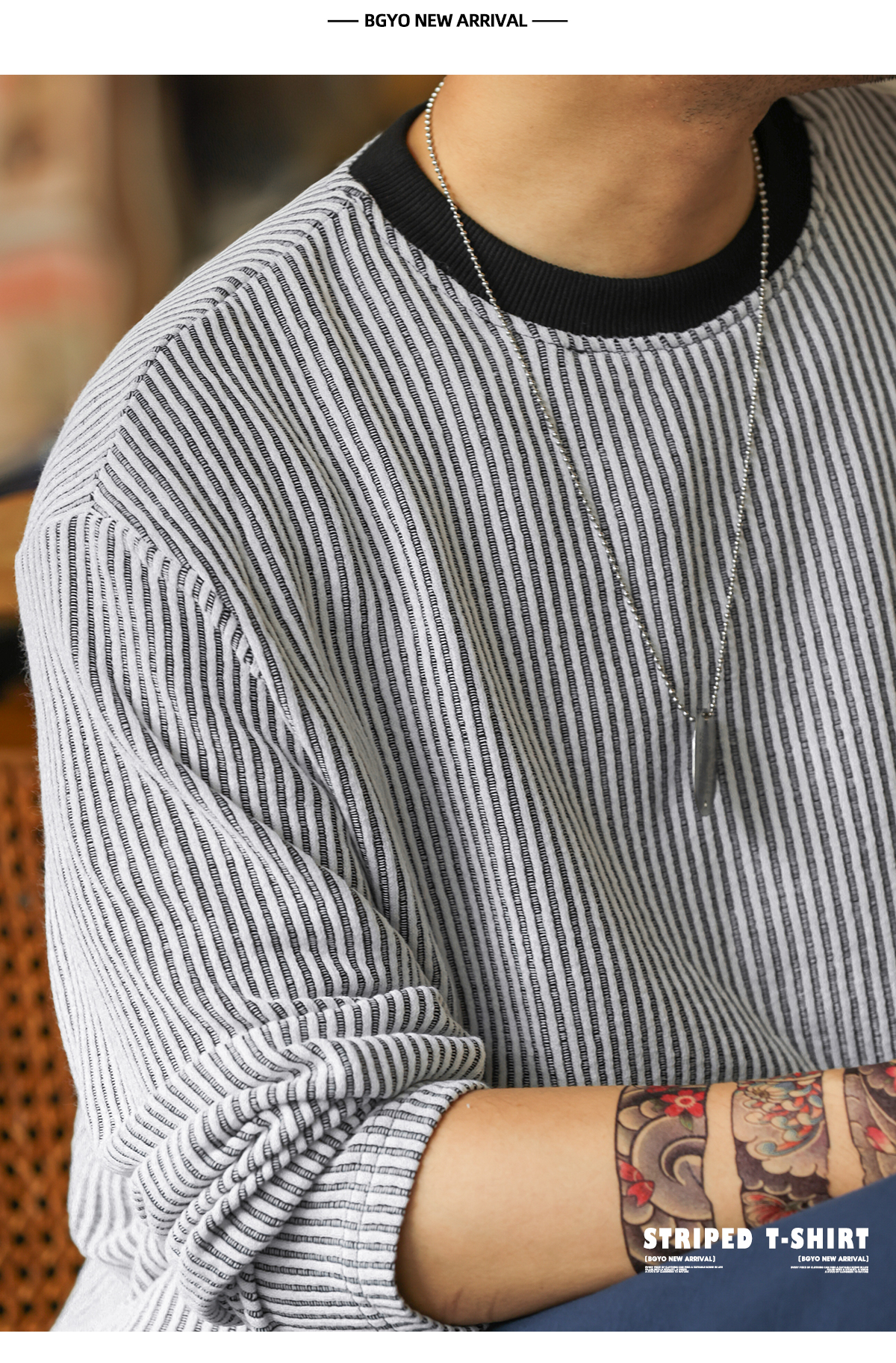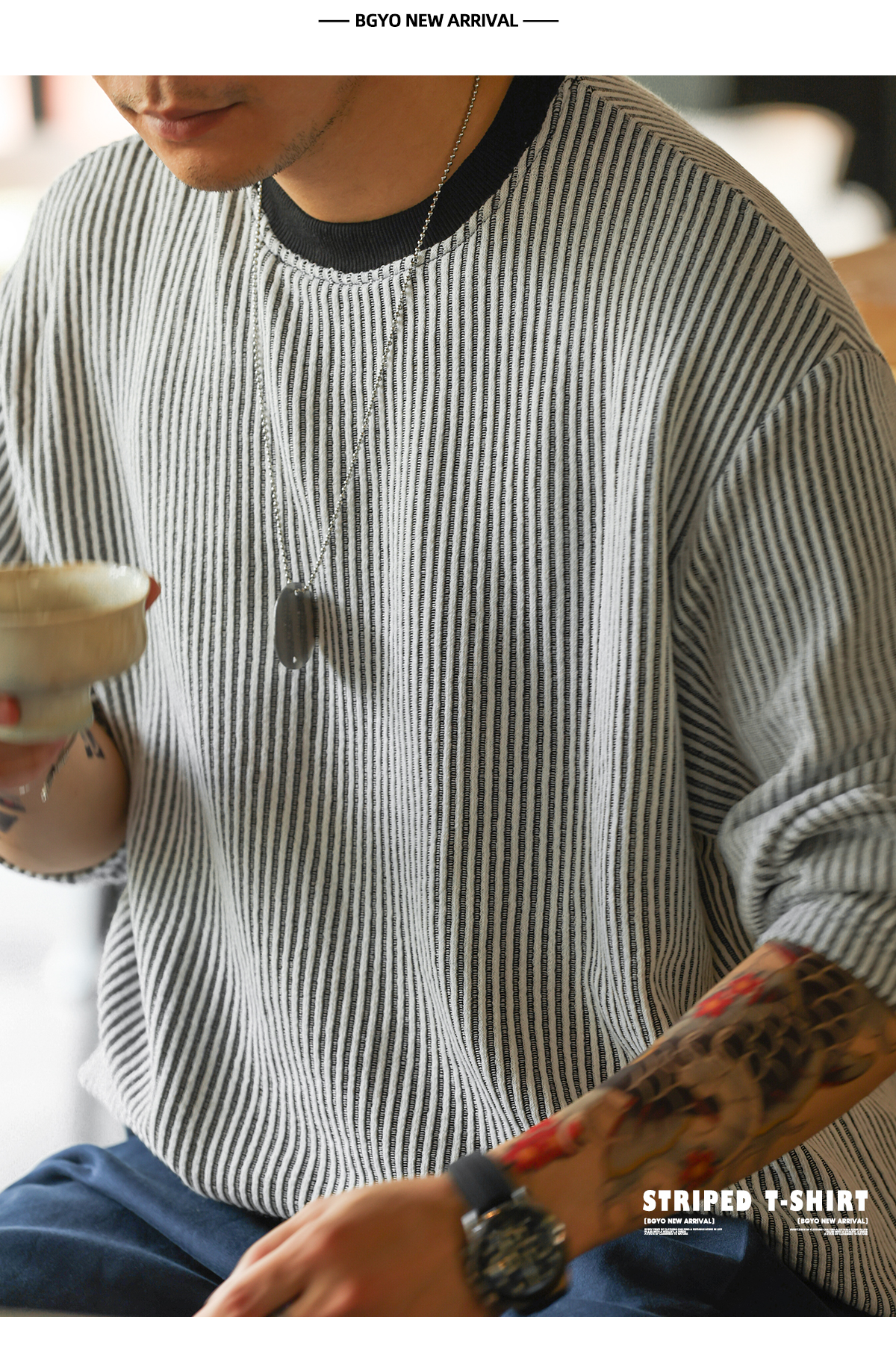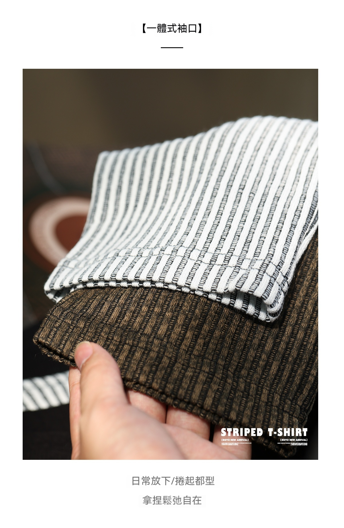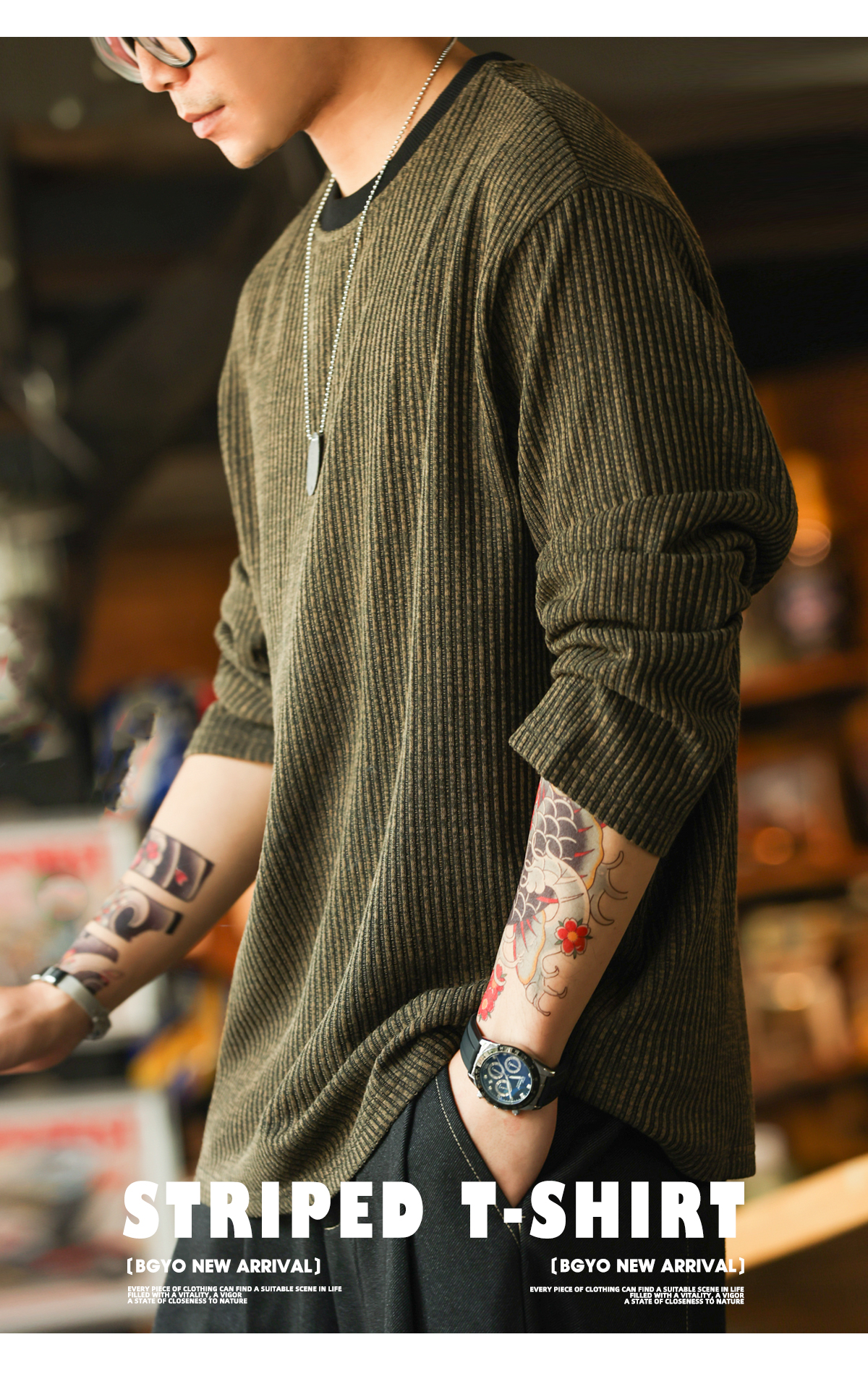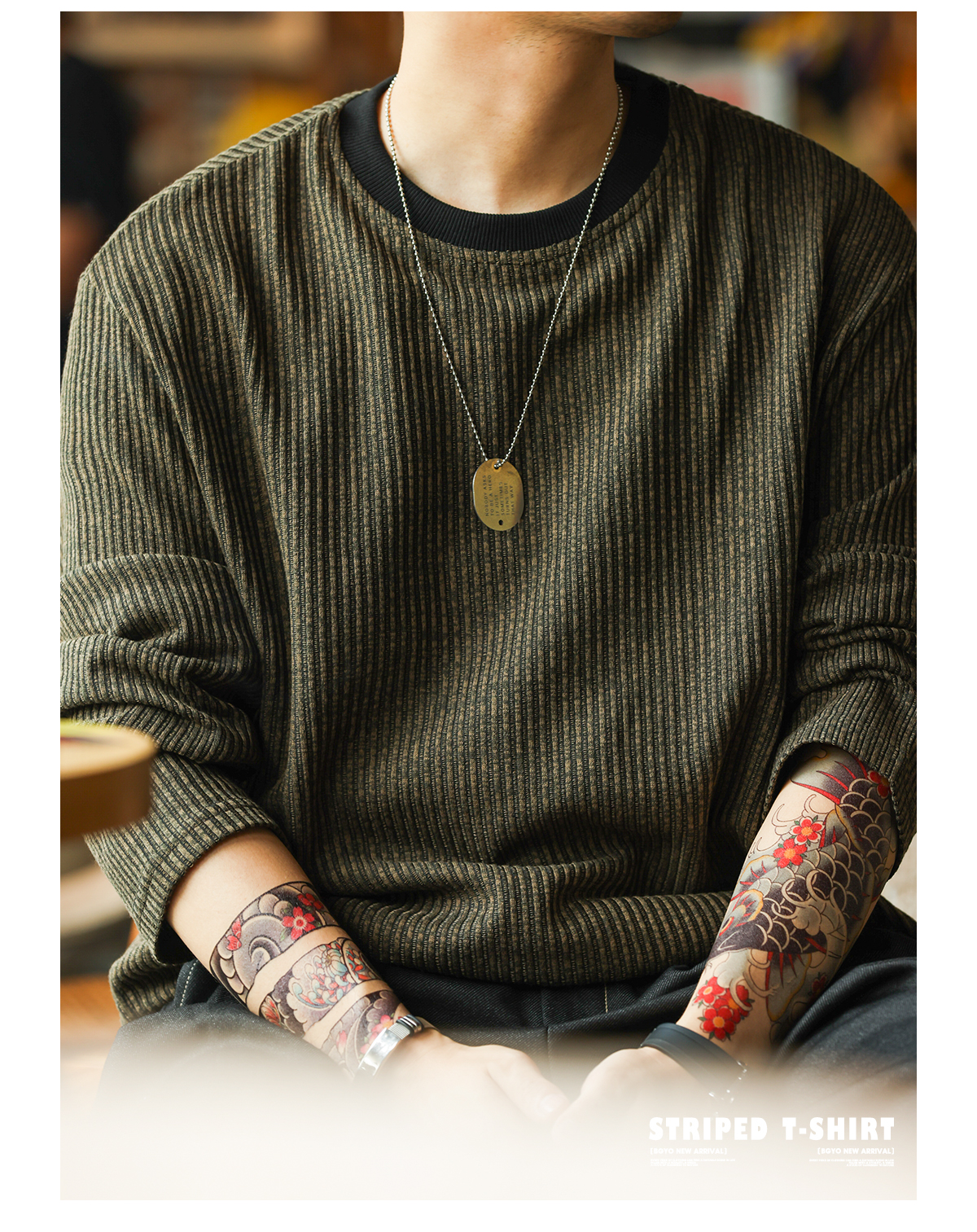 美式復古豎坑條肌理長袖T恤男撞色圓領慵懶感休閒上衣秋