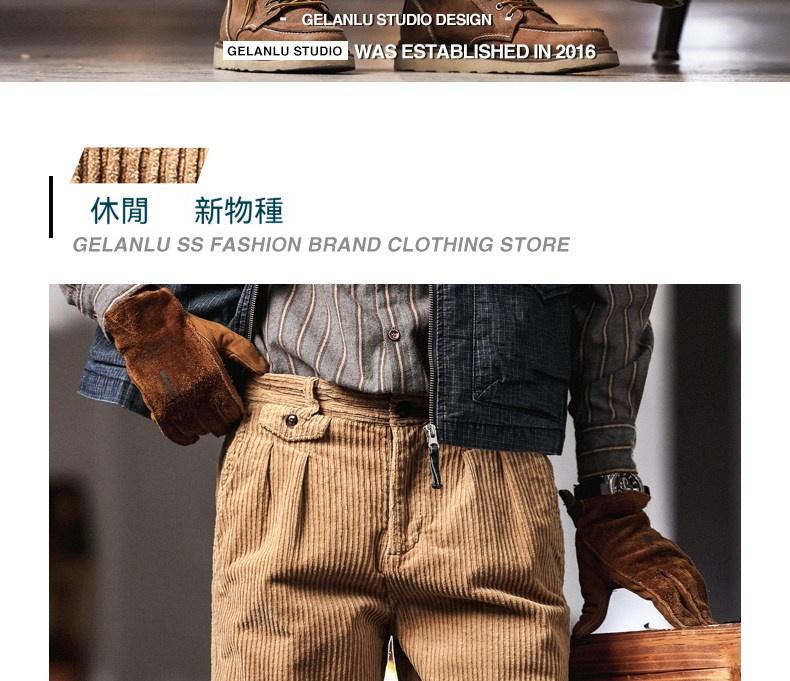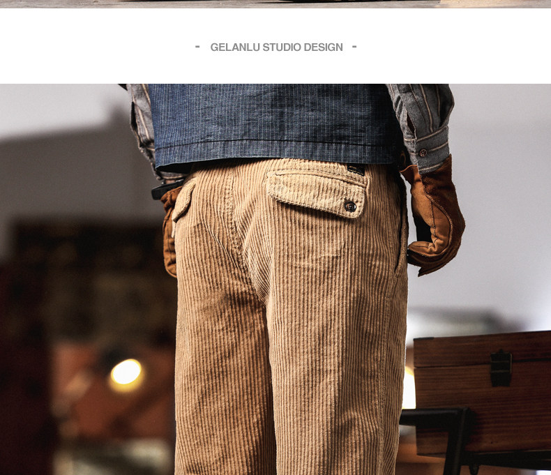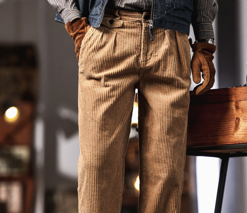 美式復古重磅燈芯絨休閒褲男秋季潮牌寬鬆直筒工裝休閒褲子