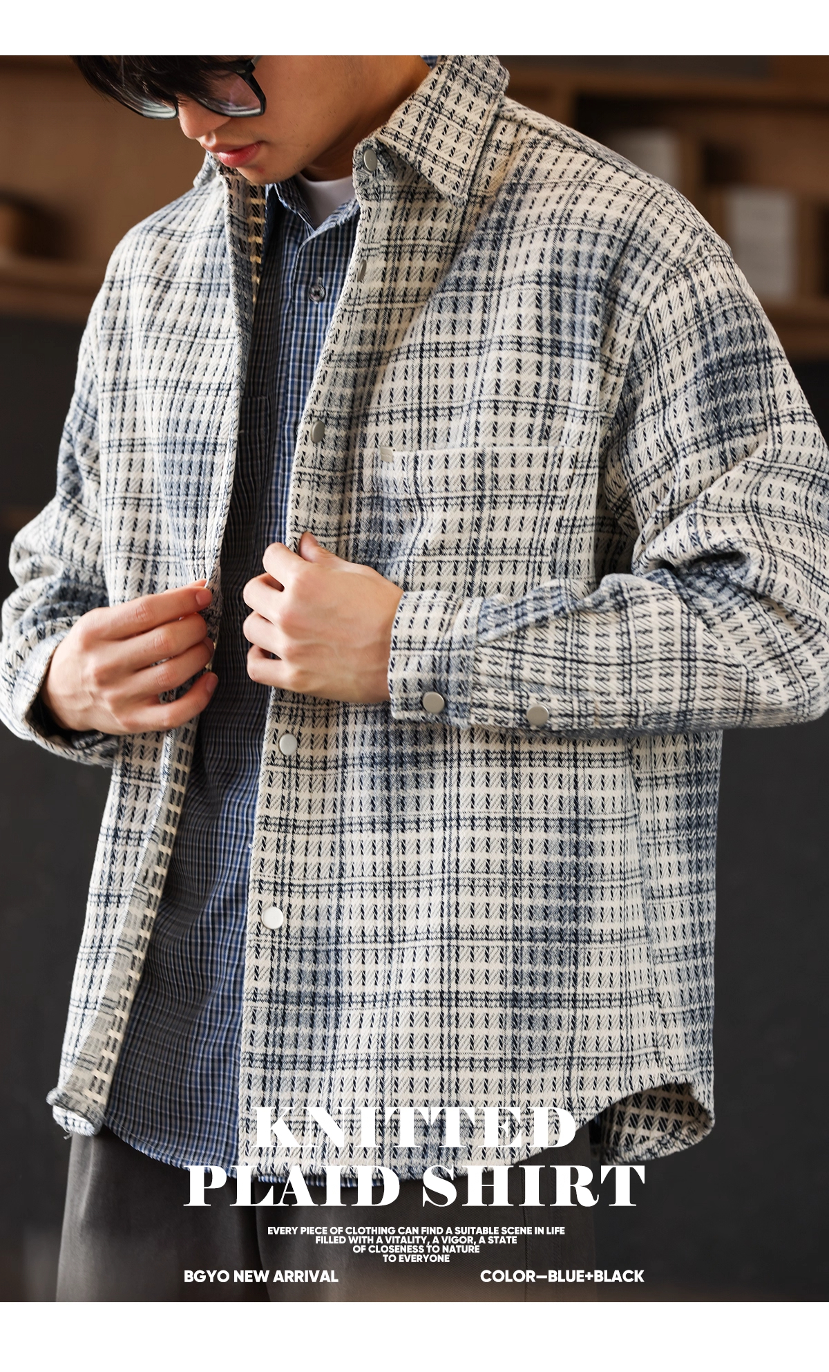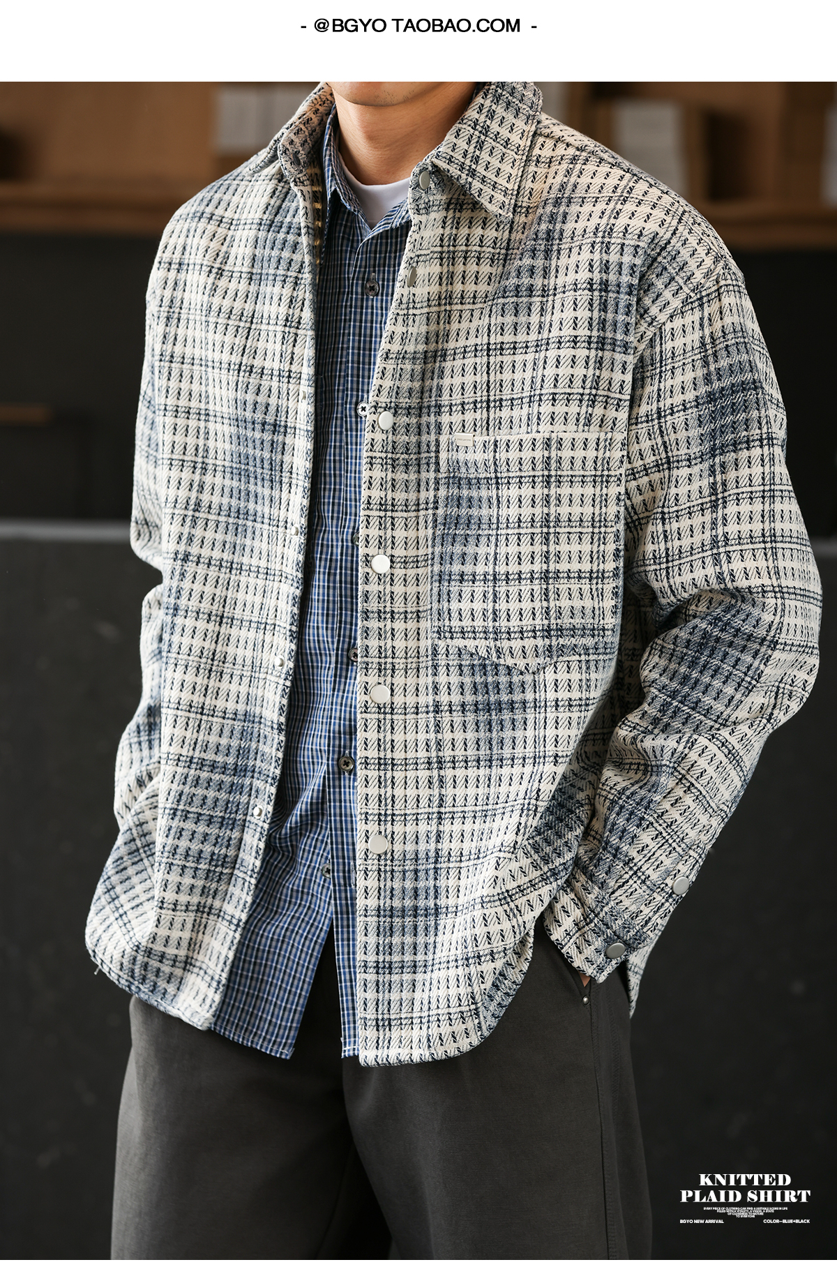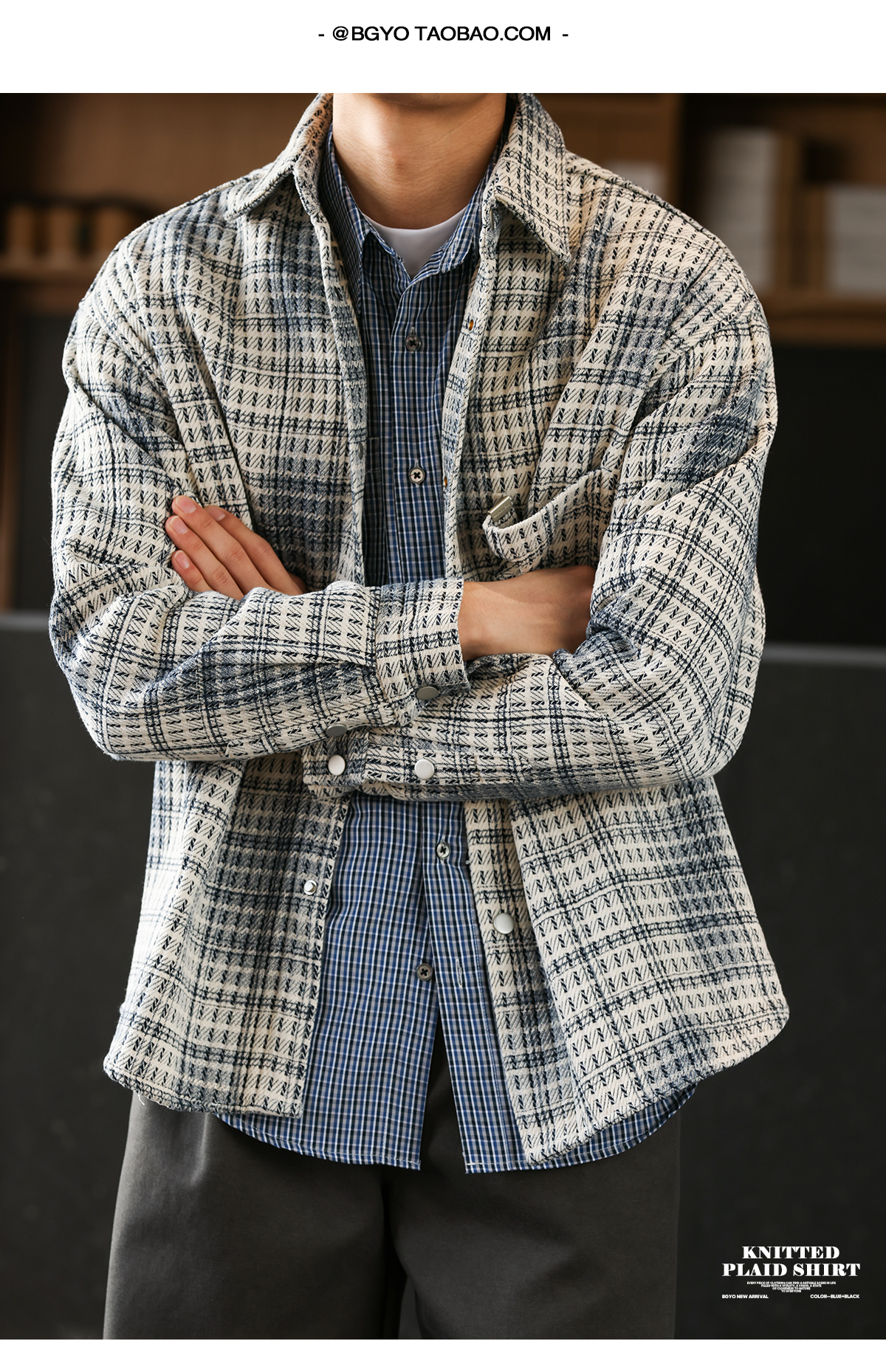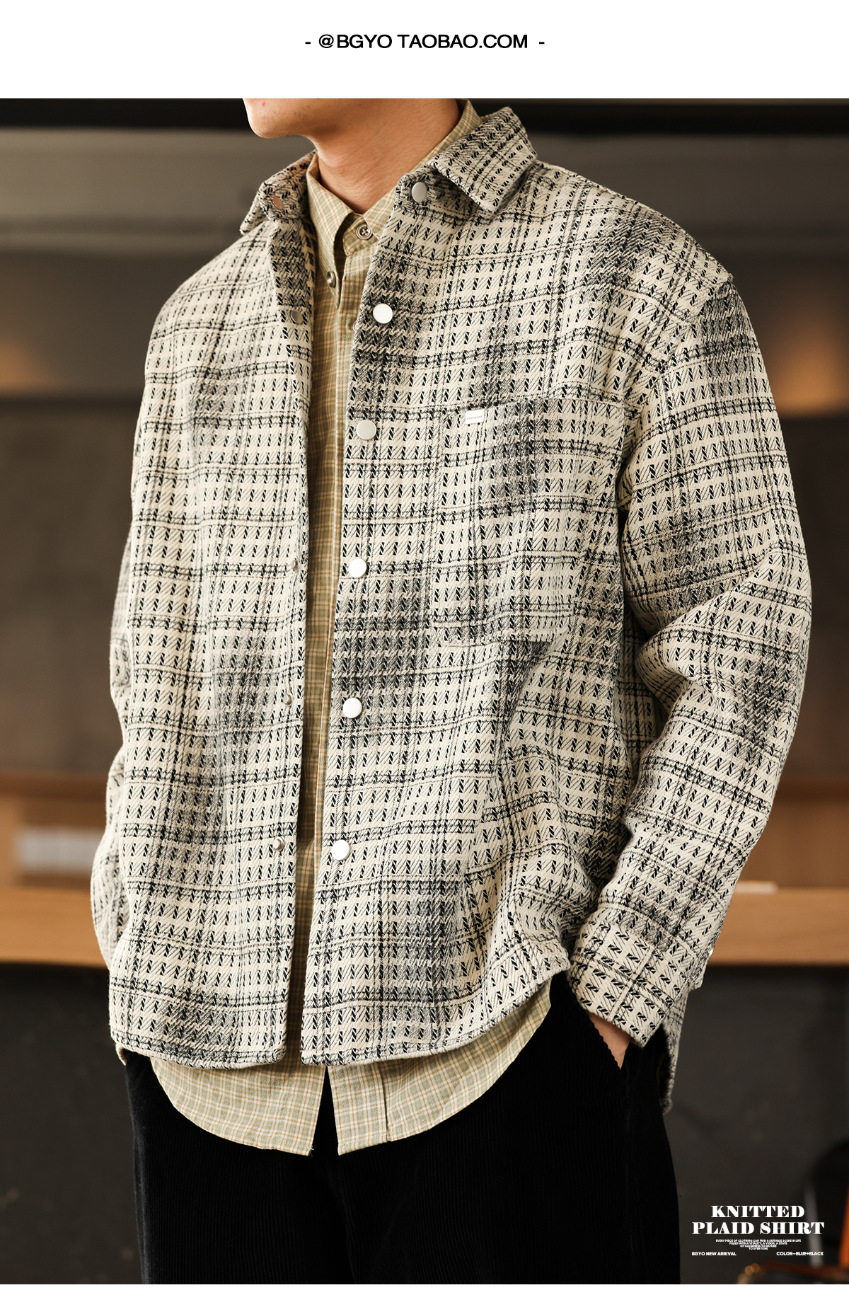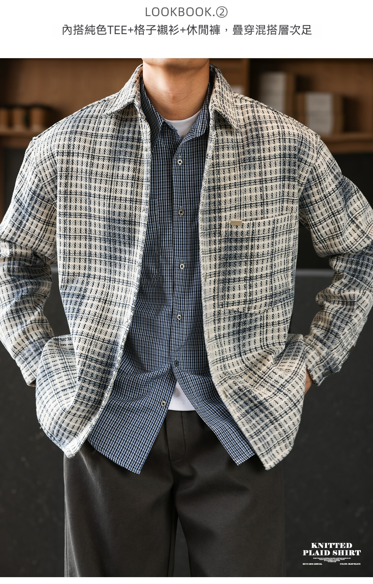 美式復古雙色格紋襯衣夾克男廊型加厚重磅休閒襯衫外套