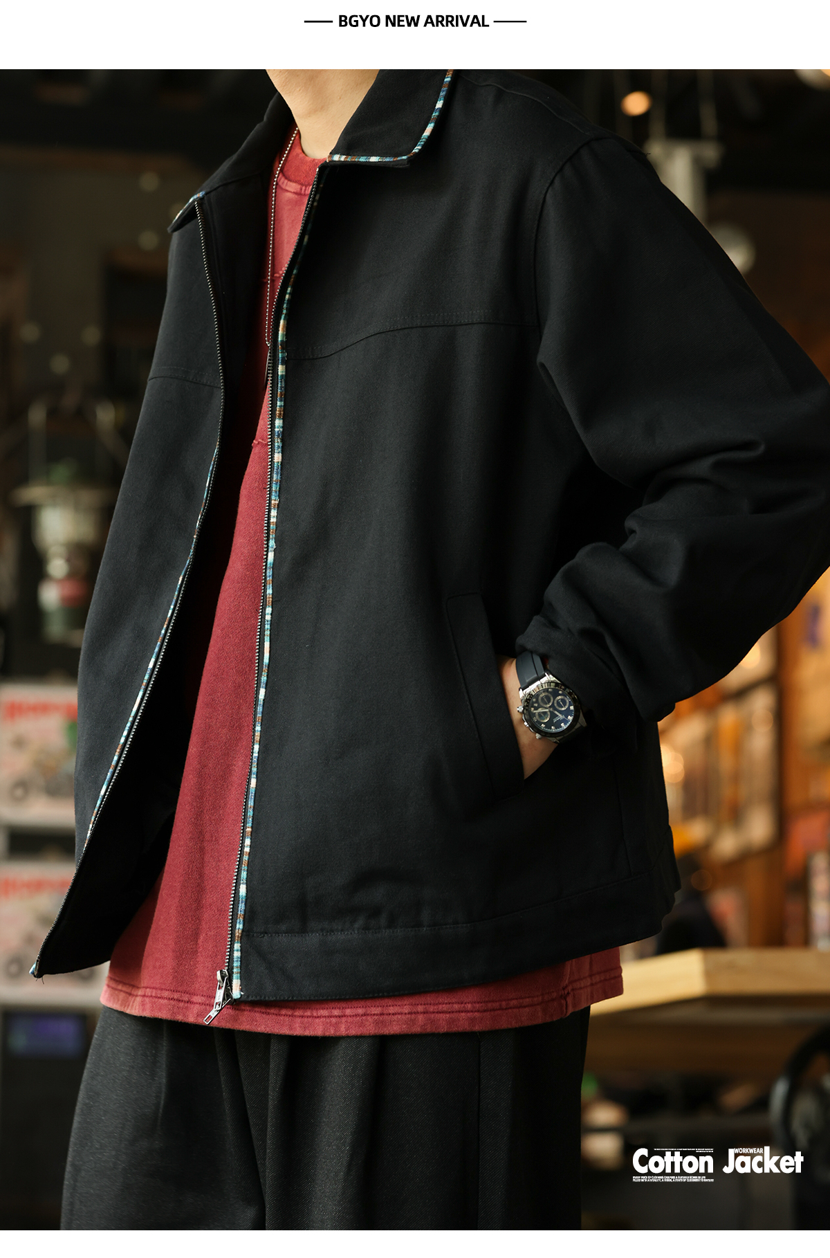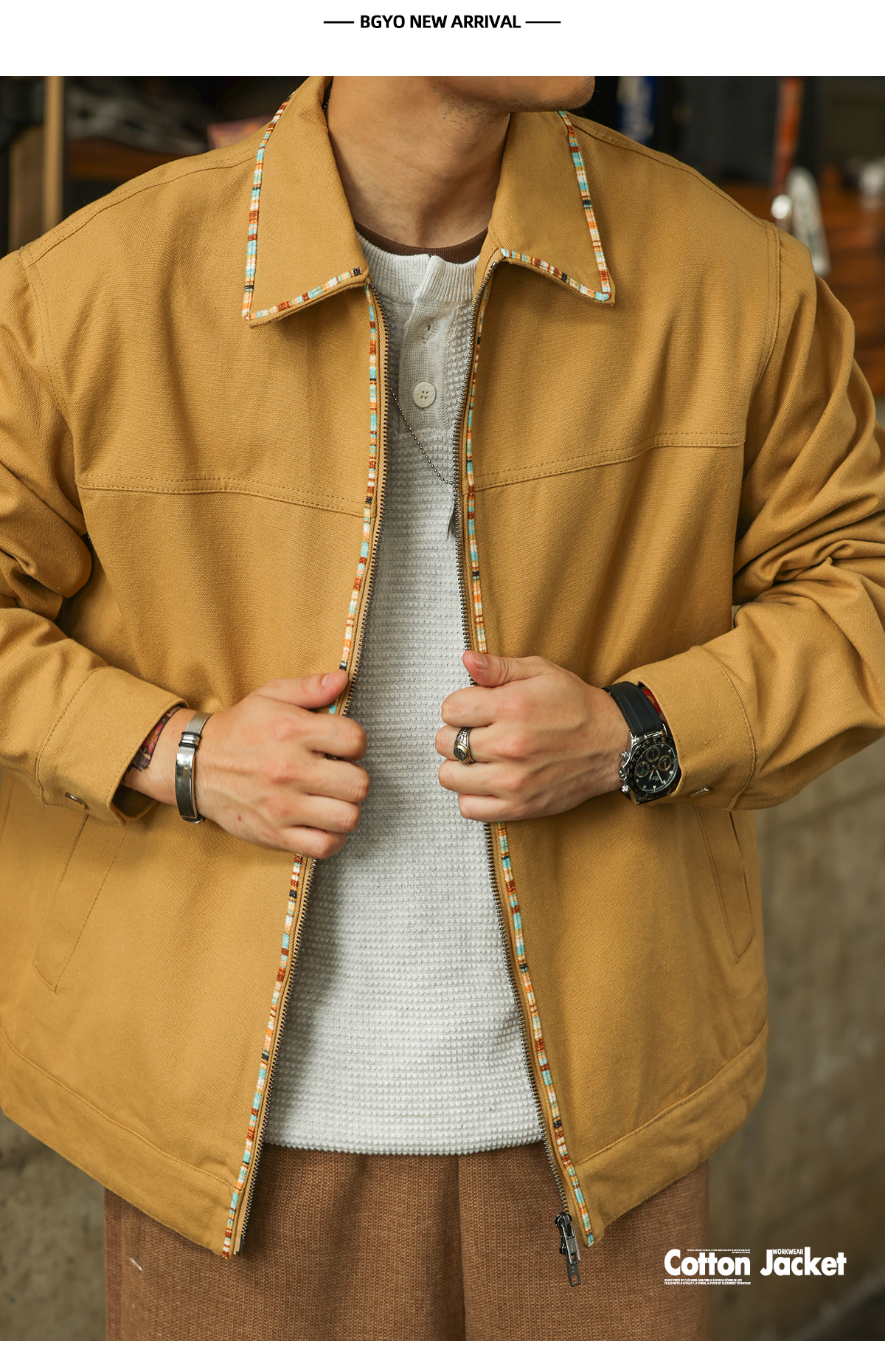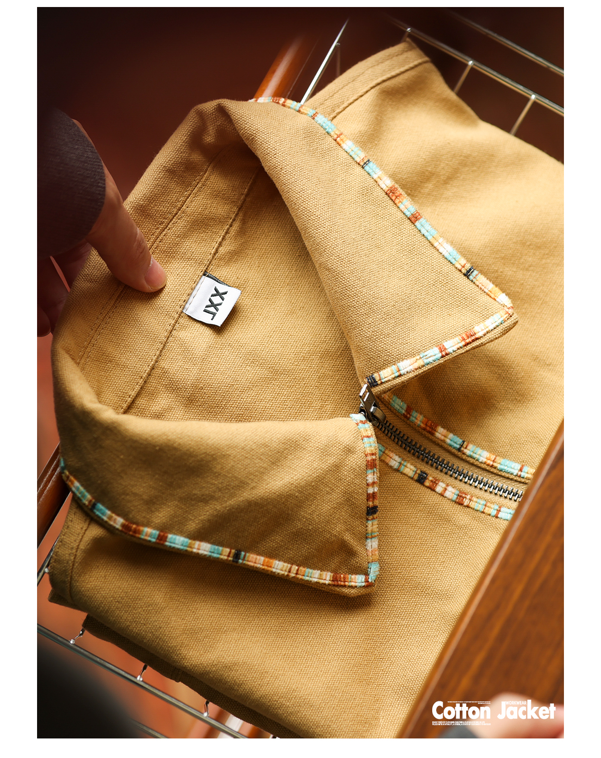 美式復古高級感帆布夾克男vintage織條設計翻領工裝外套