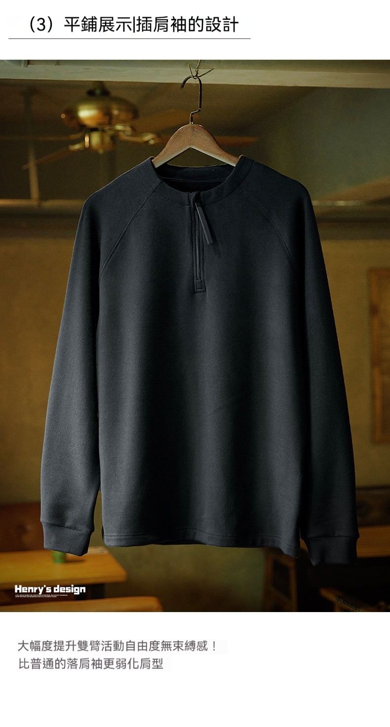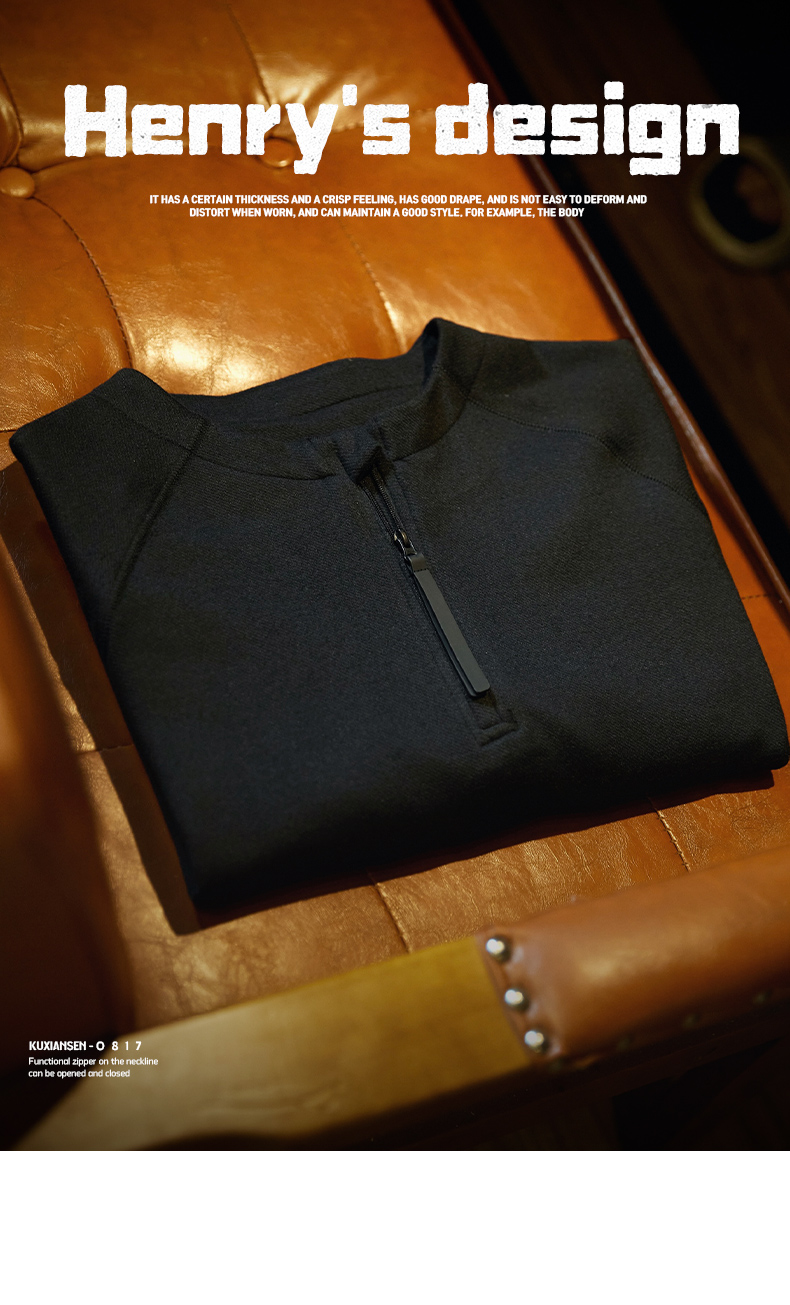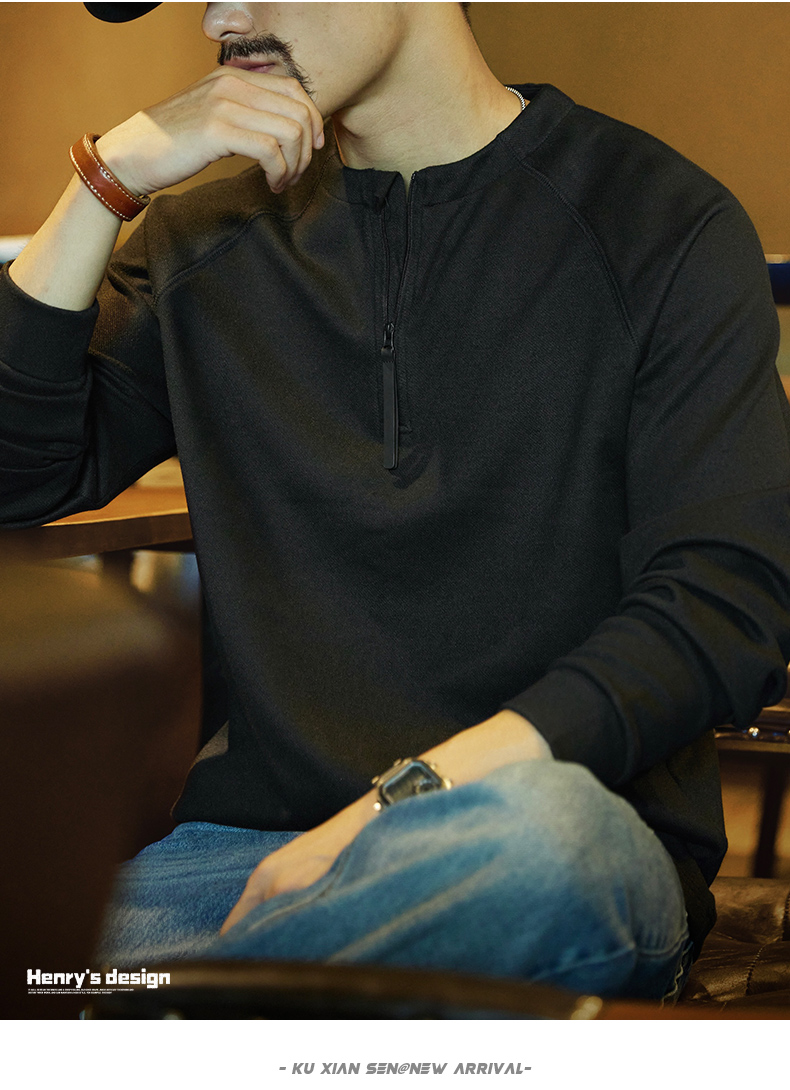 美式復古黑色半拉鍊長袖t恤男2025秋季新款插肩袖打底衫內搭上衣