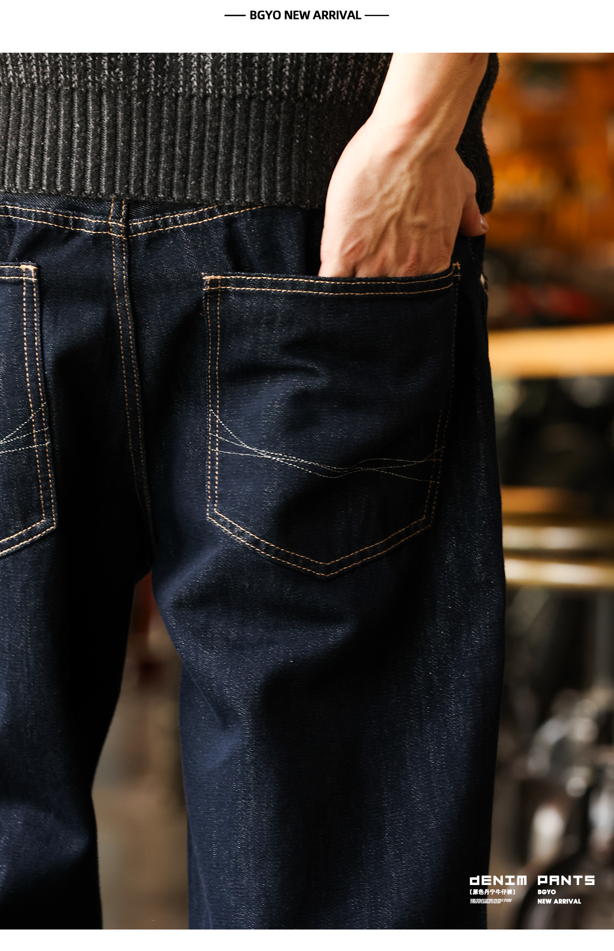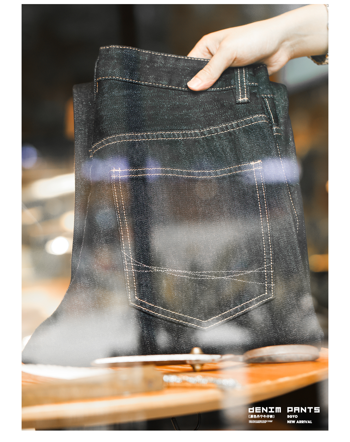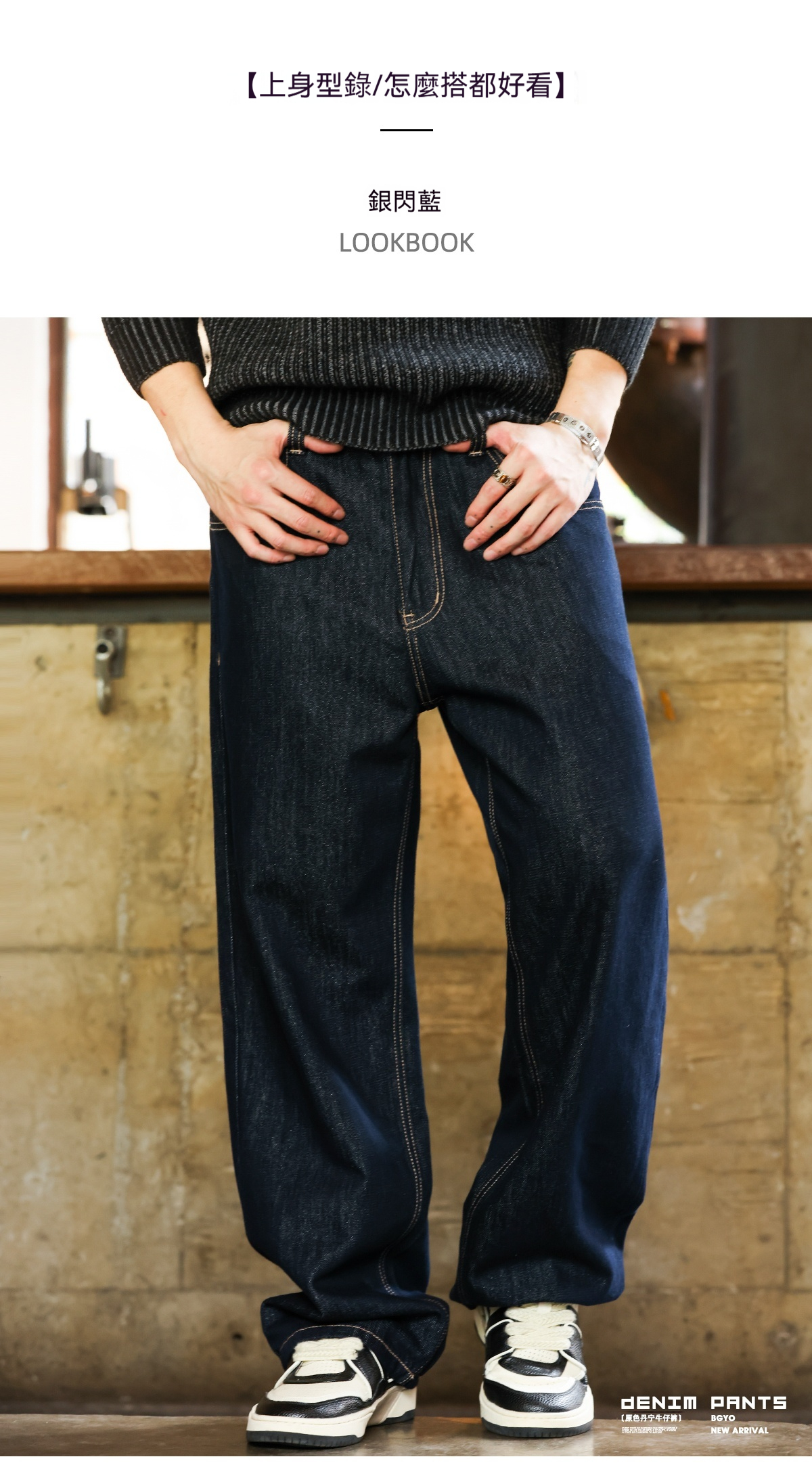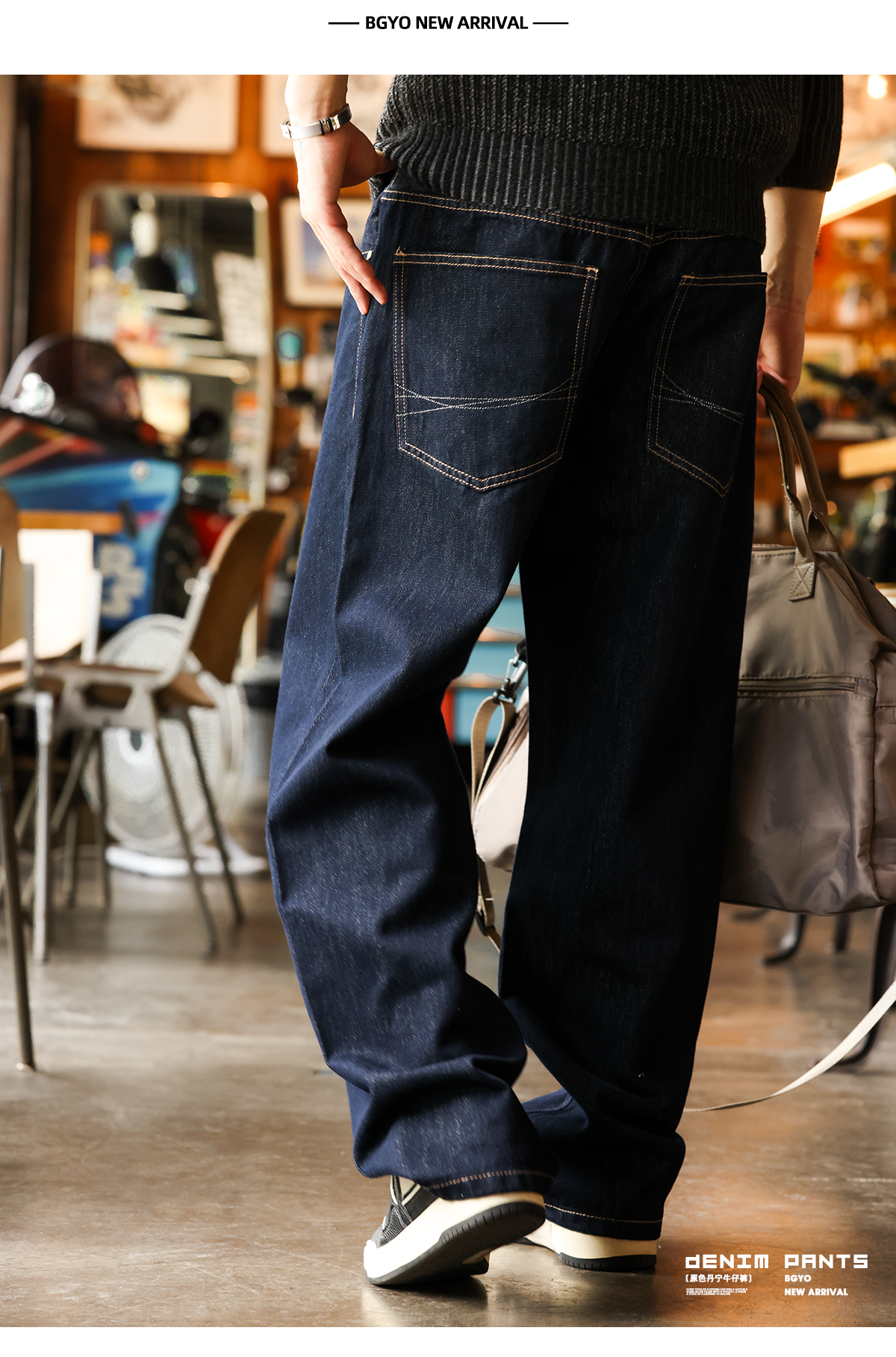 美式復古11盎司丹寧原色牛仔褲男寬鬆銀閃藍直筒長褲子