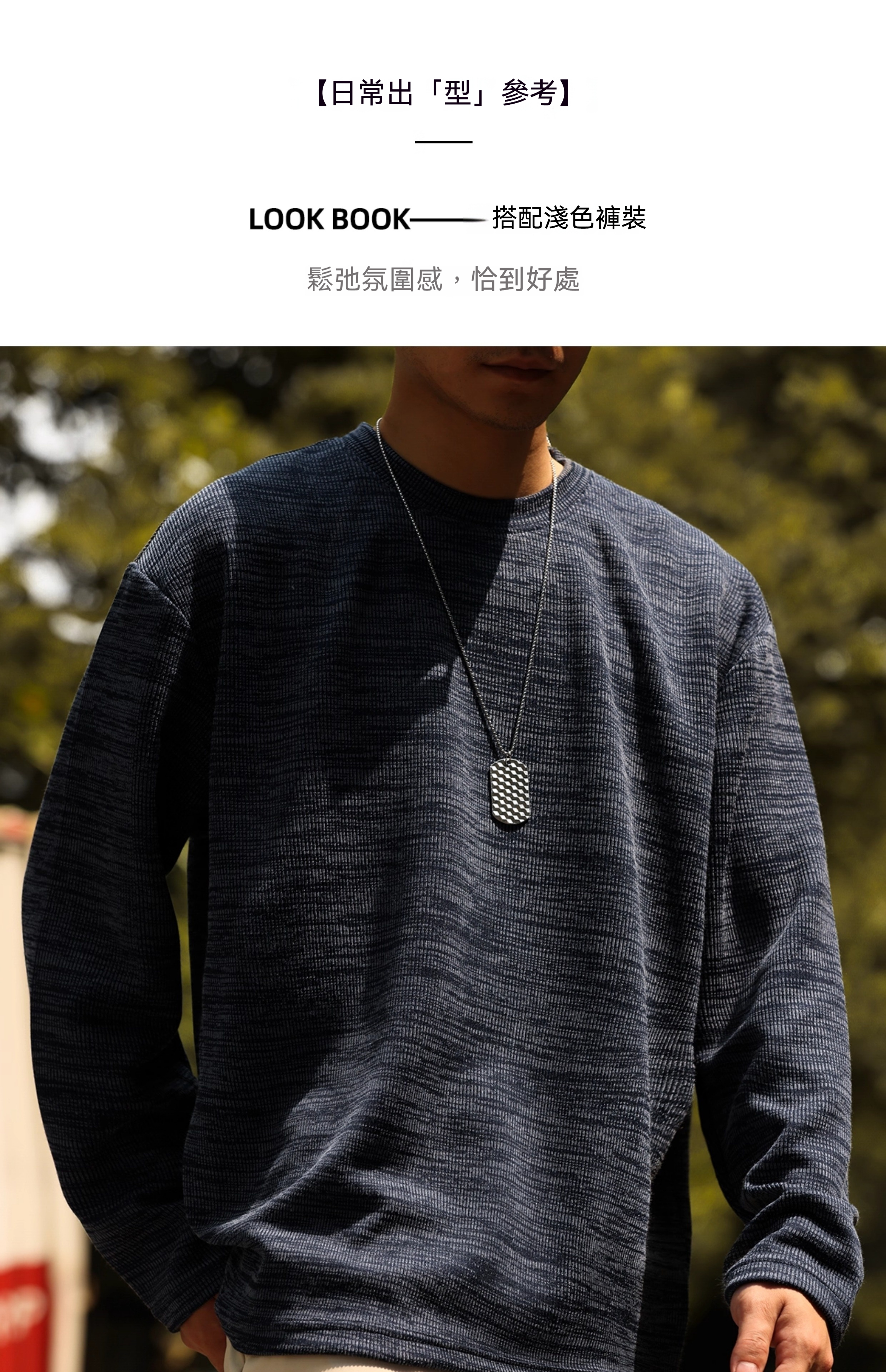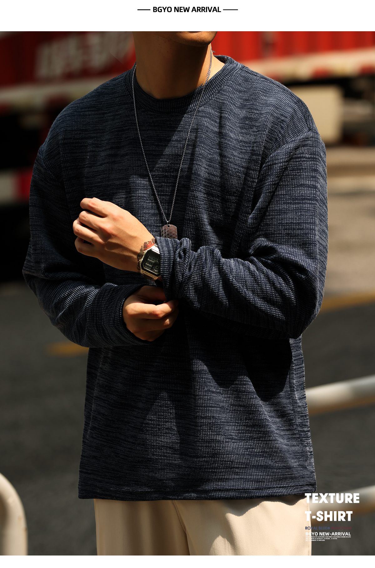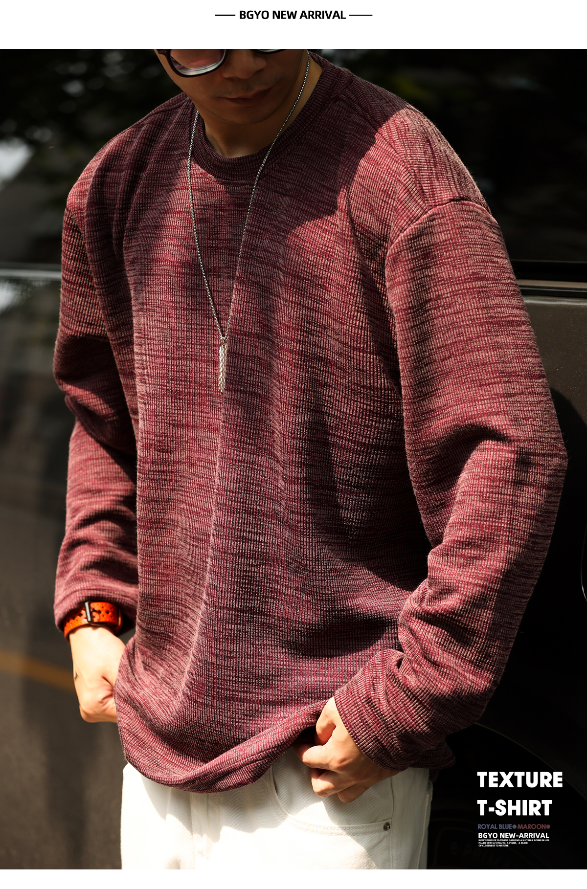 美式復古300g重磅長袖T恤男慵懶感色織紋理休閒打底衫