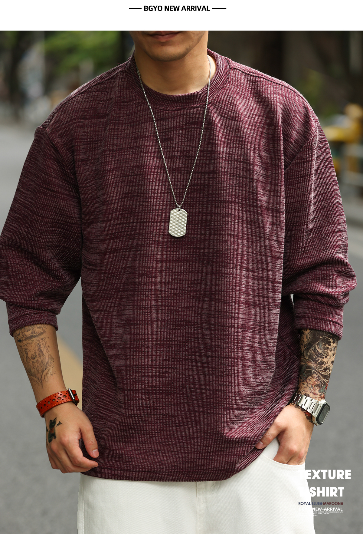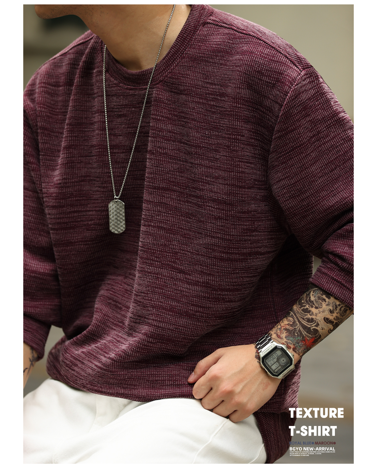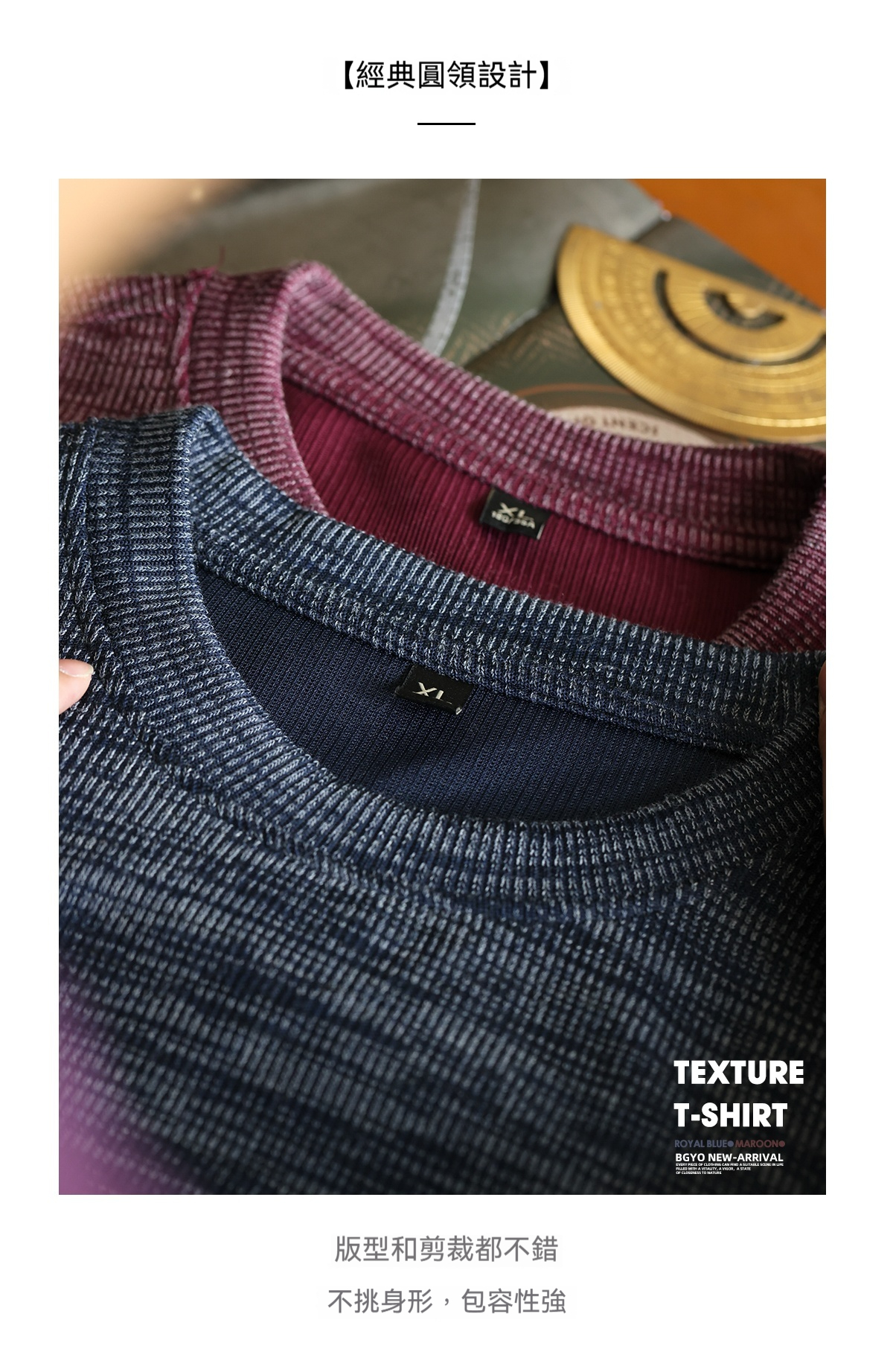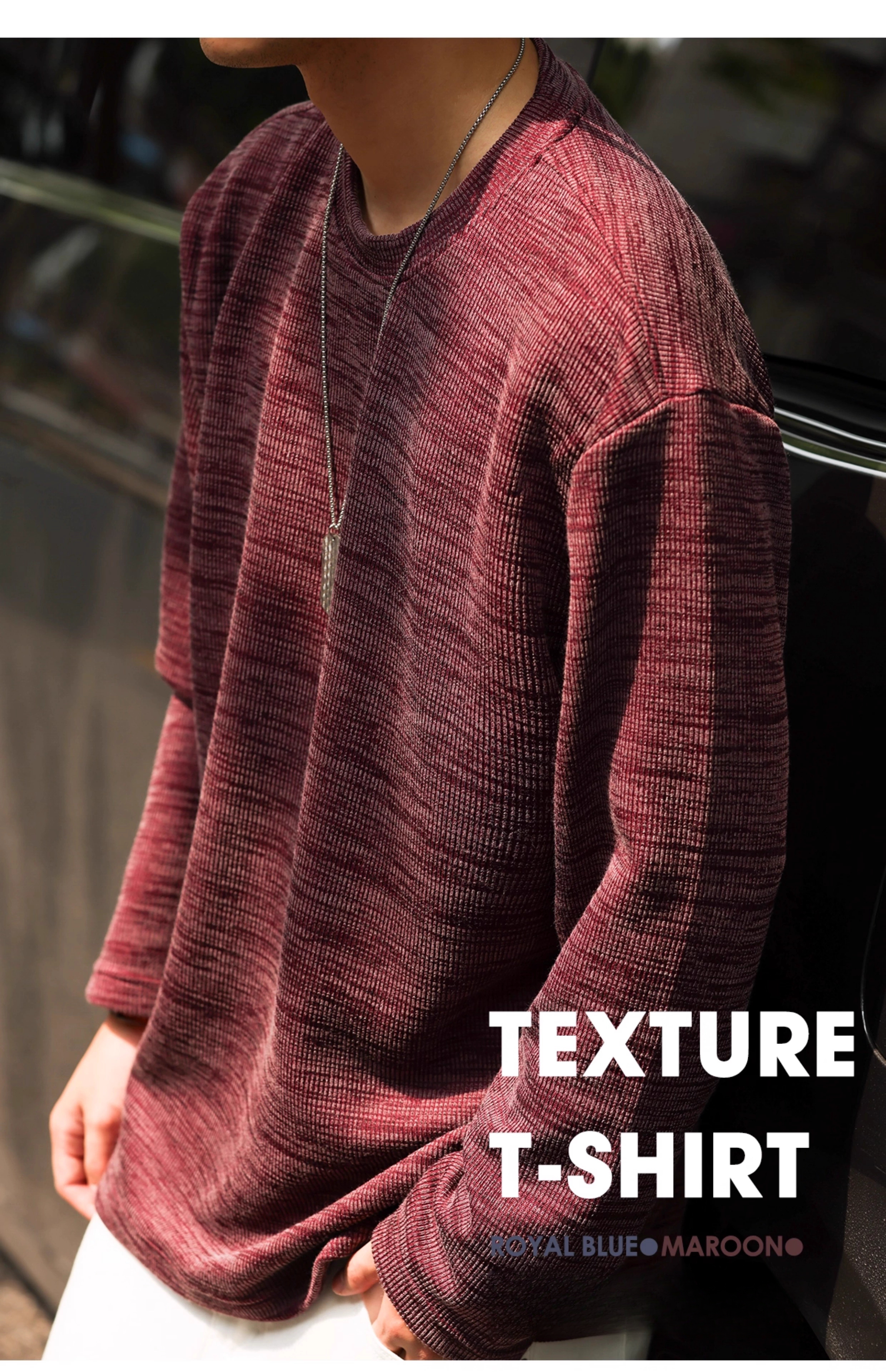 美式復古300g重磅長袖T恤男慵懶感色織紋理休閒打底衫