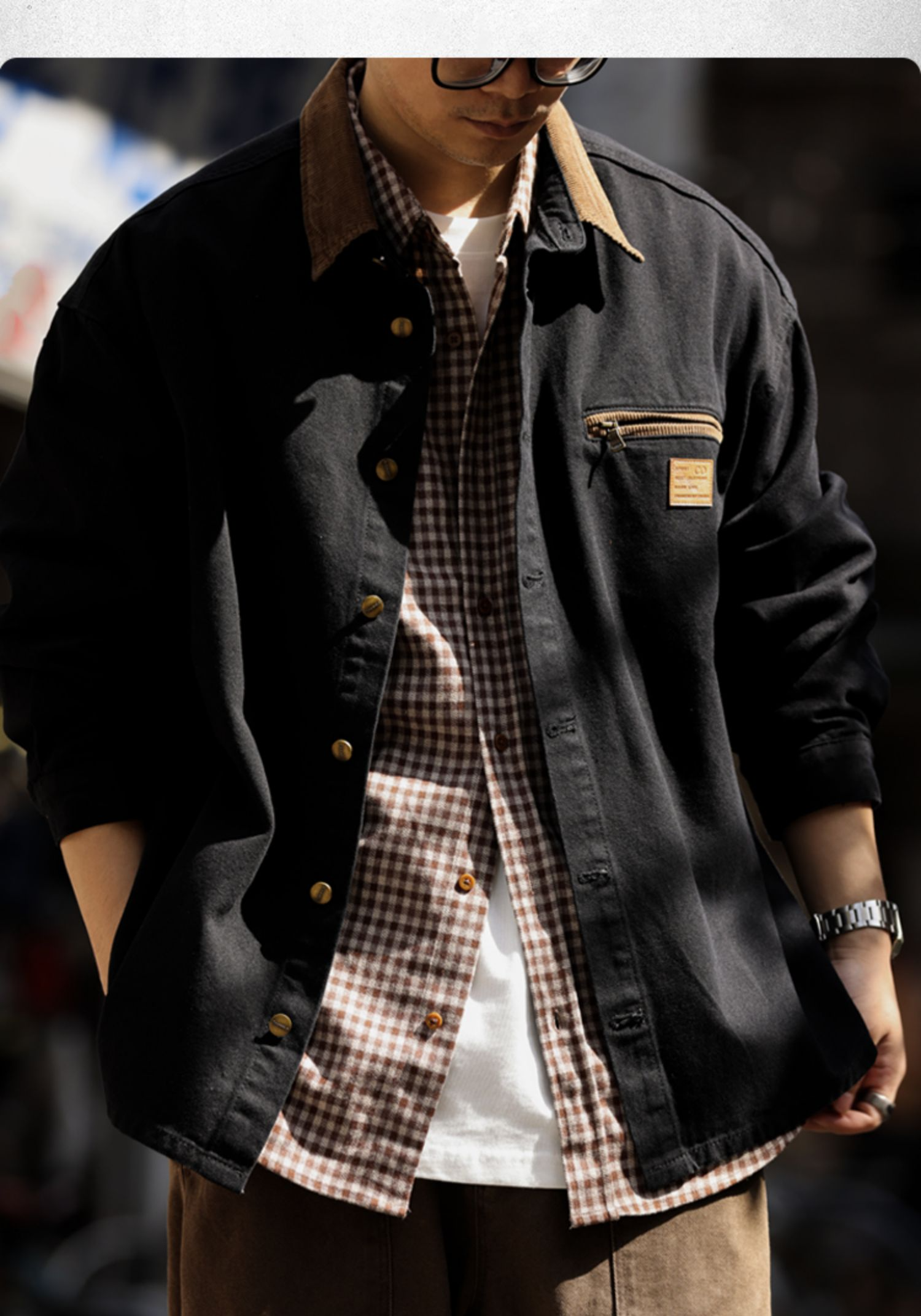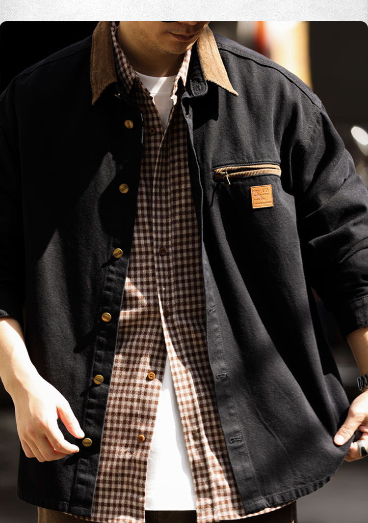 美式復古J97卡哈特襯衫外套男撞色拼接領口cleanfit工裝夾克