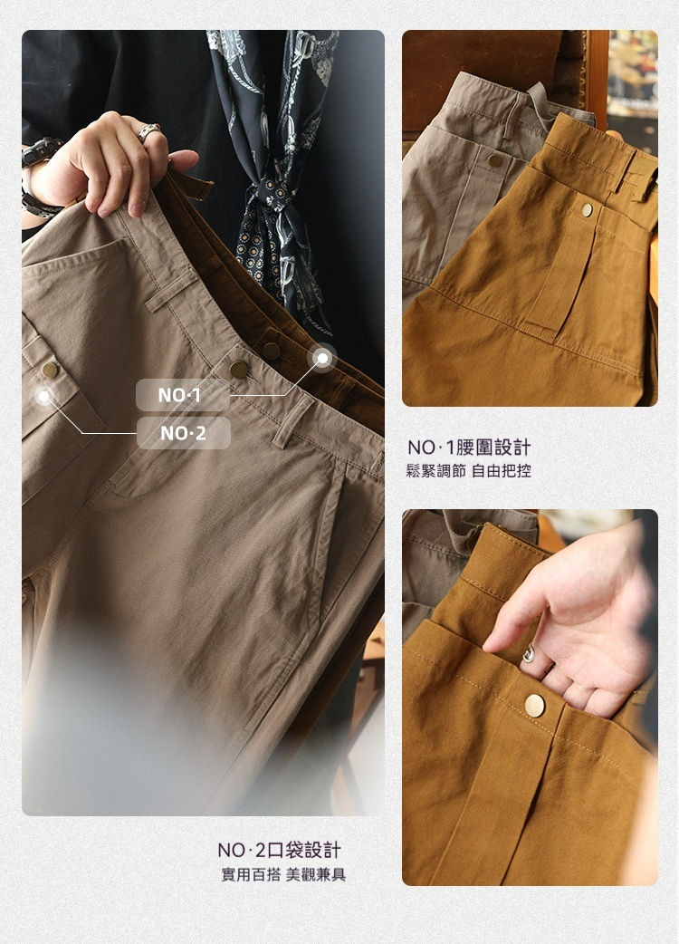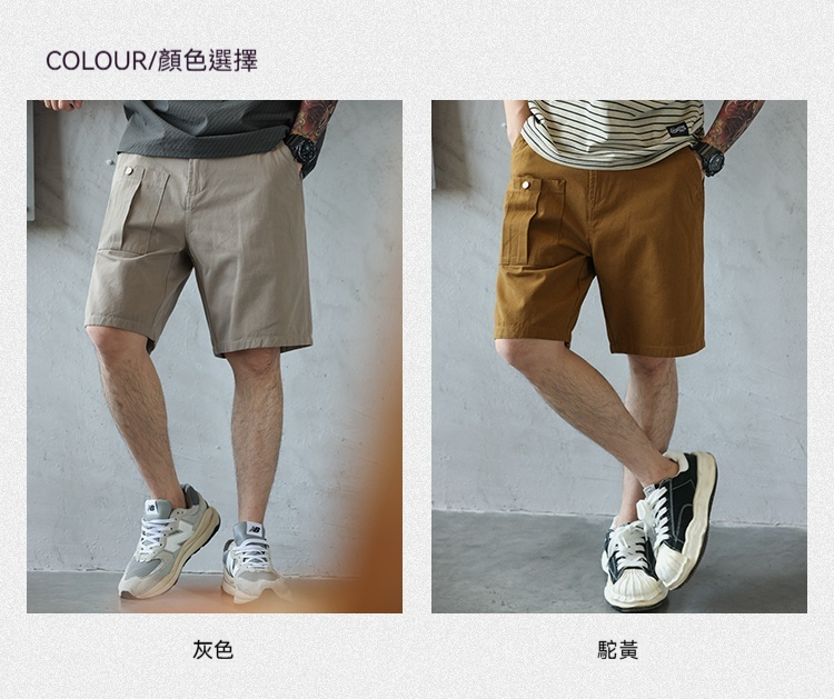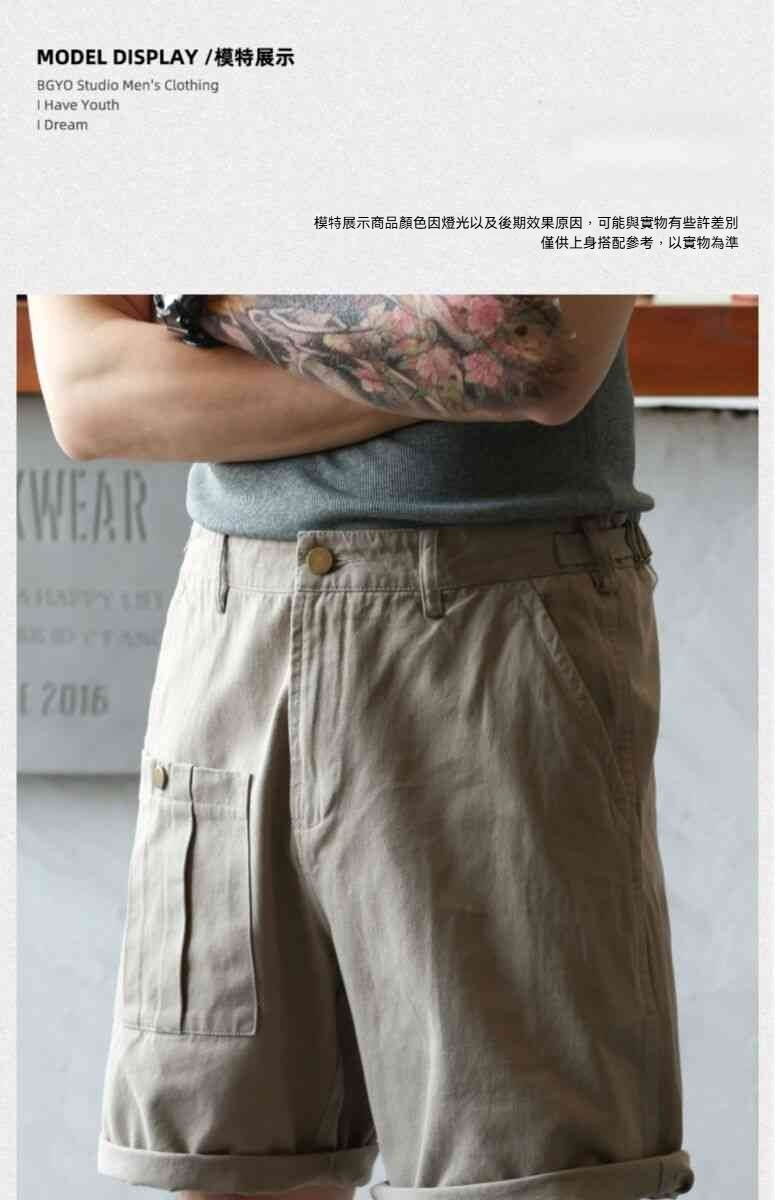 美式復古P37大口袋短褲男戶外休閒寬鬆直筒工裝五分褲夏