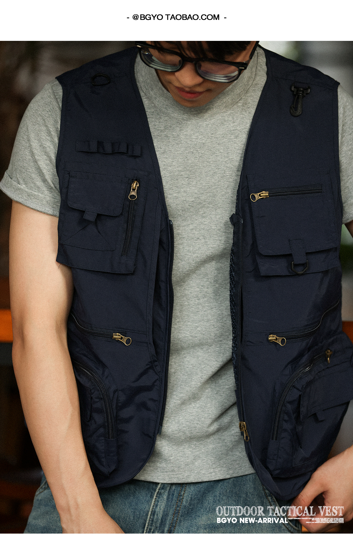 美式戶外戰術工裝馬甲男多口袋透氣攝影釣魚無袖坎肩夏