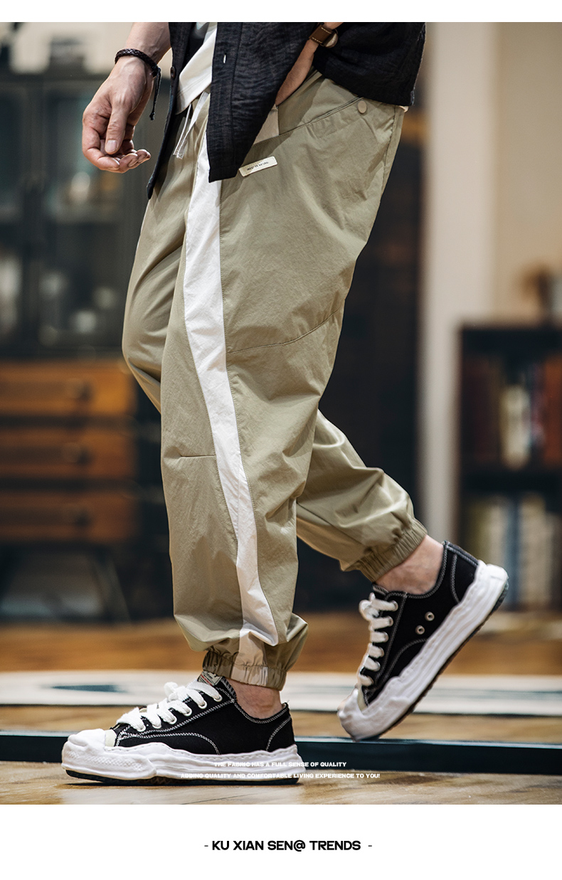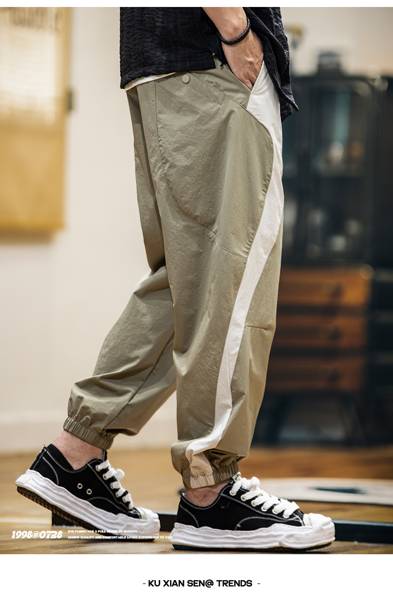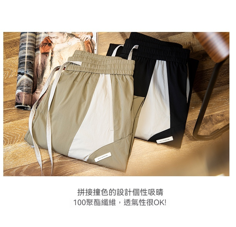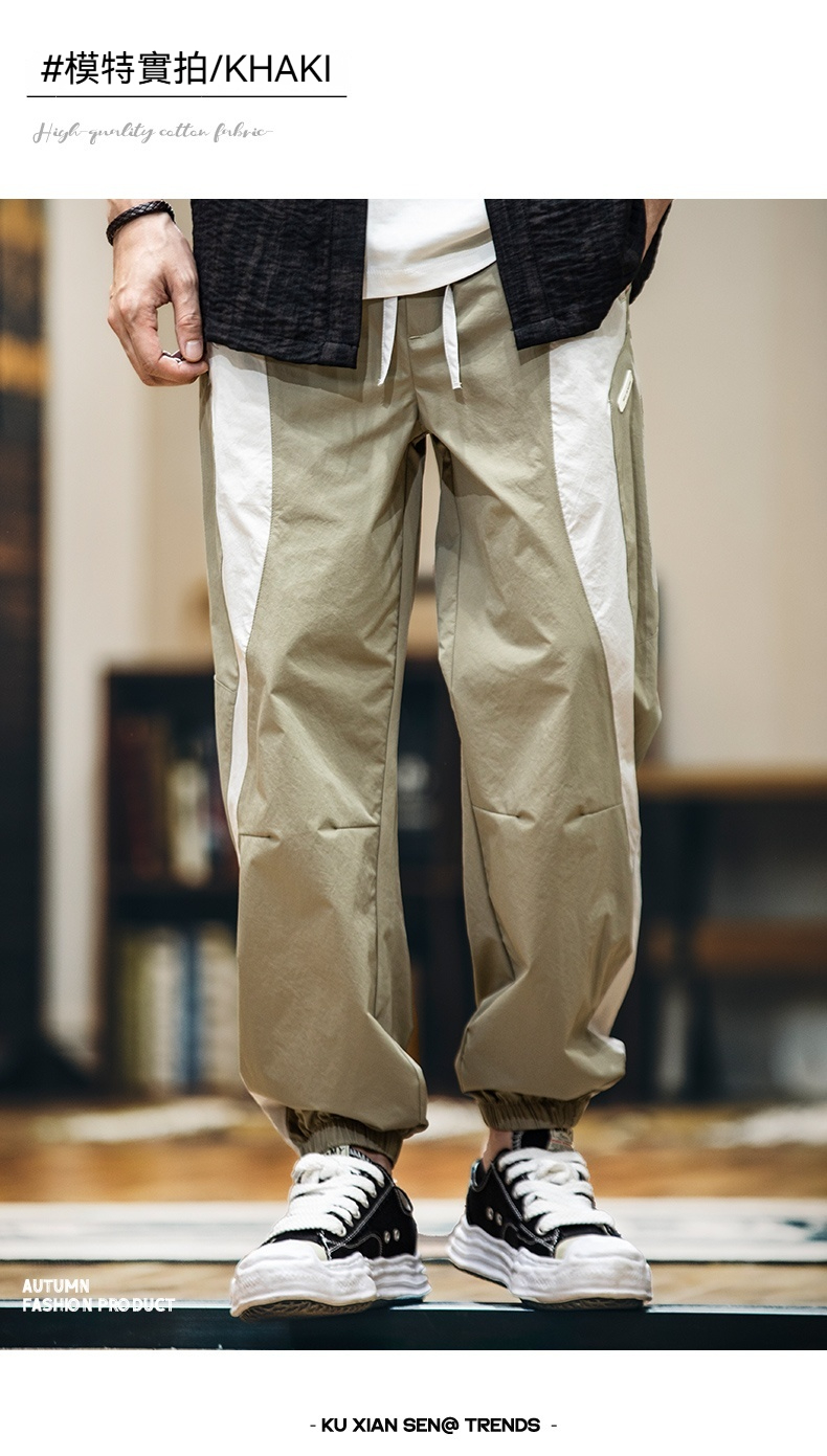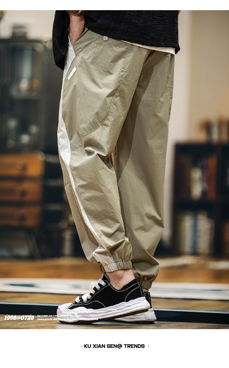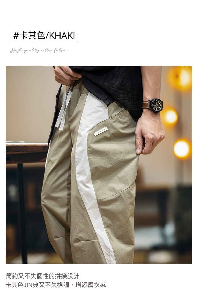 美式拼接工裝束脚休閒褲男春夏2025新款撞色戶外速幹運動褲子薄款