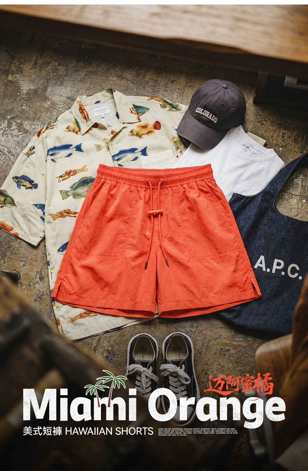 美式橘紅色海邊度假沙灘短褲塔絲隆外穿休閒五分褲男夏季